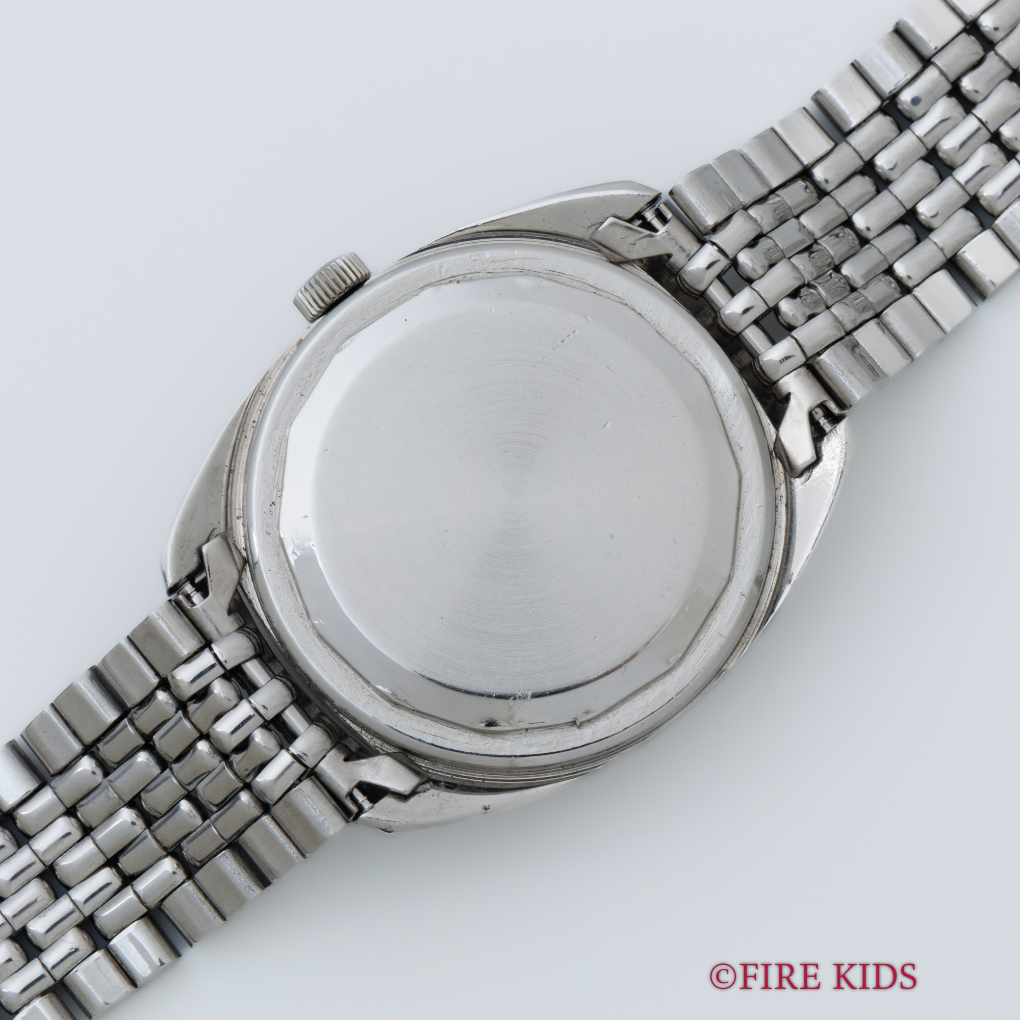 - ヴィンテージ時計の特性上、風防・パッキン・リューズ・バネ棒などの消耗部品は後年メンテナンス過程で交換されている場合がございます。オリジナル性を重視しておりますが、必要に応じて適切な部品にて調整されていますので、よりコレクション性重視のお求めのお客様は事前にご確認ください。