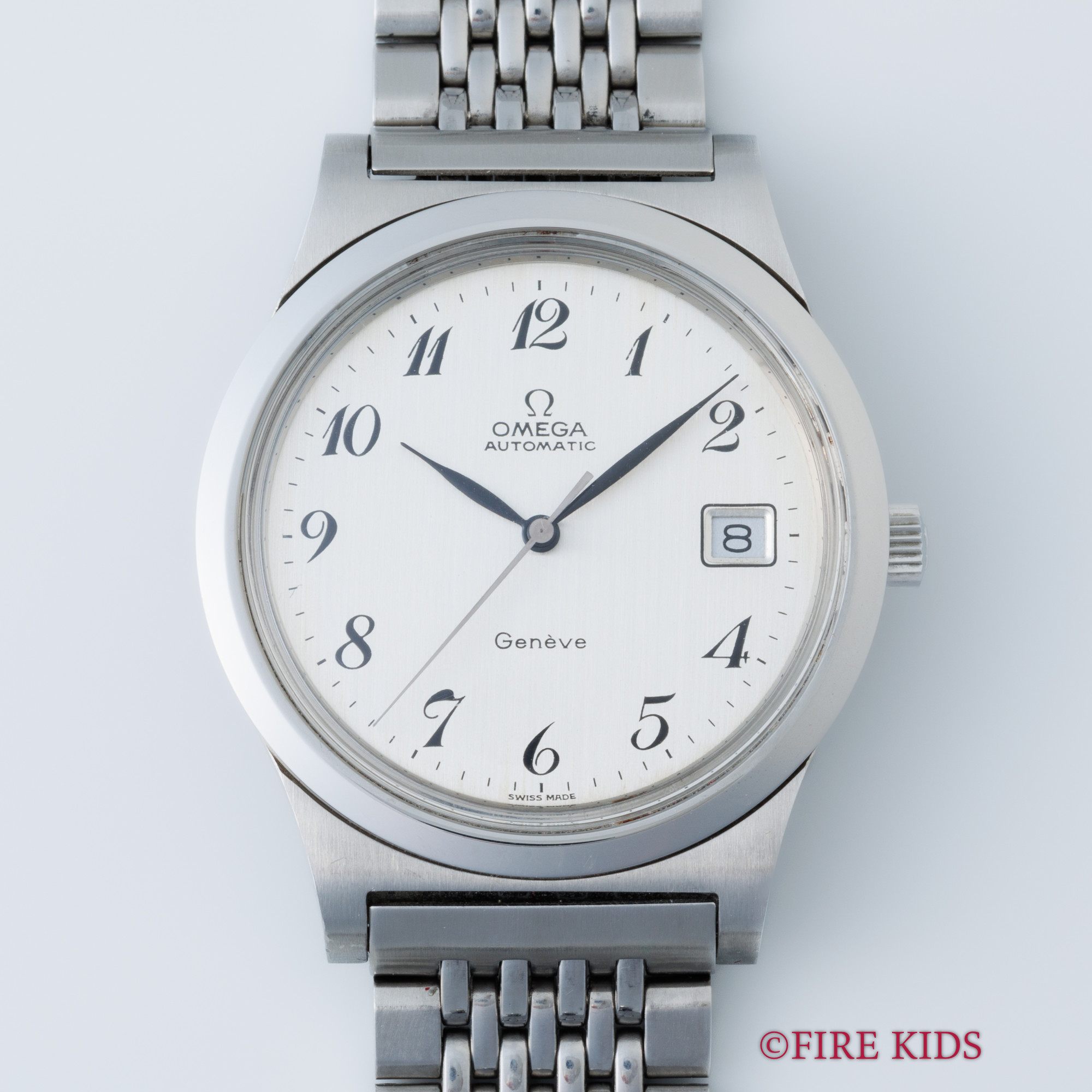 オメガ ジュネーブ アラビアダイヤル 純正ブレス付き 1973年製 リーフハンド ハイビート8振動自動巻き Cal.1012 箱付き