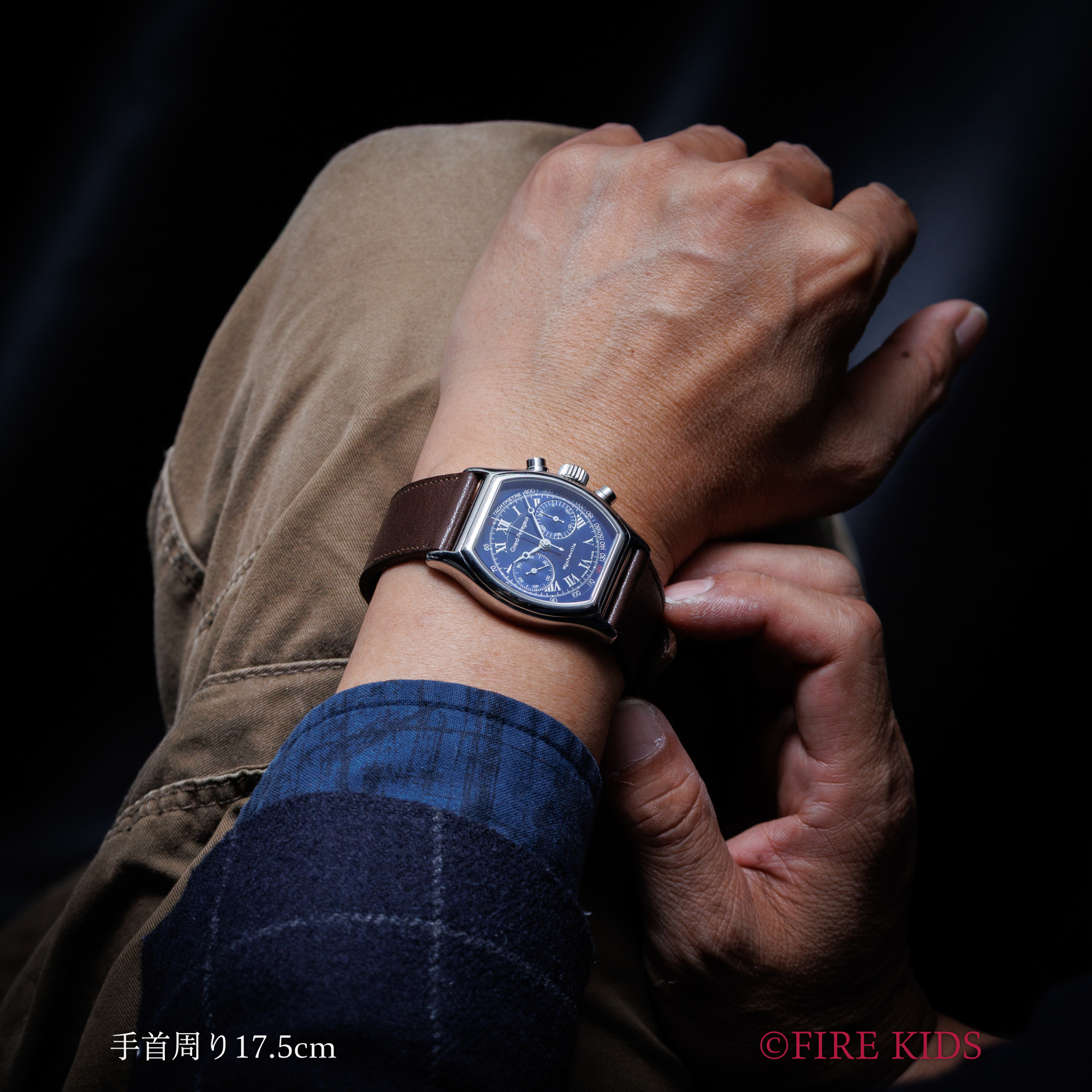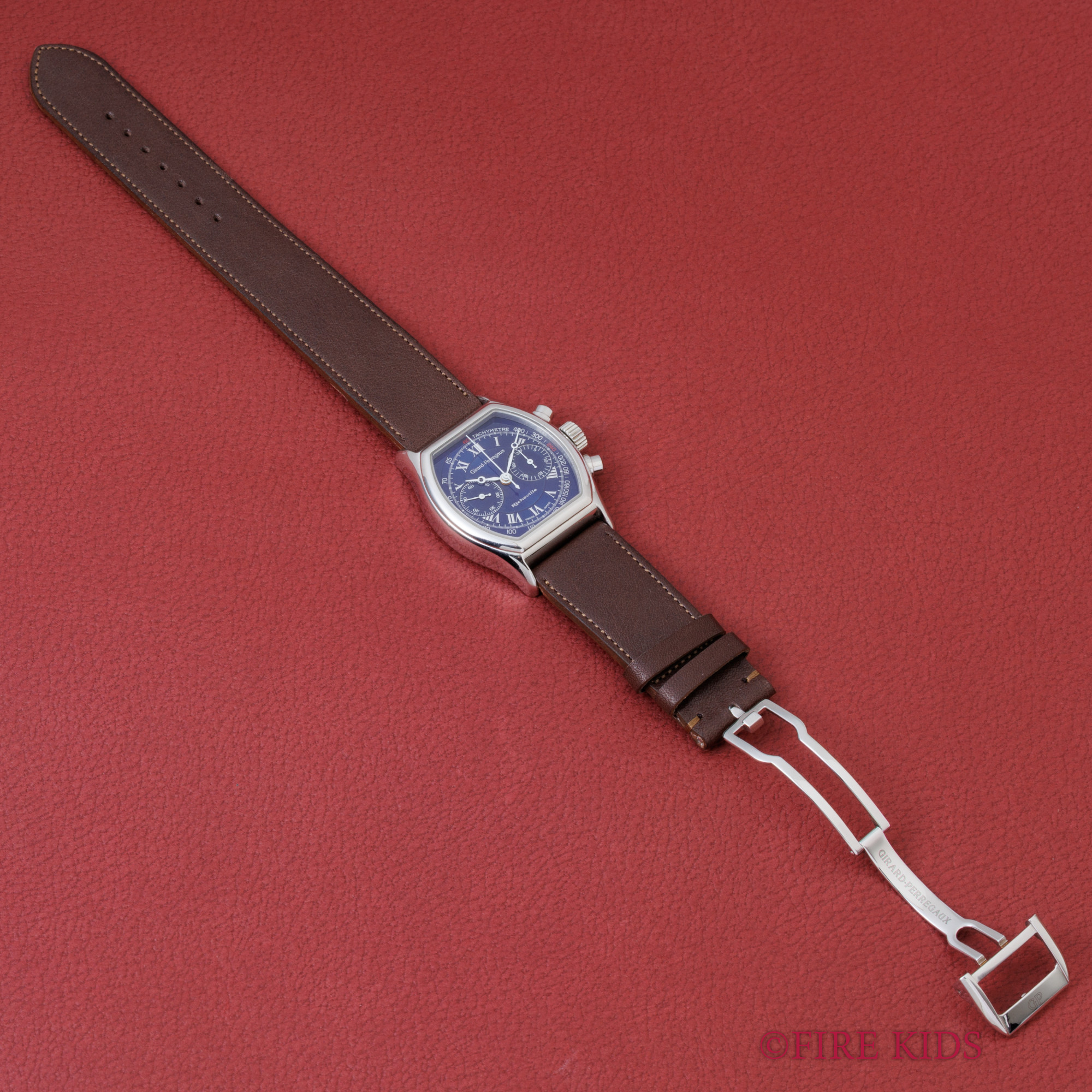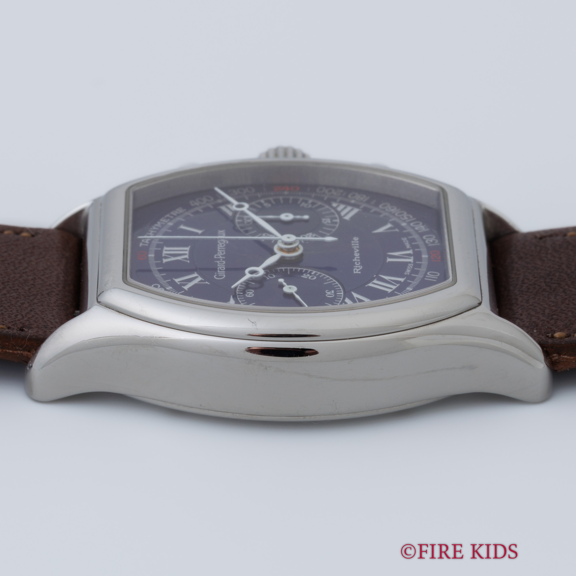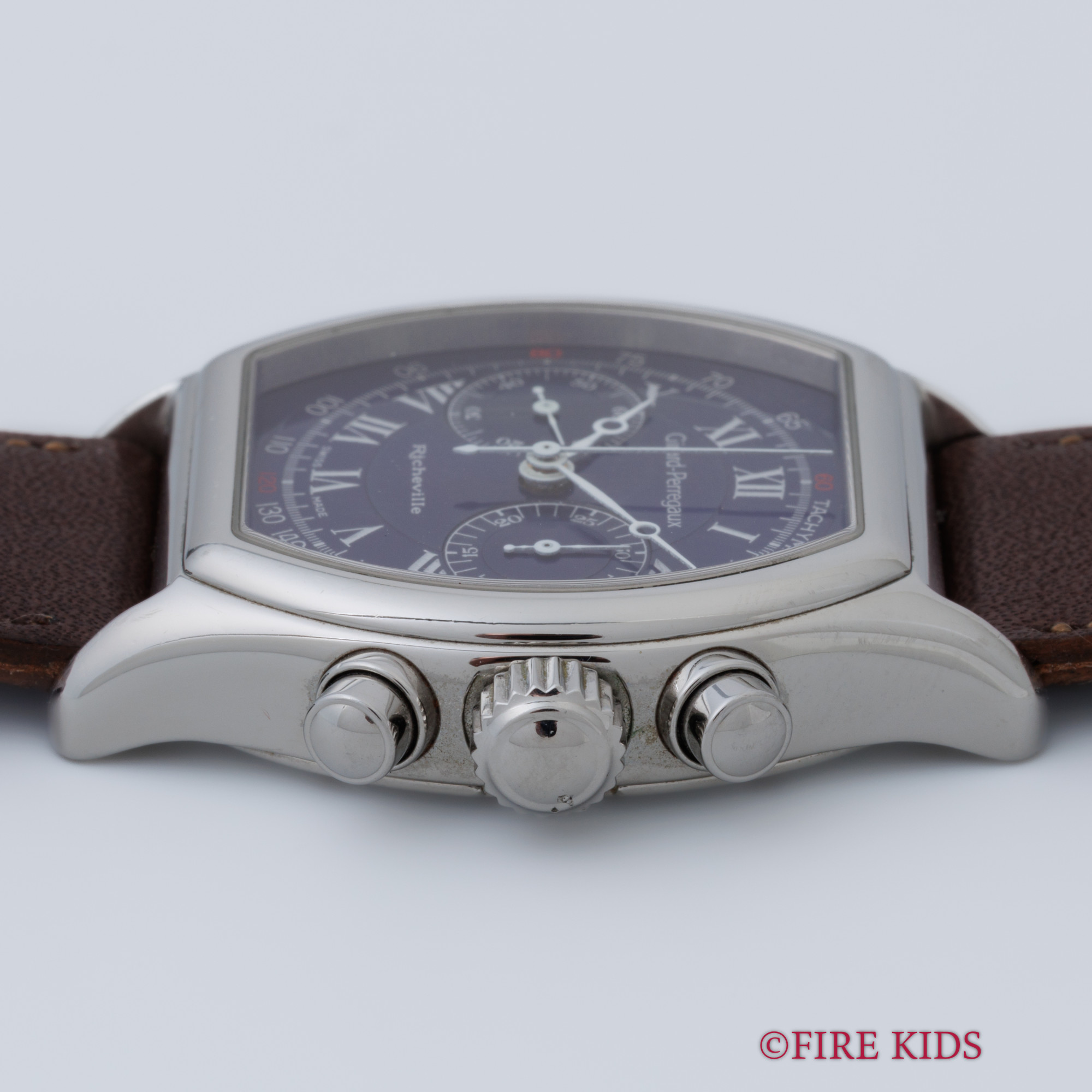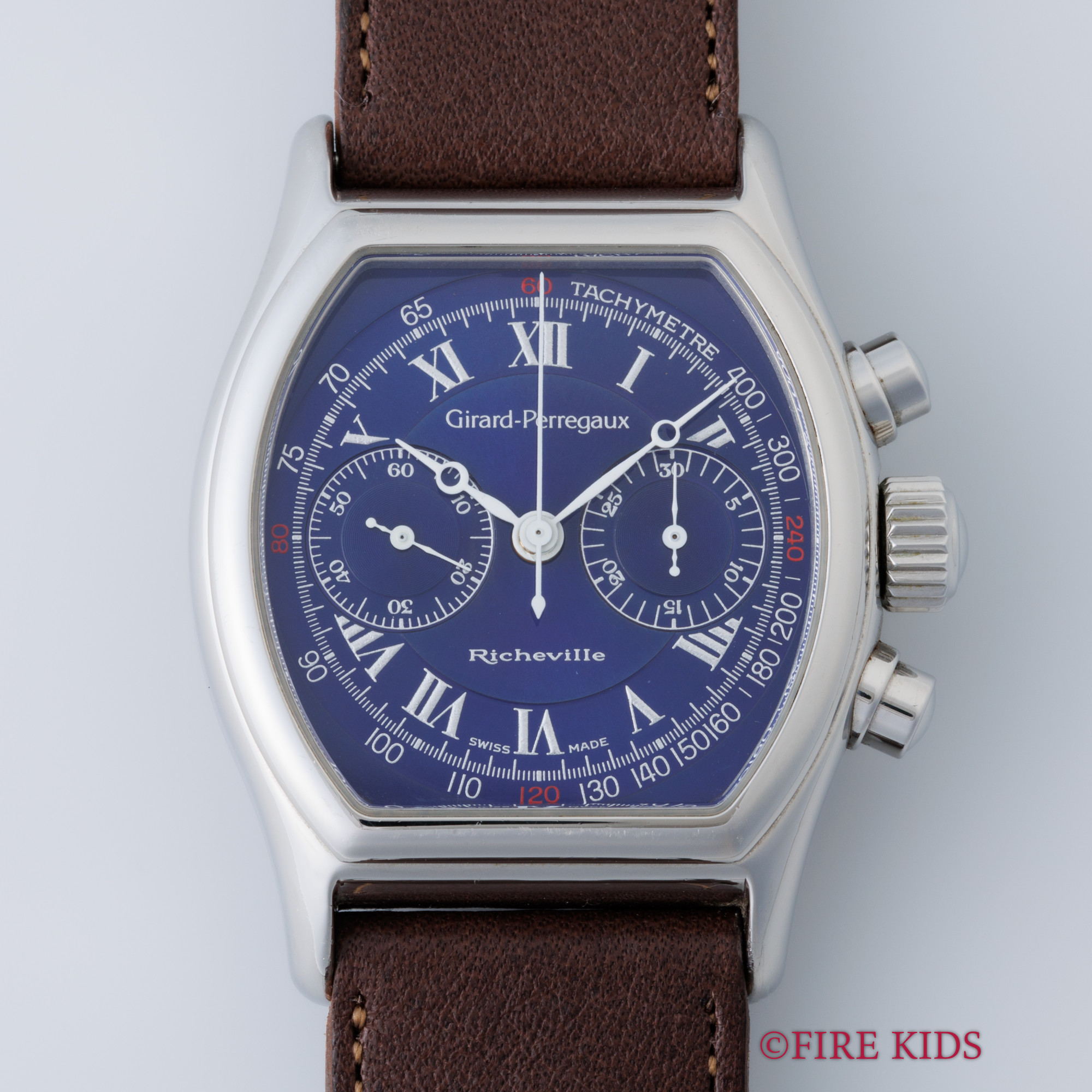 ジラールペルゴ リシュビル 手巻きクロノグラフ ブルーローマンダイヤル 1990年代製 純正Dバックル