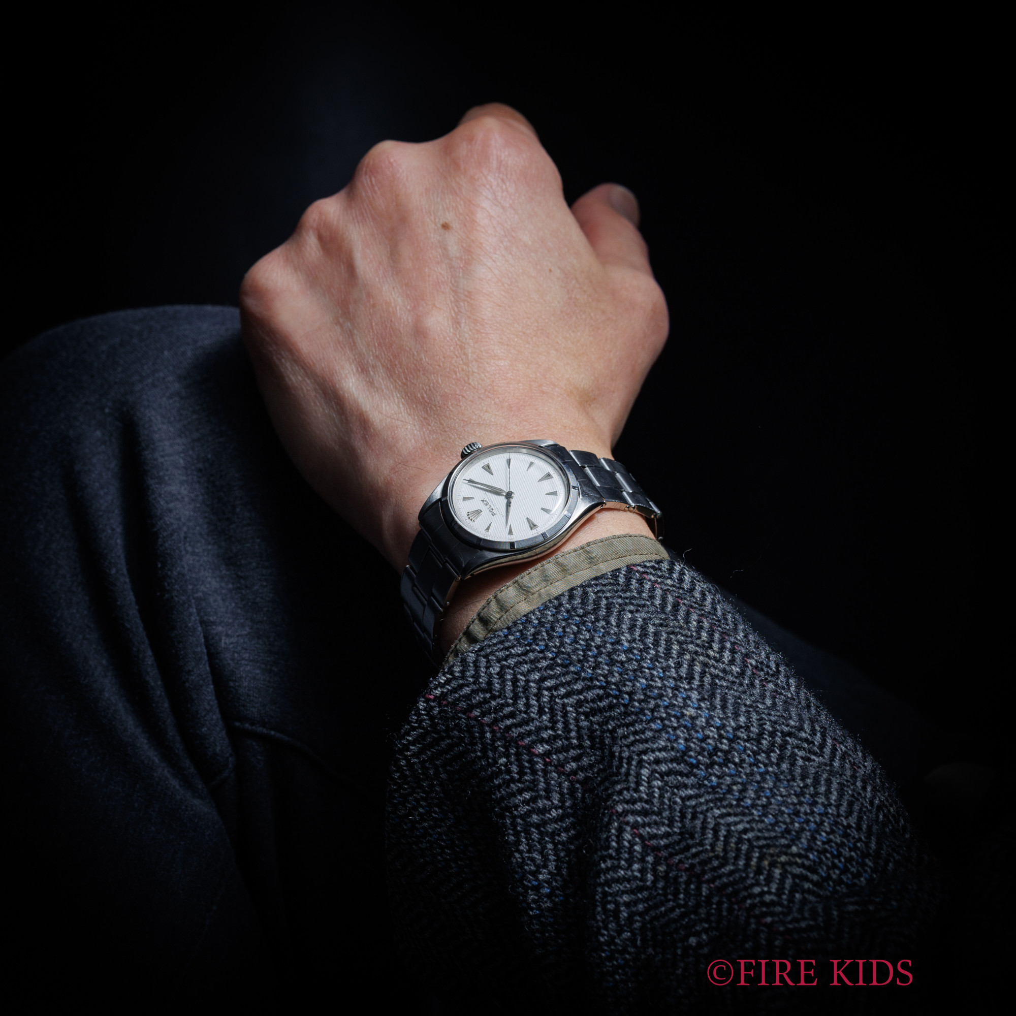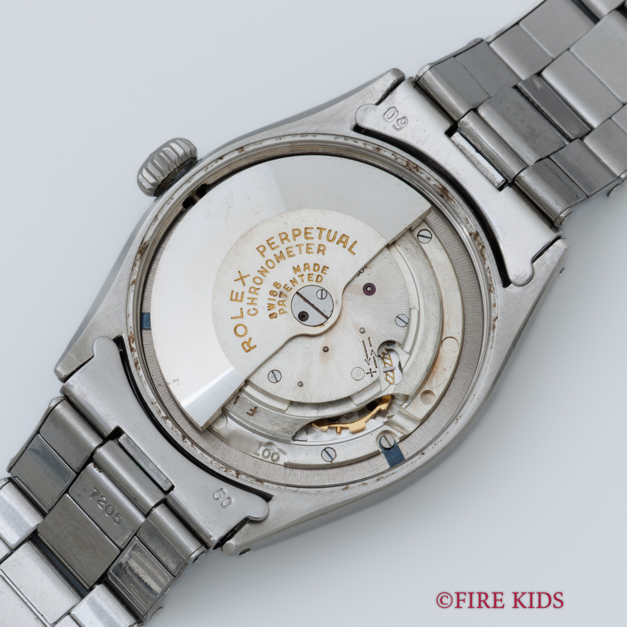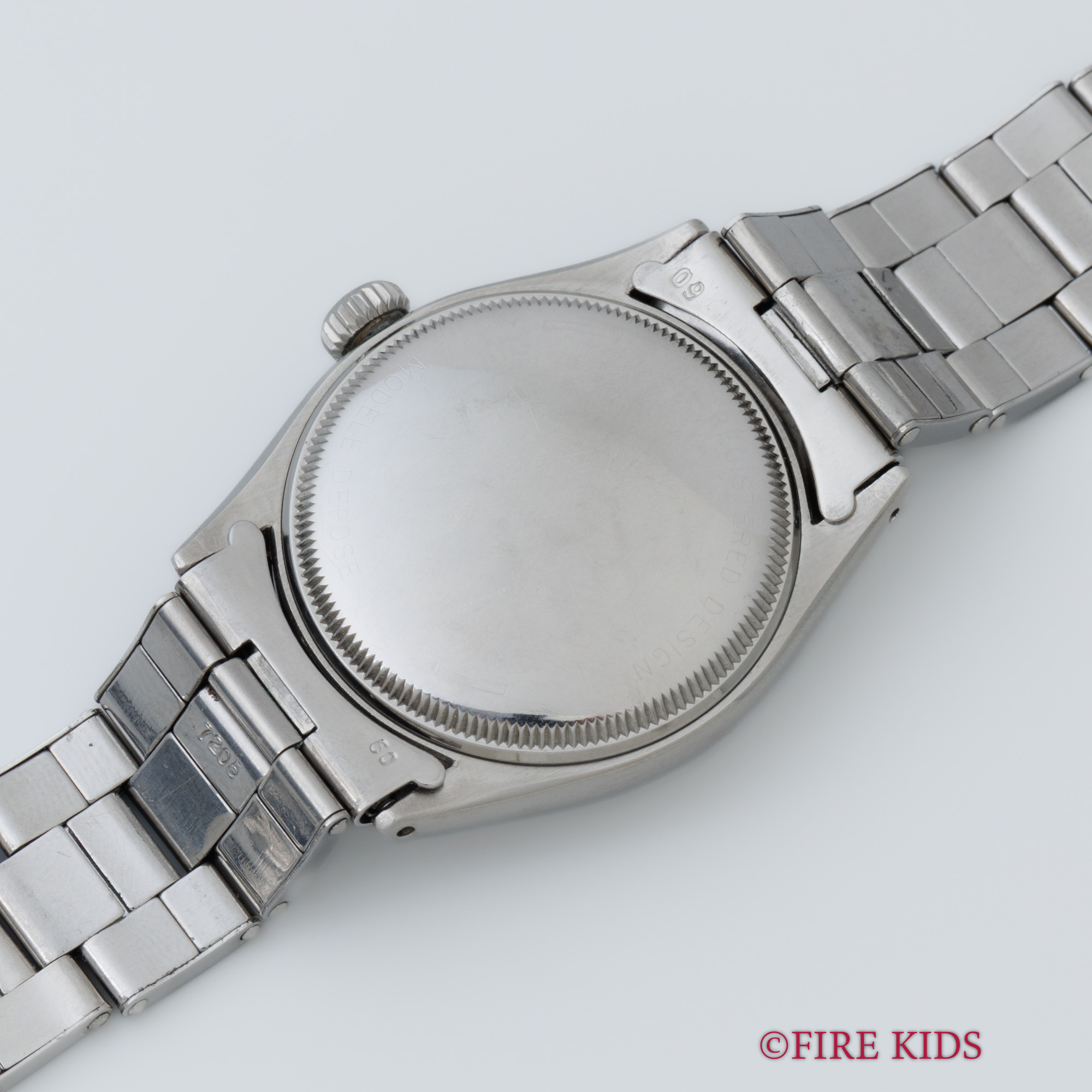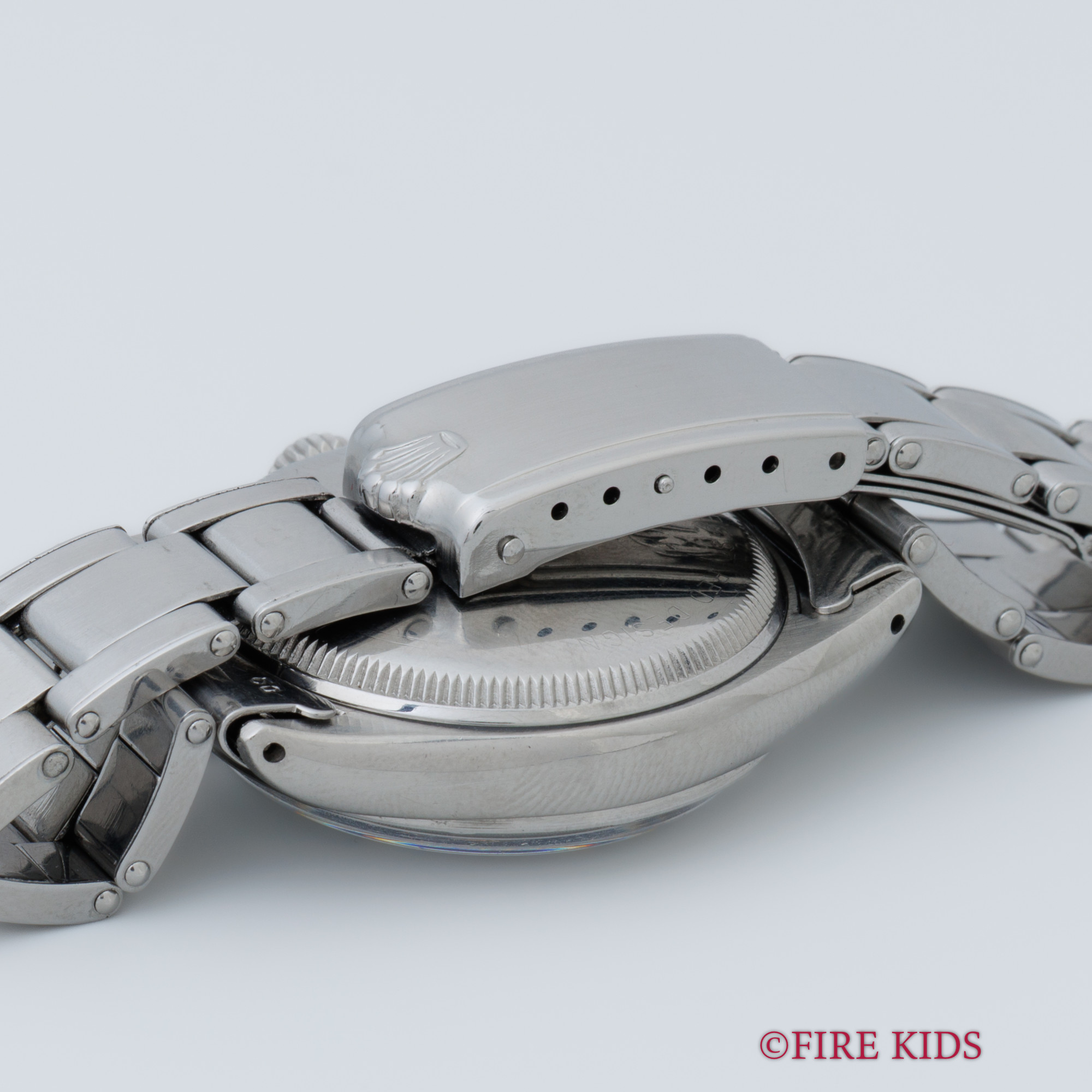 ロレックス セミバブルバック ホワイトギョーシェダイヤル 1954年製 +リューズ 純正リベットブレス エンジンターンドベゼル ノンデイト 自動巻き