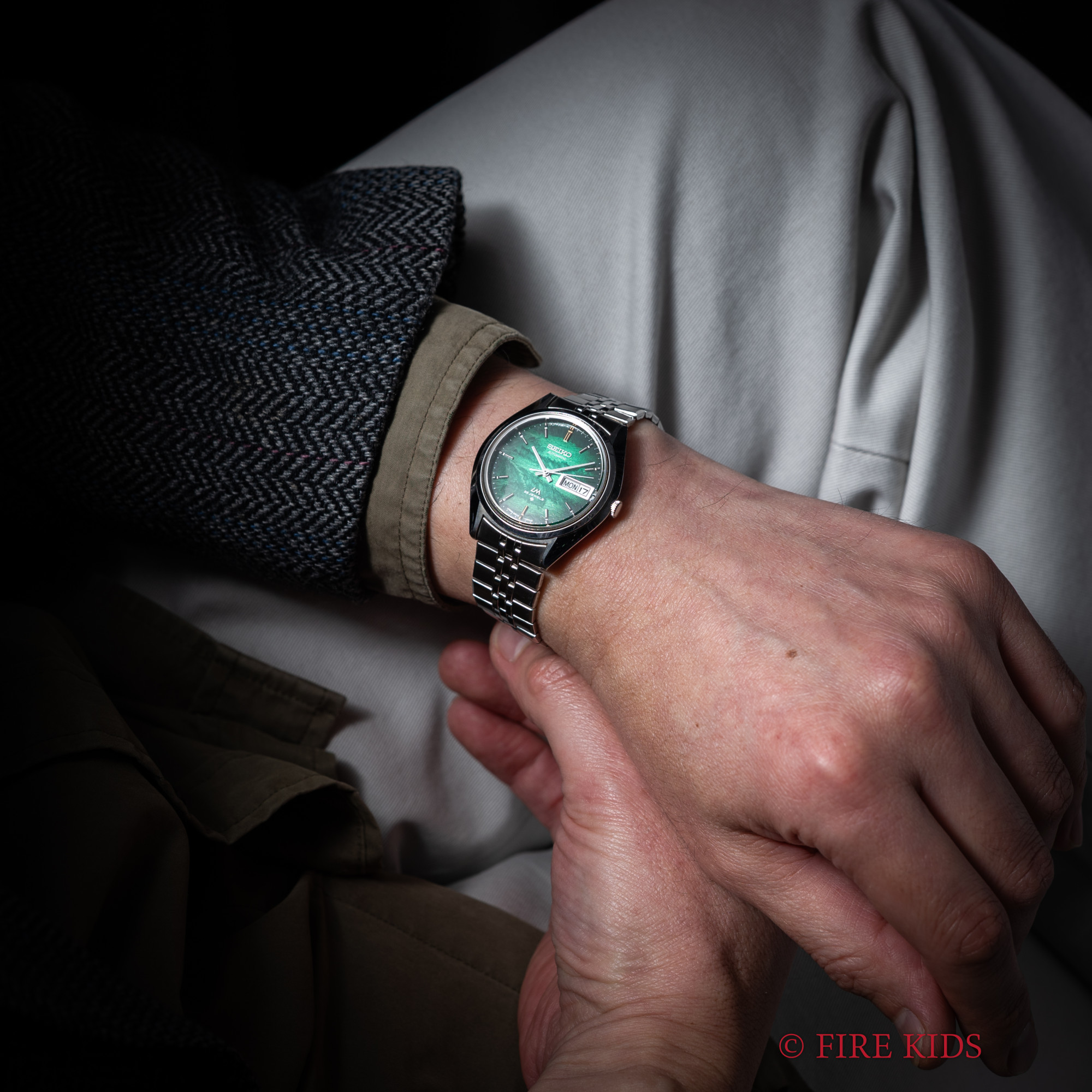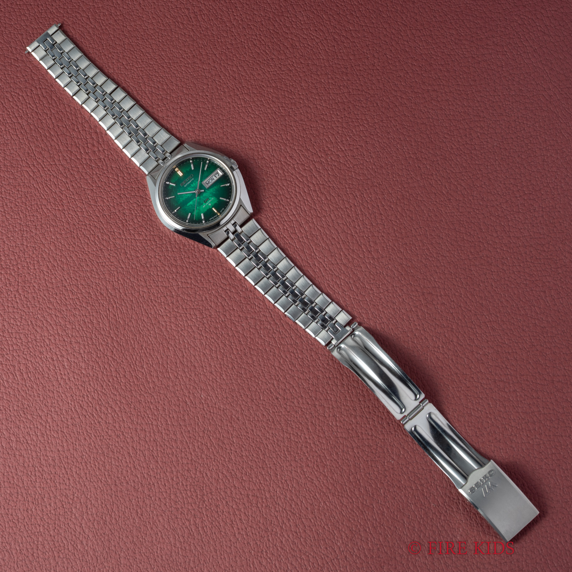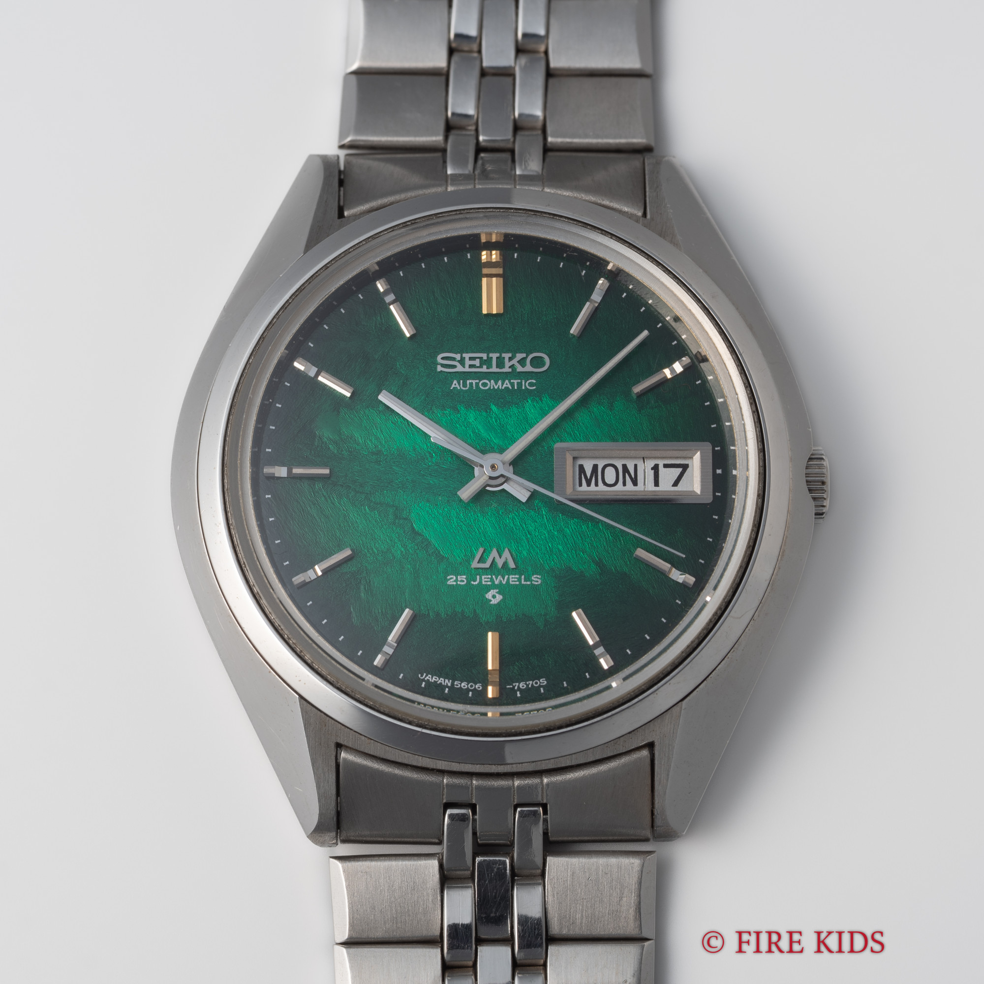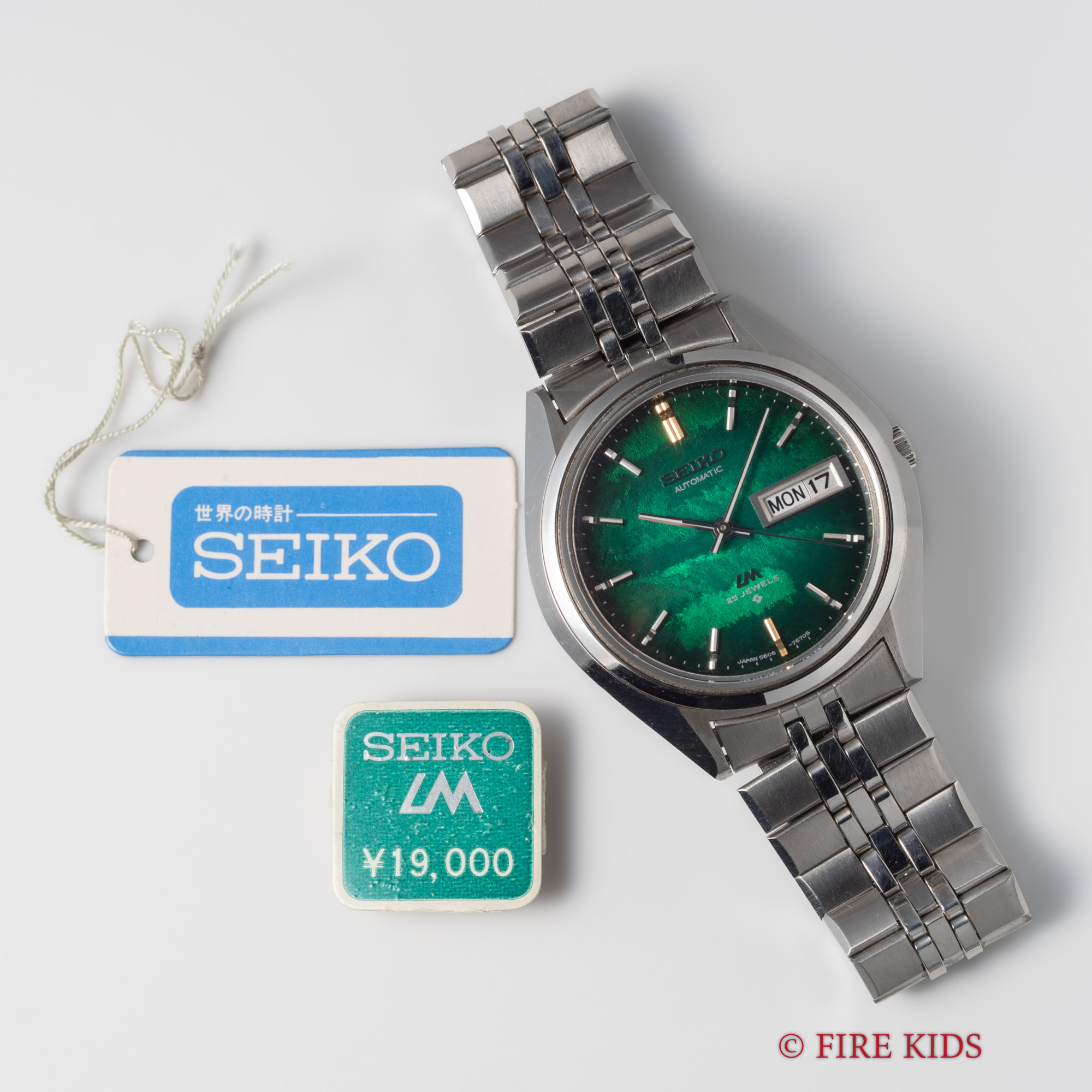 セイコー LM 純正ブレス付き Ref.5606-7192 1973年製 未使用品 8振動自動巻きCal.5606A 漢字デイ デイデイト グリーン タグ付き