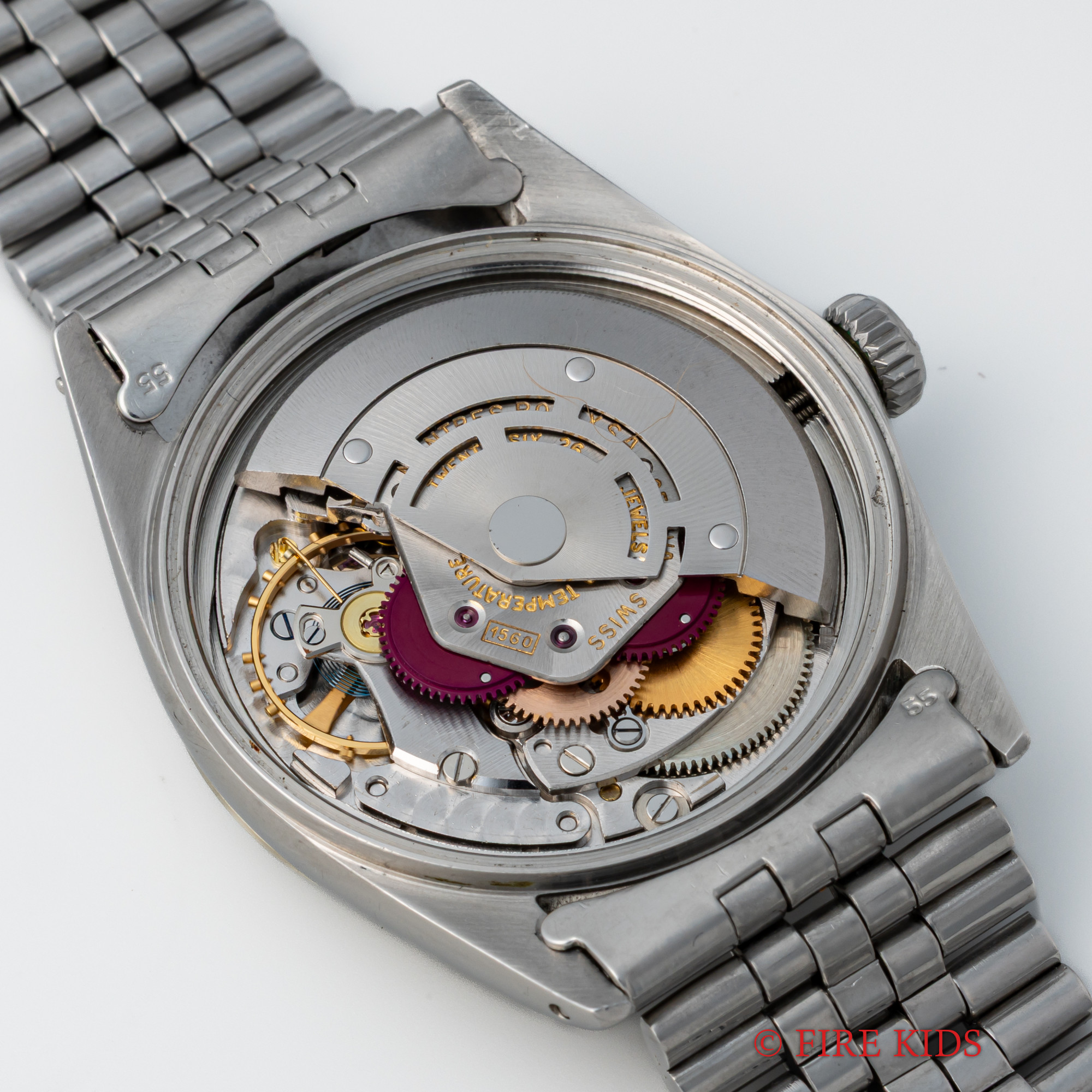 - ヴィンテージ時計の特性上、風防・パッキン・リューズ・バネ棒などの消耗部品は後年メンテナンス過程で交換されている場合がございます。オリジナル性を重視しておりますが、必要に応じて適切な部品にて調整されていますので、よりコレクション性重視のお求めのお客様は事前にご確認ください。