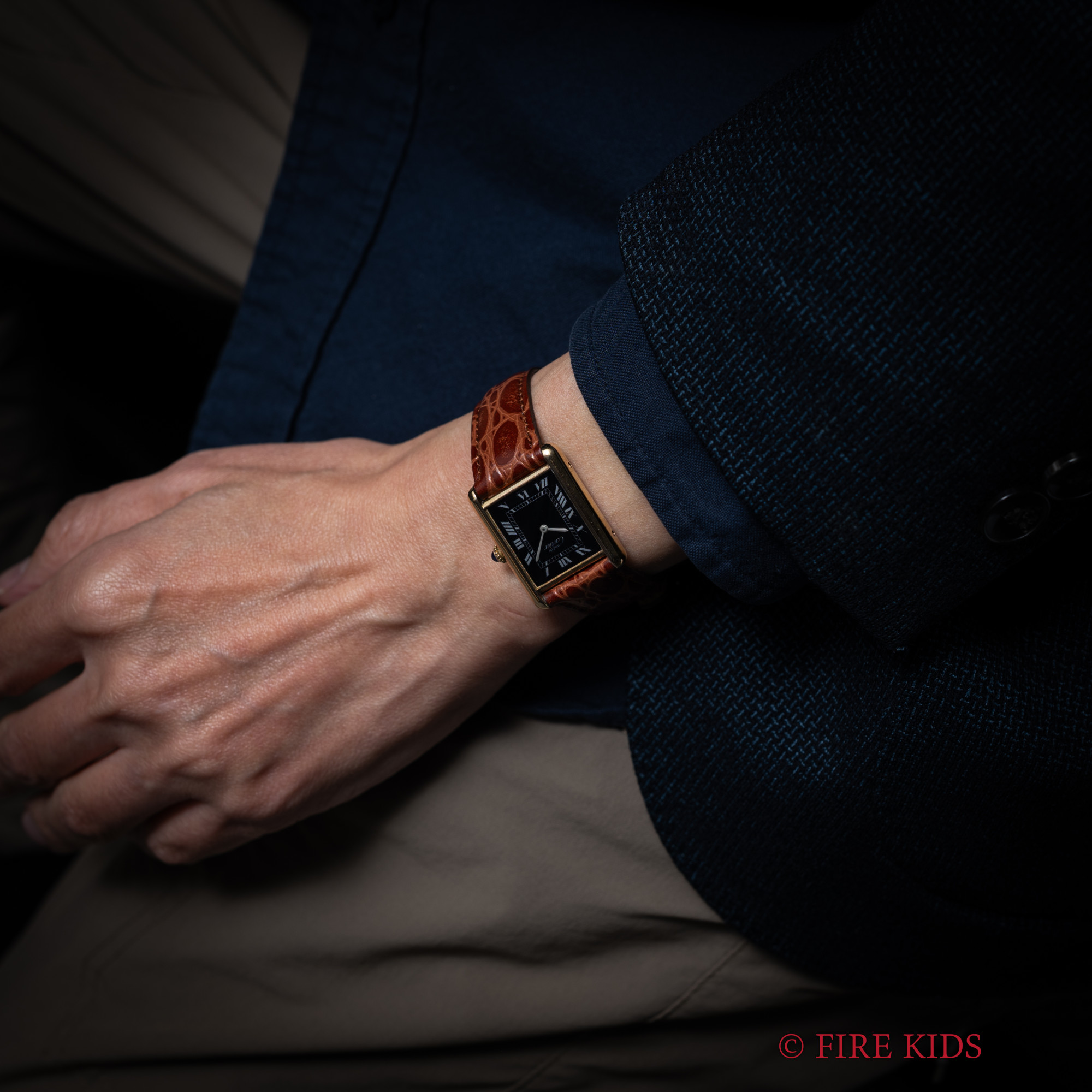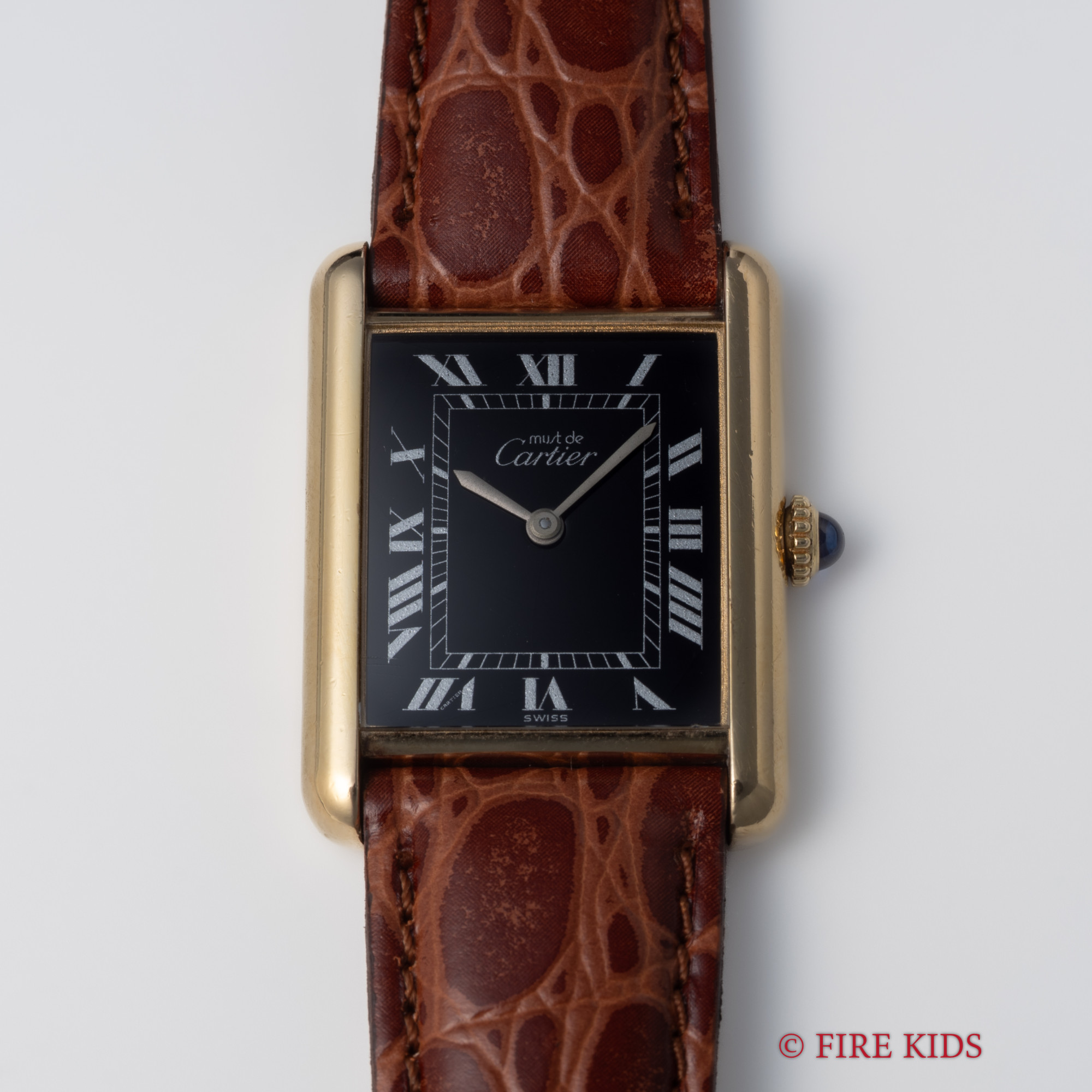 カルティエ マストタンク 1980年代製 LMサイズ ブラックローマンダイヤル 手巻 純正尾錠
