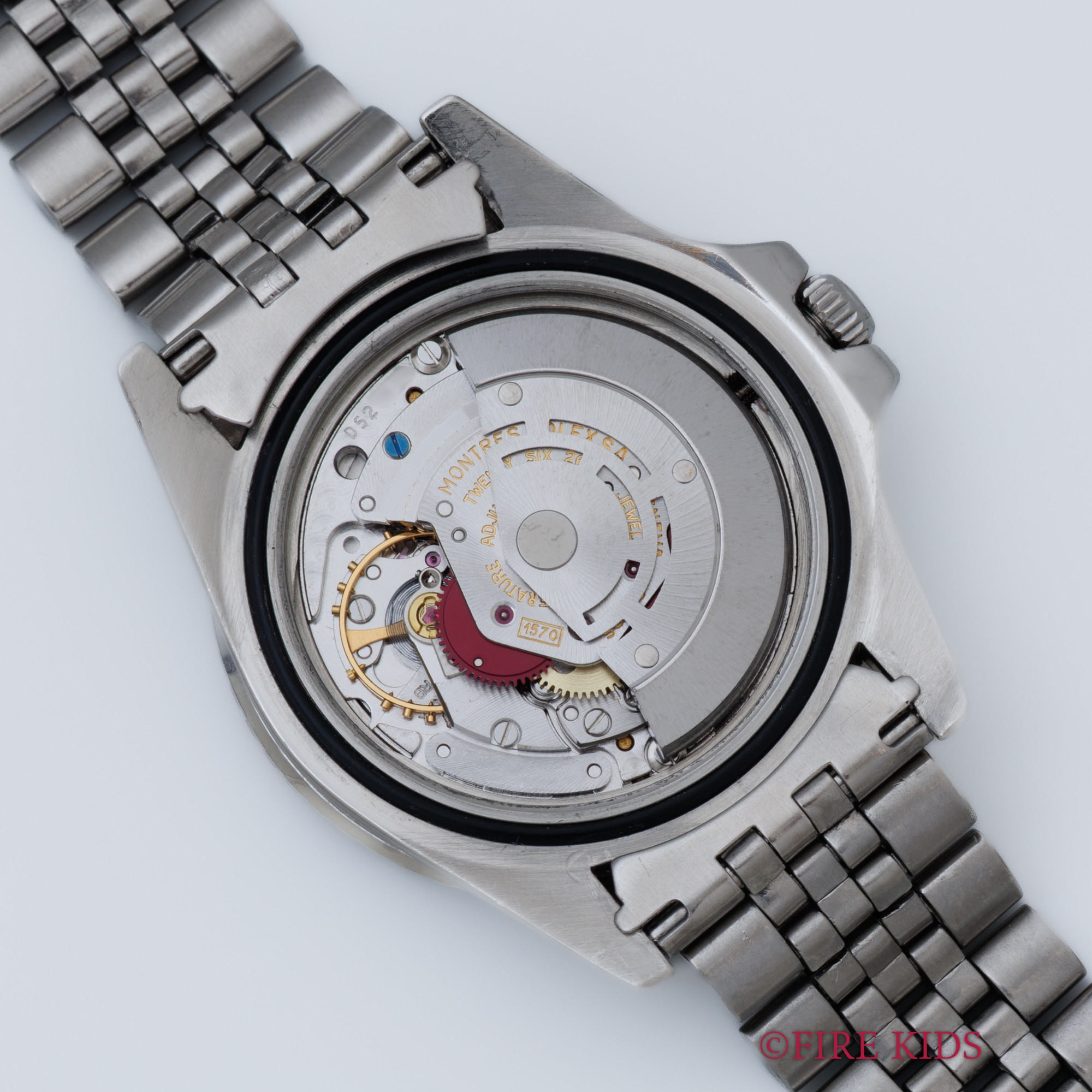 - ヴィンテージ時計の特性上、風防・パッキン・リューズ・バネ棒などの消耗部品は後年メンテナンス過程で交換されている場合がございます。オリジナル性を重視しておりますが、必要に応じて適切な部品にて調整されていますので、よりコレクション性重視のお求めのお客様は事前にご確認ください。