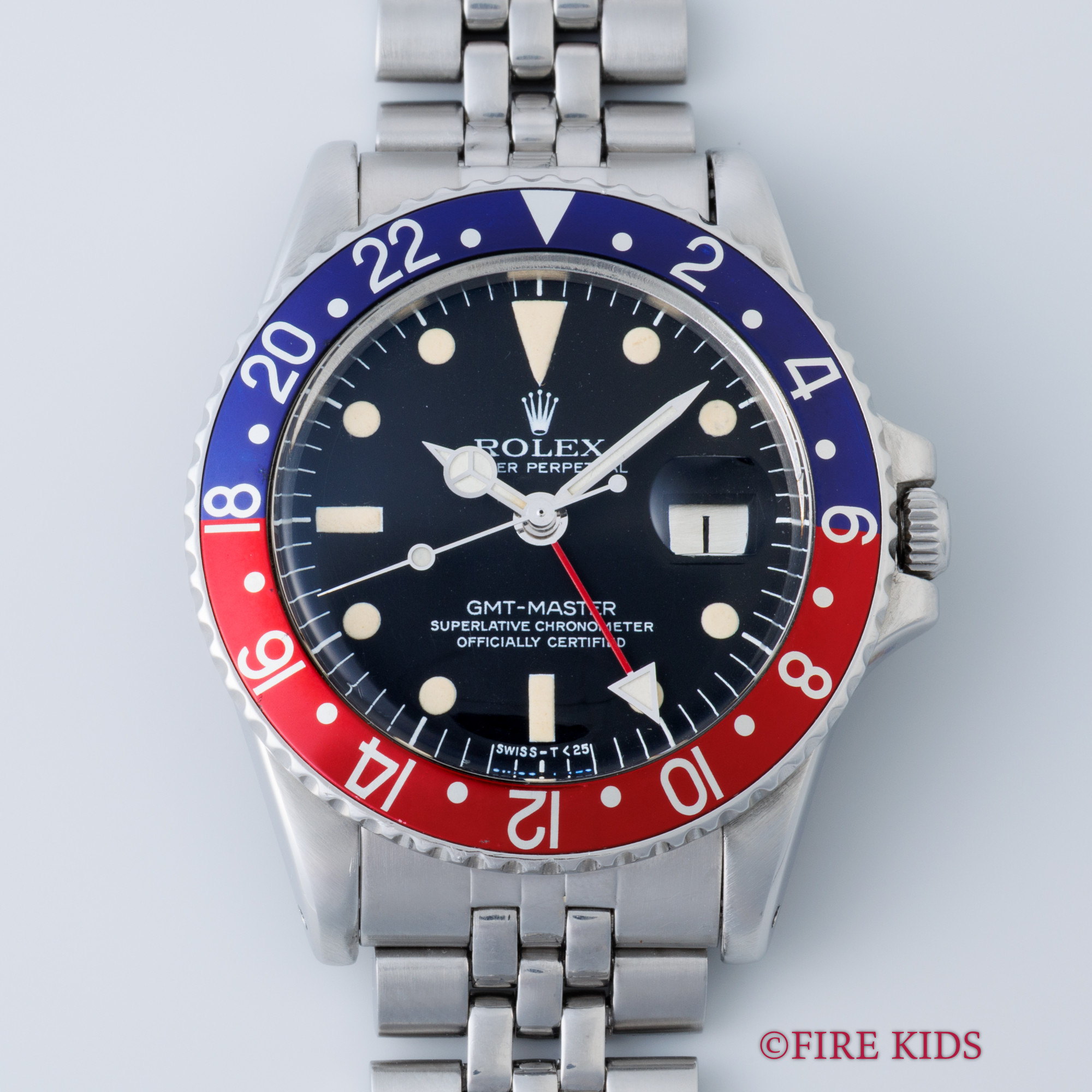 ロレックス GMTマスター Ref.1675 ペプシ 1977年製 純正USジュビリーブレス バックル刻印有 パイロットウォッチ