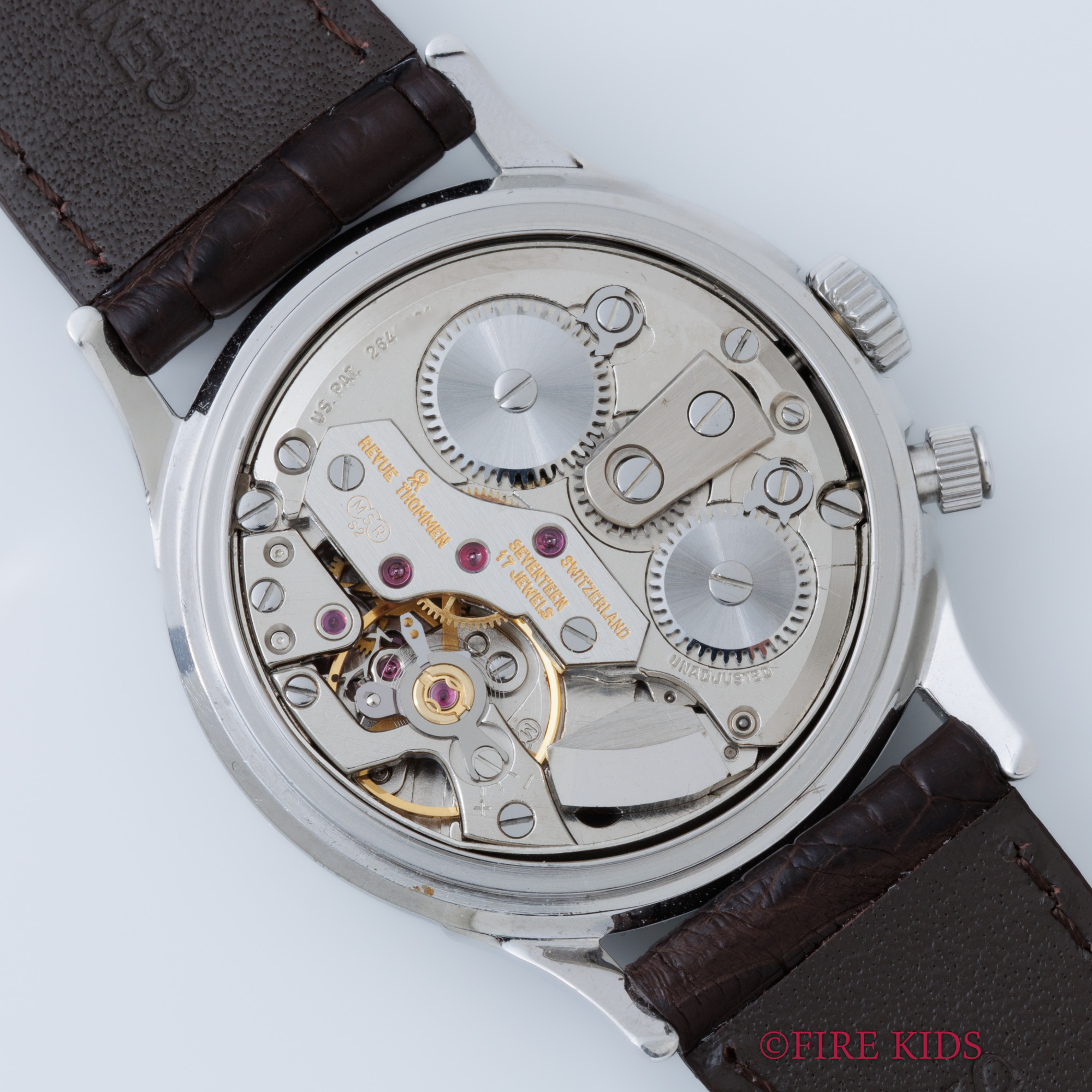 - ヴィンテージ時計の特性上、風防・パッキン・リューズ・バネ棒などの消耗部品は後年メンテナンス過程で交換されている場合がございます。オリジナル性を重視しておりますが、必要に応じて適切な部品にて調整されていますので、よりコレクション性重視のお求めのお客様は事前にご確認ください。