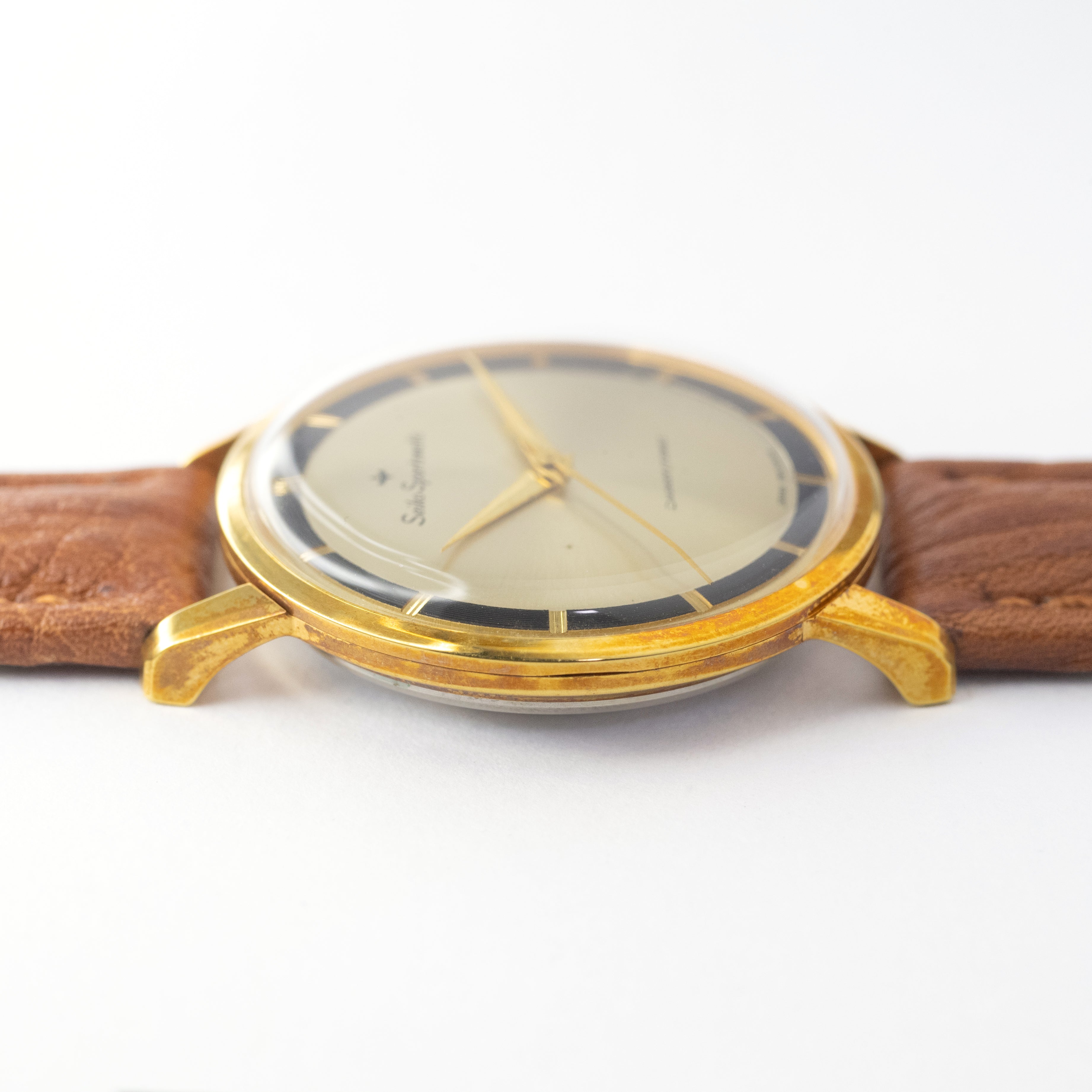 - ヴィンテージ時計の特性上、風防・パッキン・リューズ・バネ棒などの消耗部品は後年メンテナンス過程で交換されている場合がございます。オリジナル性を重視しておりますが、必要に応じて適切な部品にて調整されていますので、よりコレクション性重視のお求めのお客様は事前にご確認ください。