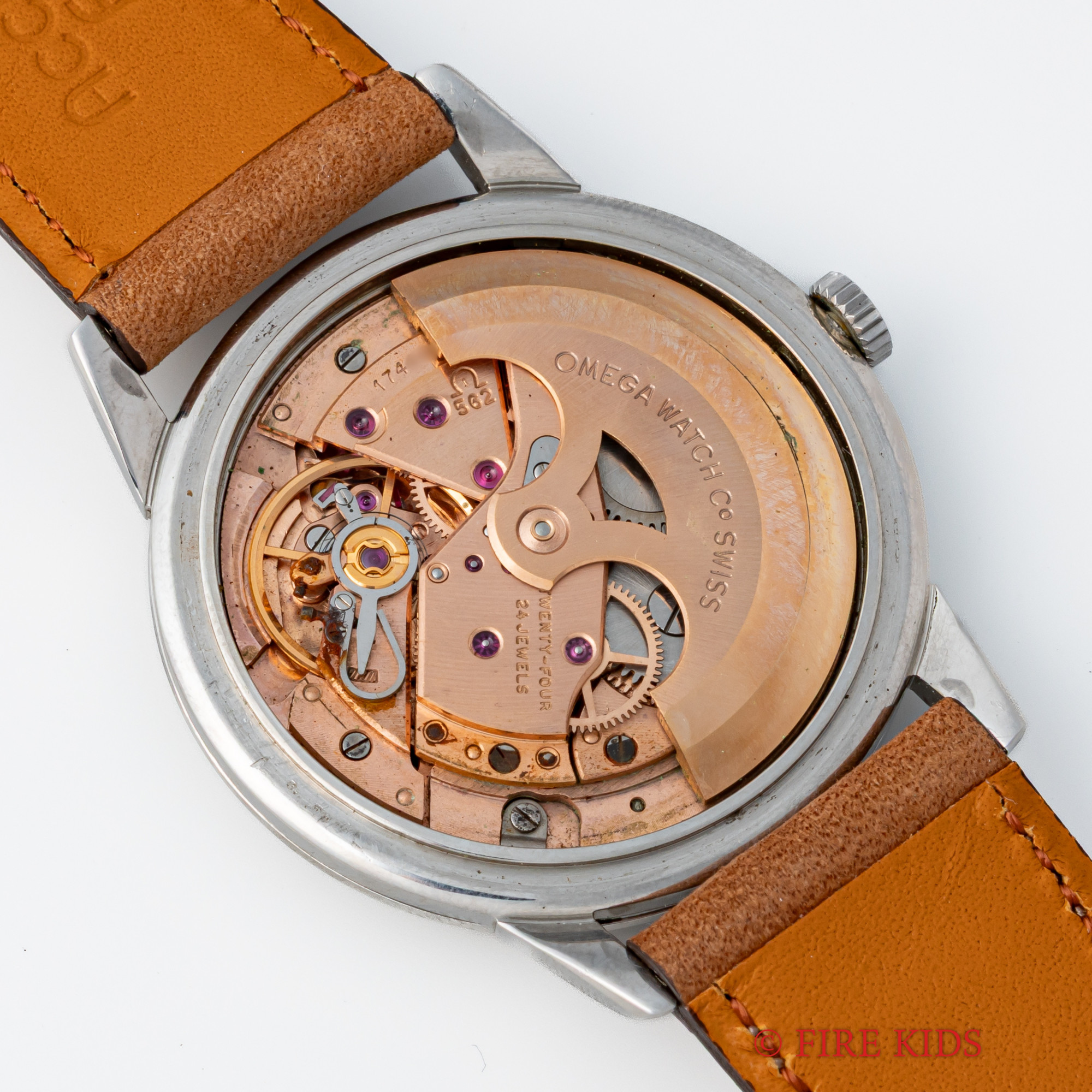 - ヴィンテージ時計の特性上、風防・パッキン・リューズ・バネ棒などの消耗部品は後年メンテナンス過程で交換されている場合がございます。オリジナル性を重視しておりますが、必要に応じて適切な部品にて調整されていますので、よりコレクション性重視のお求めのお客様は事前にご確認ください。