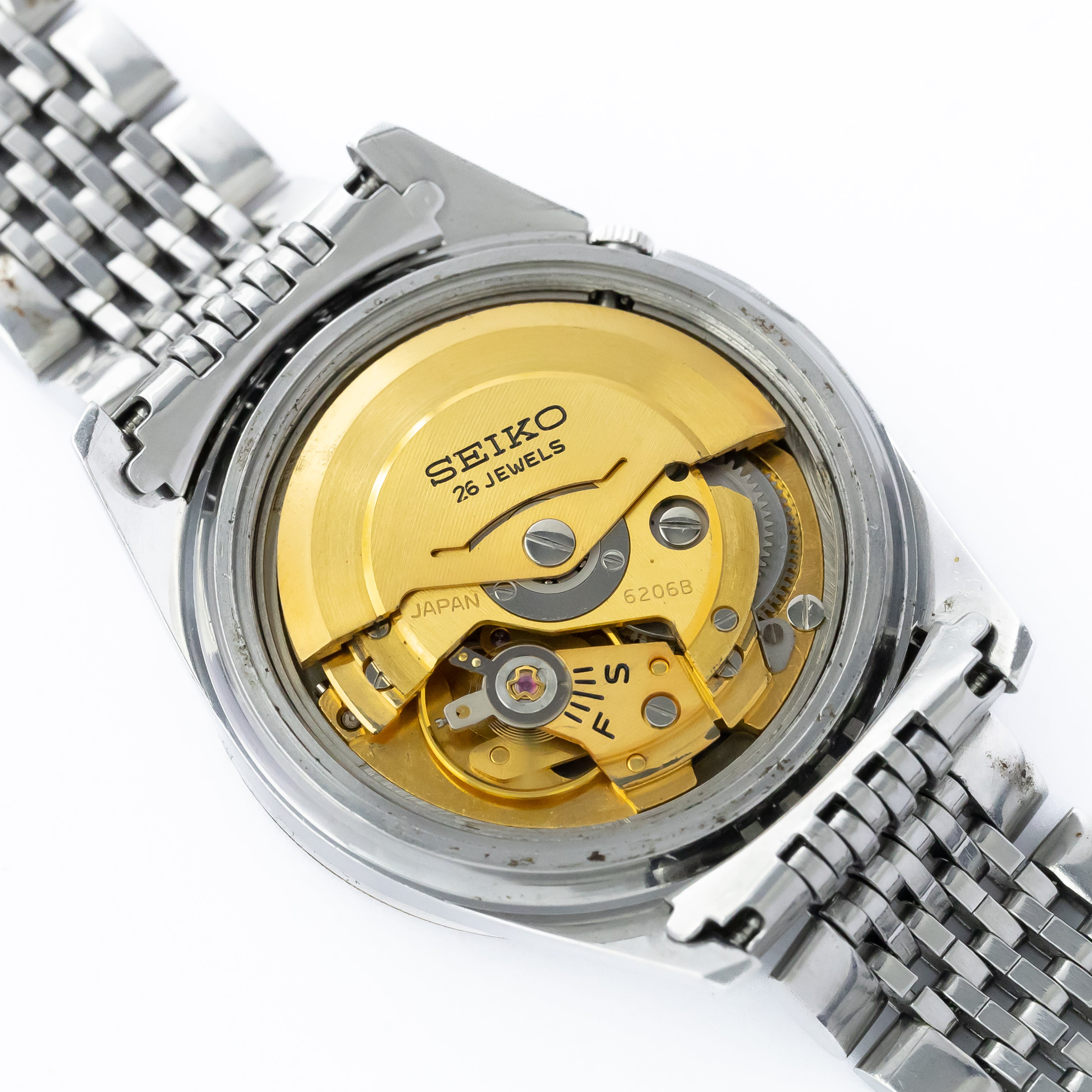 - ヴィンテージ時計の特性上、風防・パッキン・リューズ・バネ棒などの消耗部品は後年メンテナンス過程で交換されている場合がございます。オリジナル性を重視しておりますが、必要に応じて適切な部品にて調整されていますので、よりコレクション性重視のお求めのお客様は事前にご確認ください。