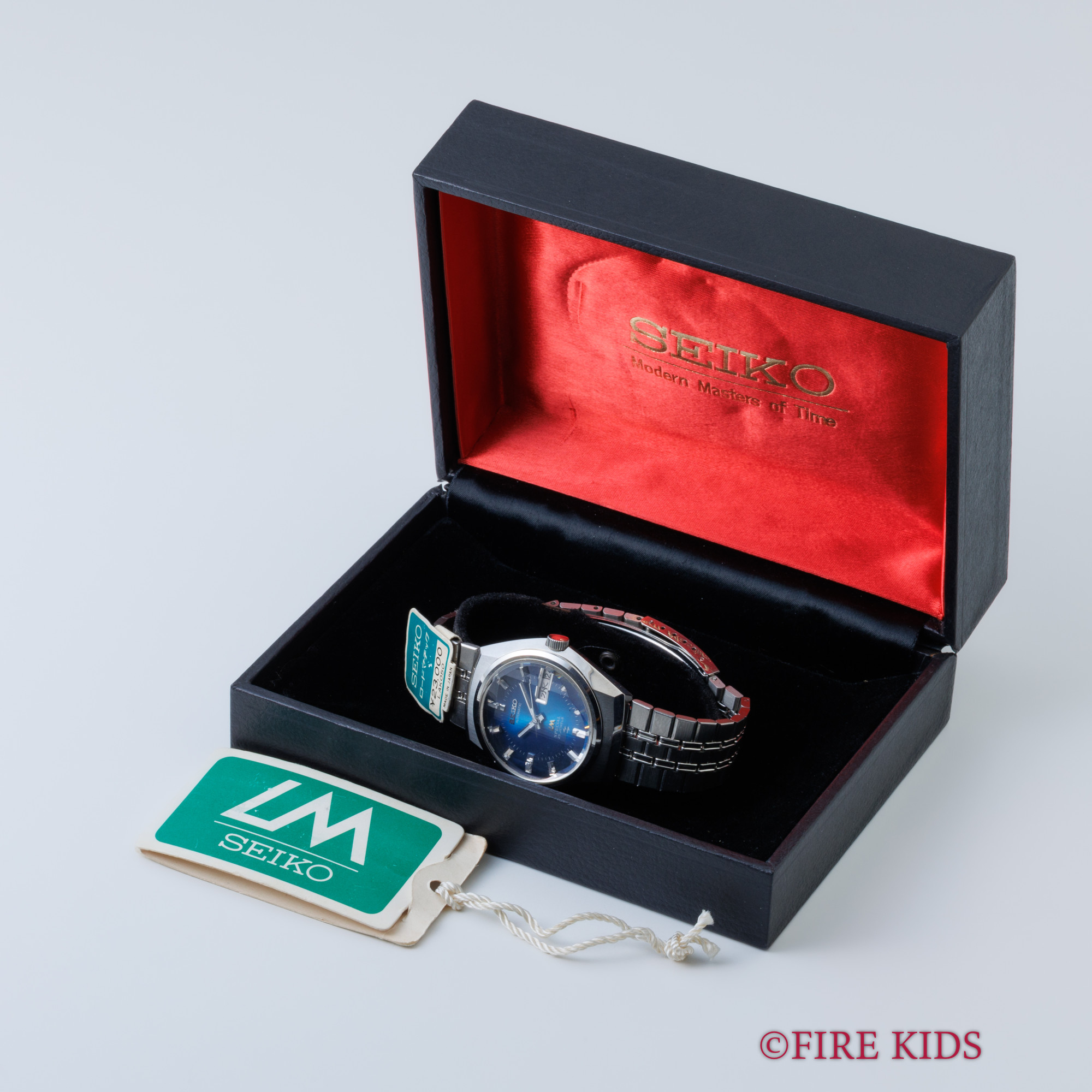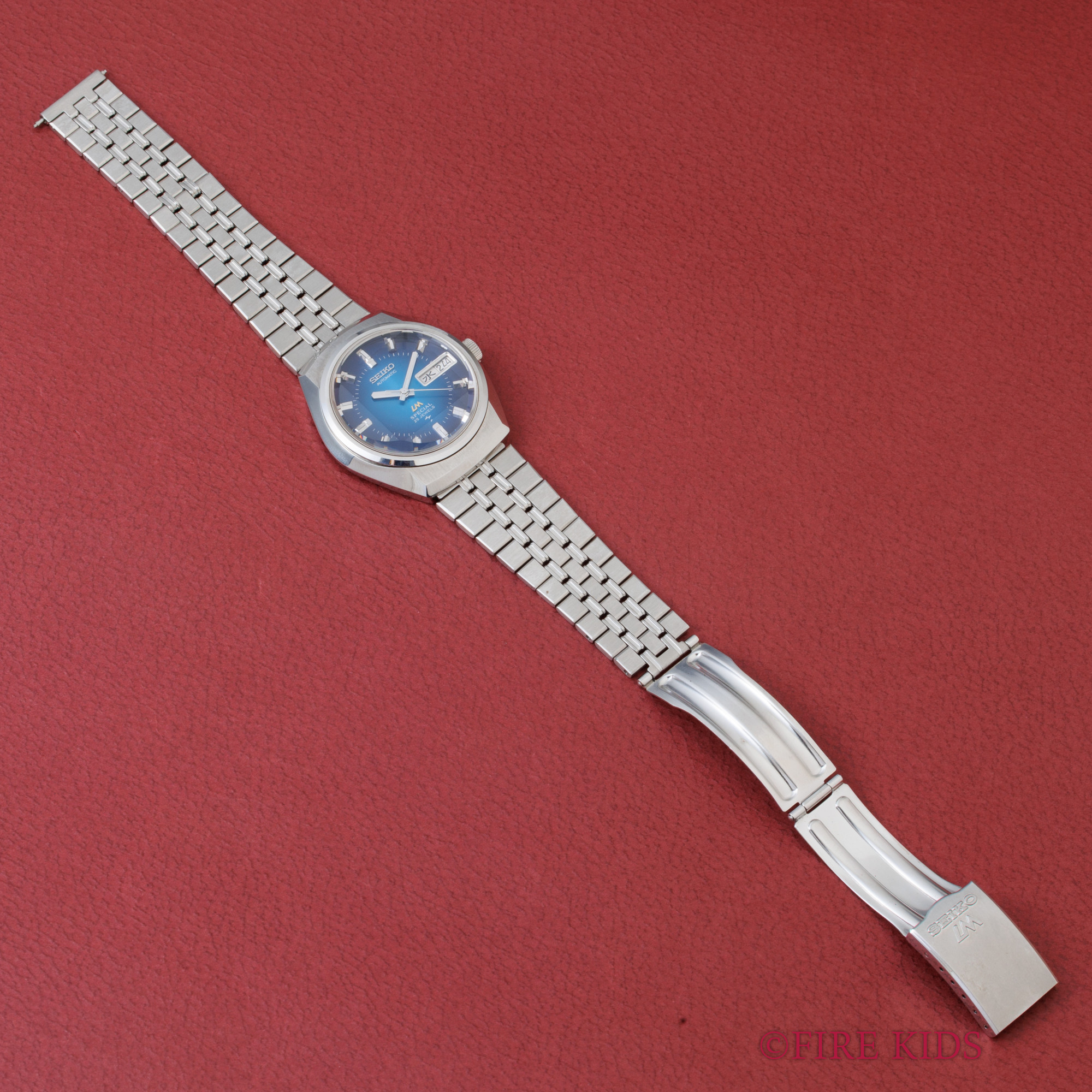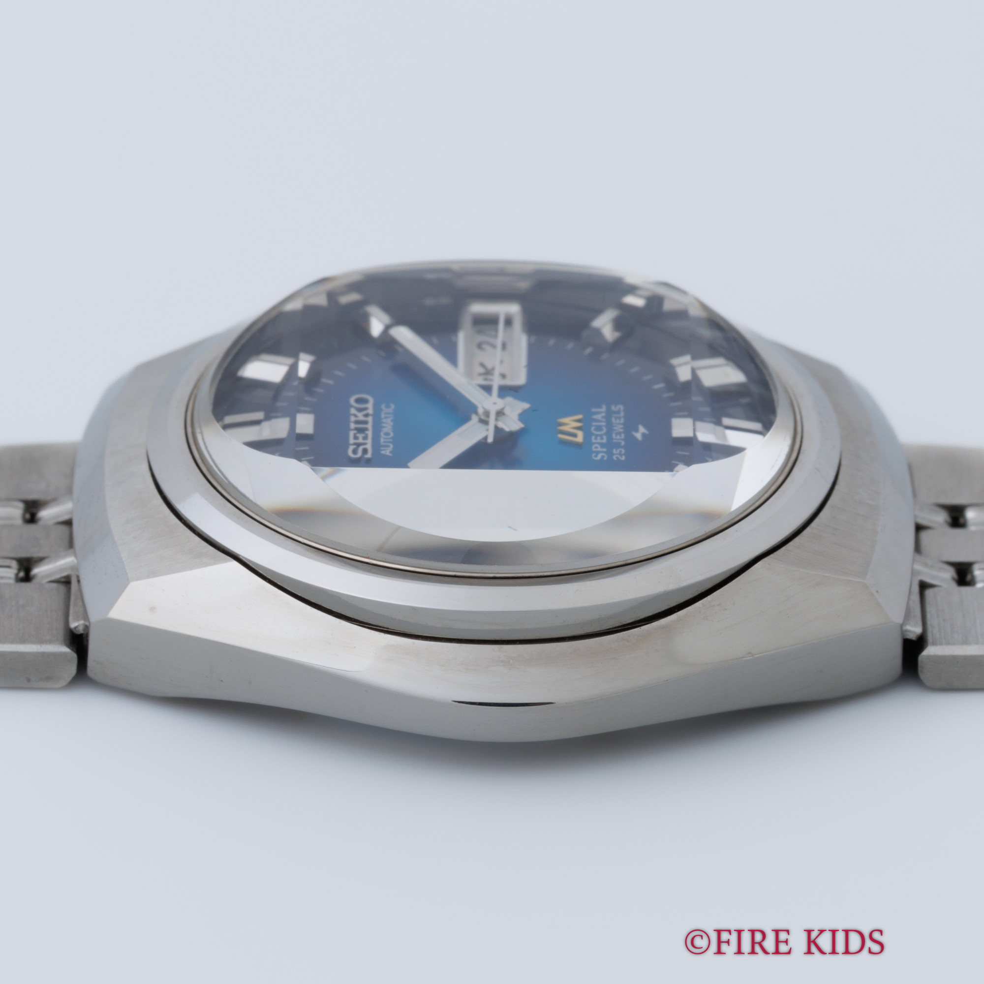 セイコー 52LM ロードマチック ブルーグラデーション カットガラス 1973年製 箱、タグ付き 純正ブレス 自動巻き デイデイト 漢字 美品