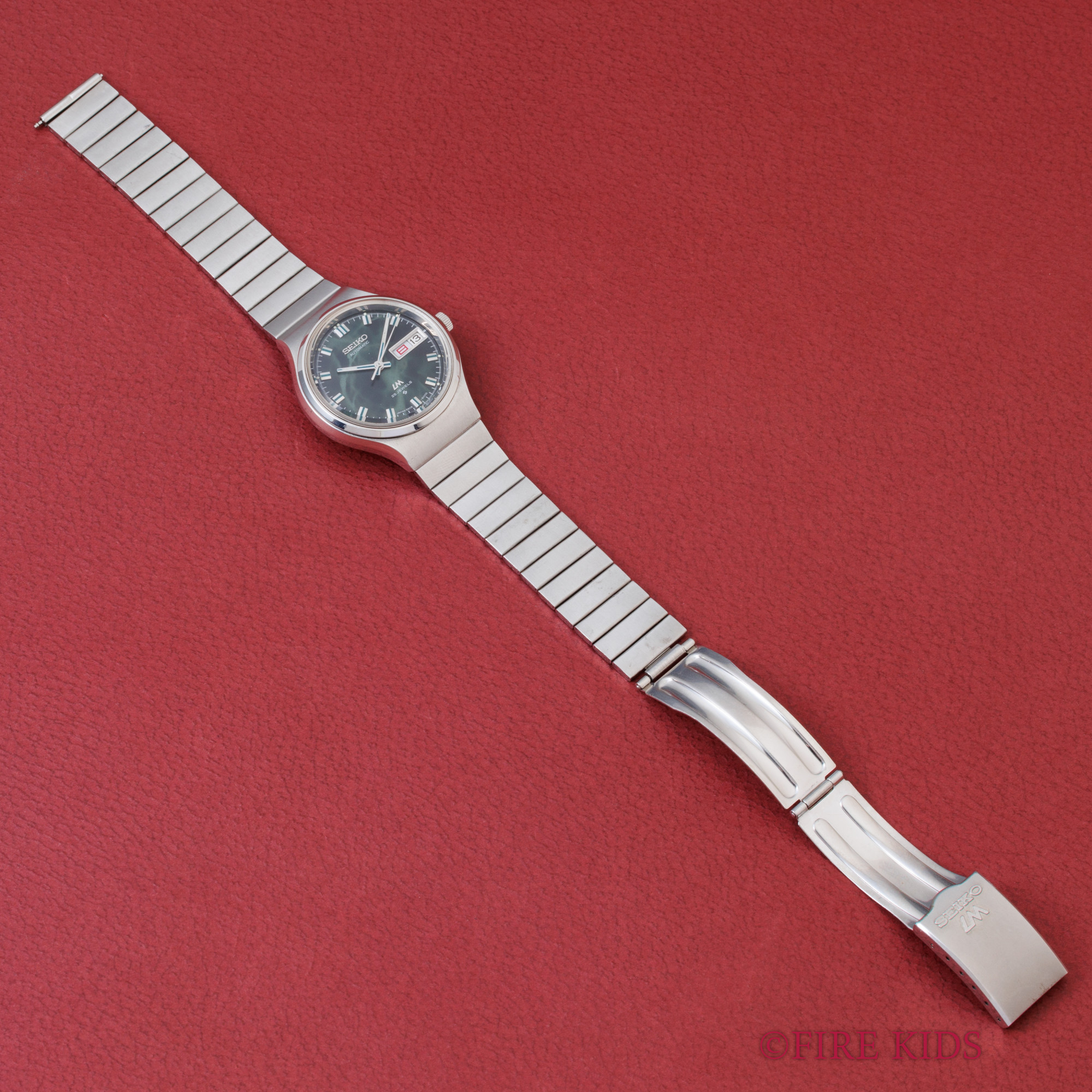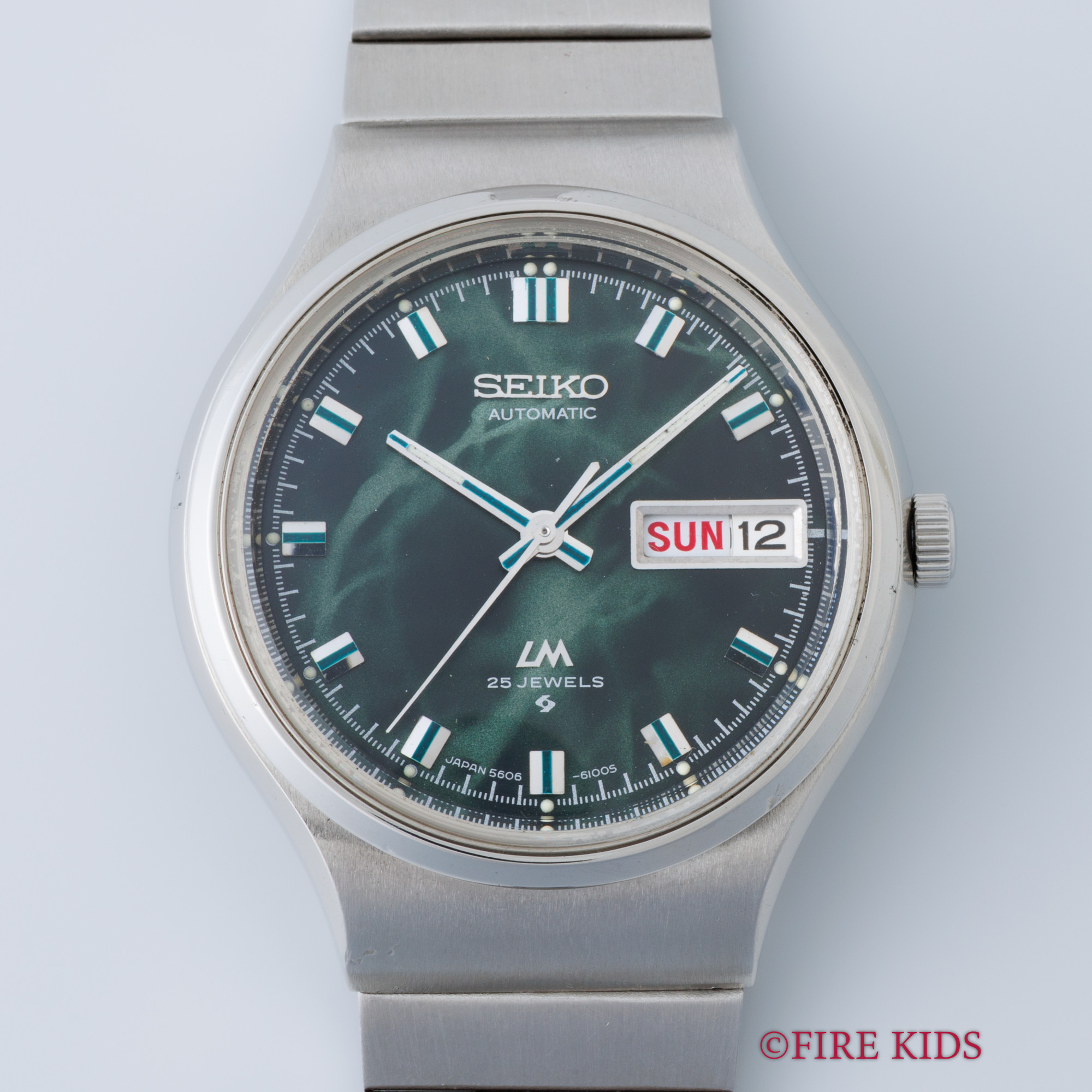セイコー 56LM ロードマチック 1972年製 グリーンマーブル文字盤 デイデイト 漢字曜日 純正ブレス 自動巻き 箱、タグ、取扱説明書付き