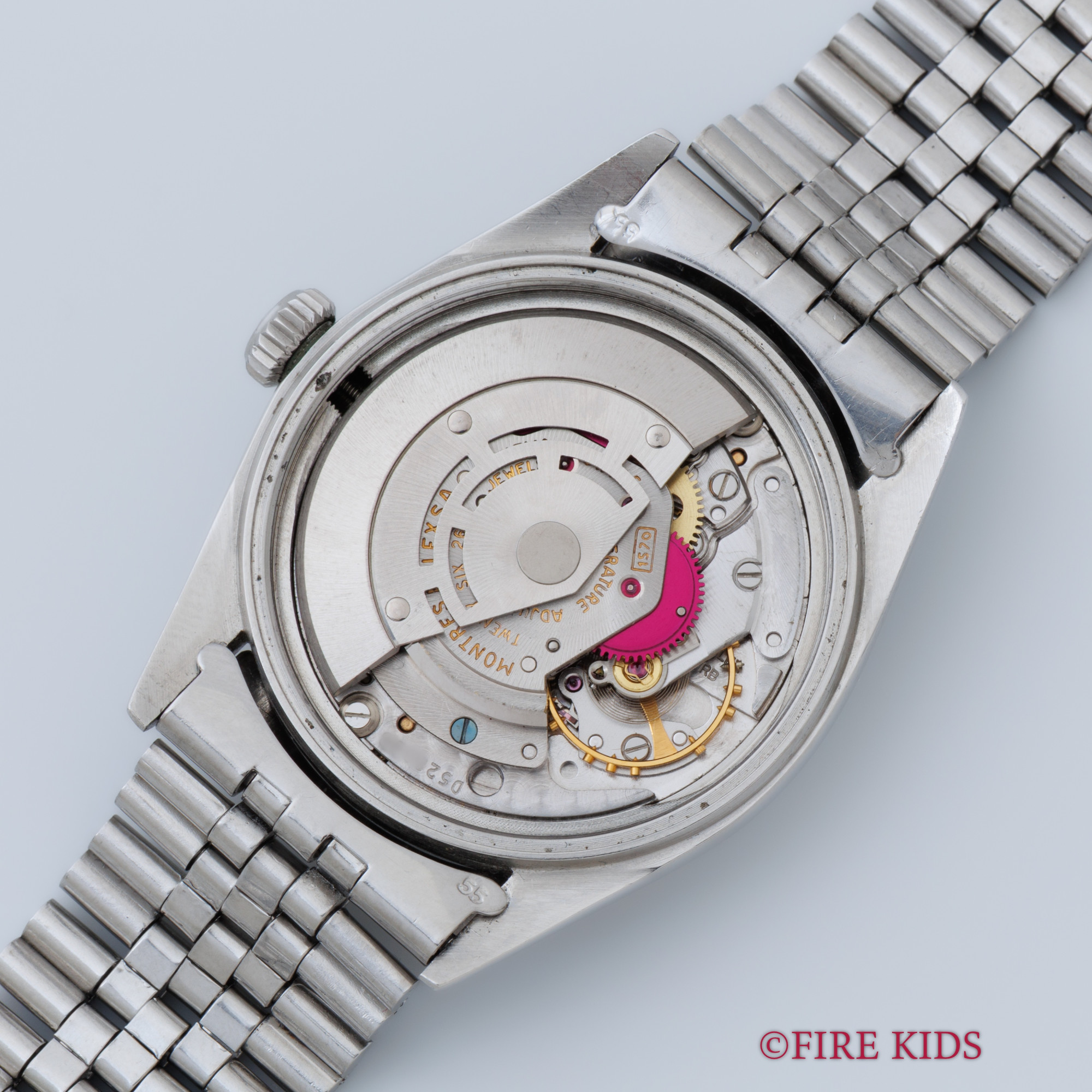 - ヴィンテージ時計の特性上、風防・パッキン・リューズ・バネ棒などの消耗部品は後年メンテナンス過程で交換されている場合がございます。オリジナル性を重視しておりますが、必要に応じて適切な部品にて調整されていますので、よりコレクション性重視のお求めのお客様は事前にご確認ください。