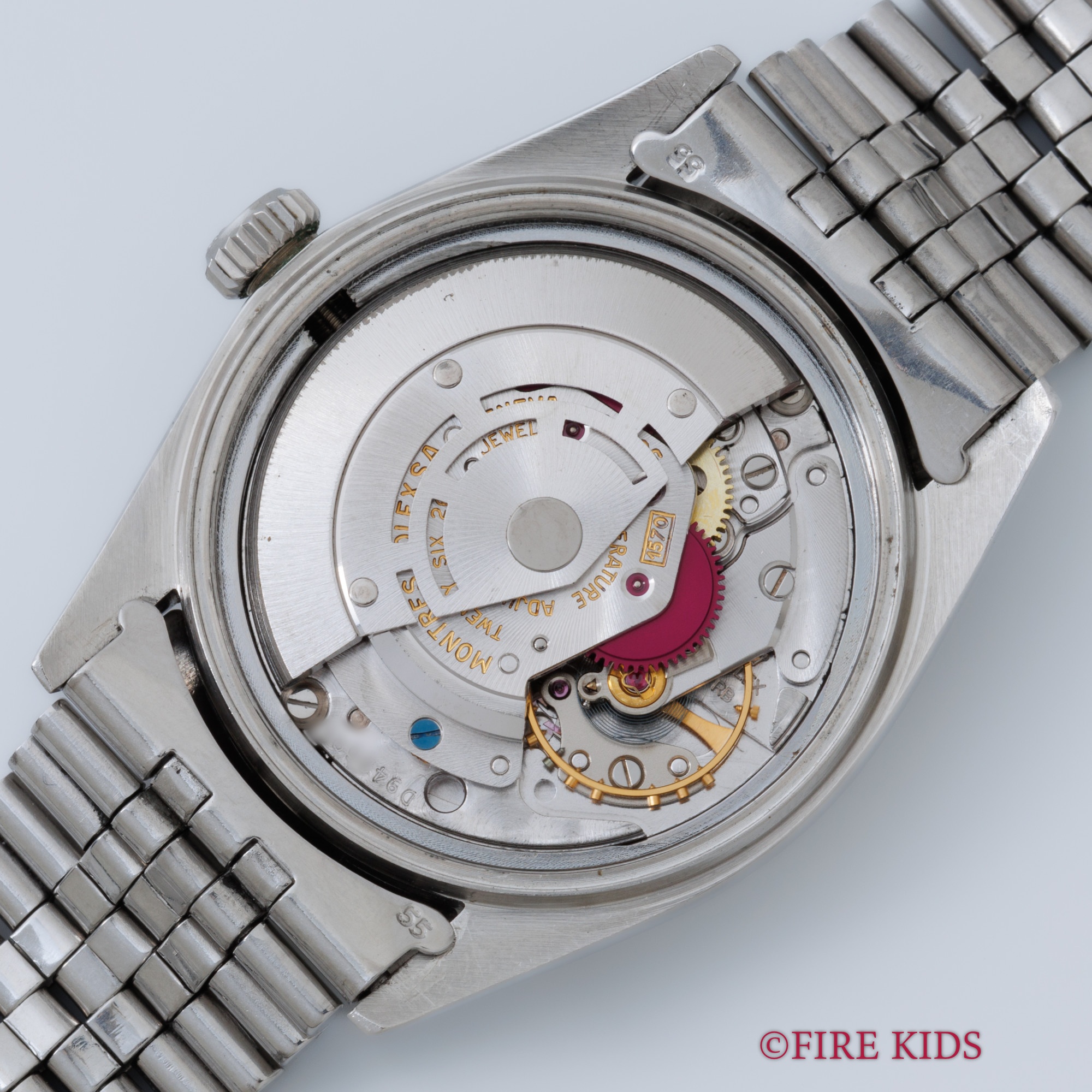 - ヴィンテージ時計の特性上、風防・パッキン・リューズ・バネ棒などの消耗部品は後年メンテナンス過程で交換されている場合がございます。オリジナル性を重視しておりますが、必要に応じて適切な部品にて調整されていますので、よりコレクション性重視のお求めのお客様は事前にご確認ください。