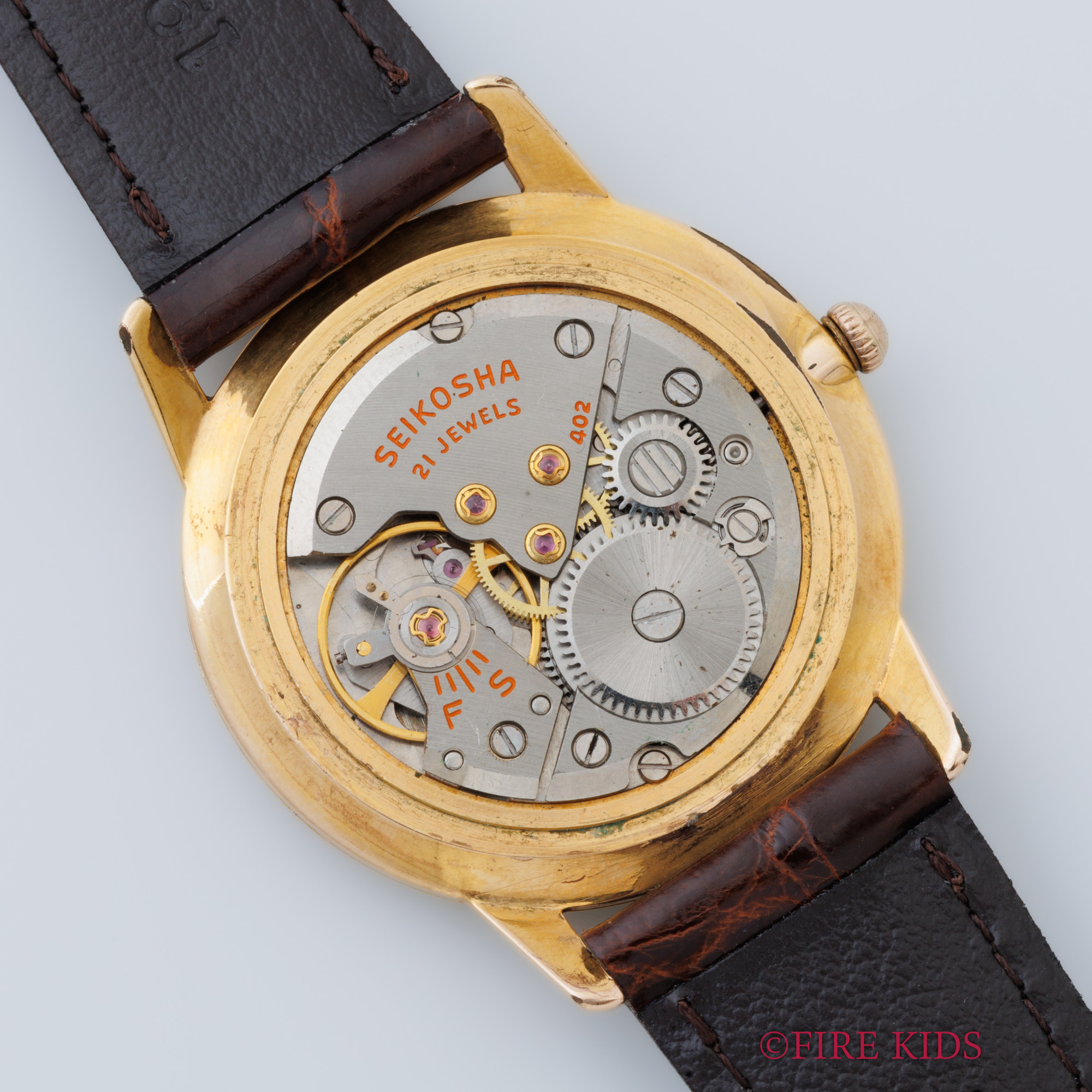 - ヴィンテージ時計の特性上、風防・パッキン・リューズ・バネ棒などの消耗部品は後年メンテナンス過程で交換されている場合がございます。オリジナル性を重視しておりますが、必要に応じて適切な部品にて調整されていますので、よりコレクション性重視のお求めのお客様は事前にご確認ください。