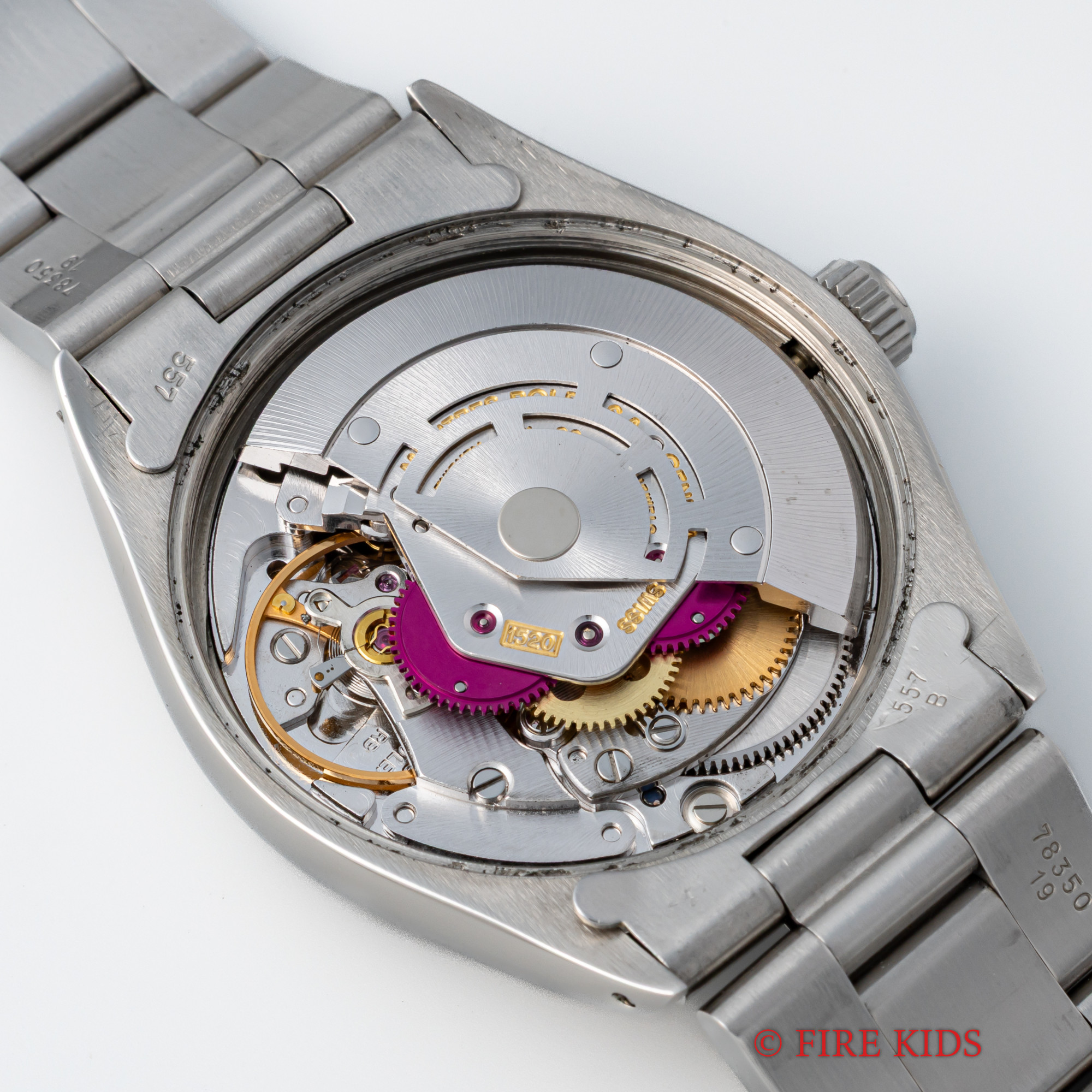 - ヴィンテージ時計の特性上、風防・パッキン・リューズ・バネ棒などの消耗部品は後年メンテナンス過程で交換されている場合がございます。オリジナル性を重視しておりますが、必要に応じて適切な部品にて調整されていますので、よりコレクション性重視のお求めのお客様は事前にご確認ください。