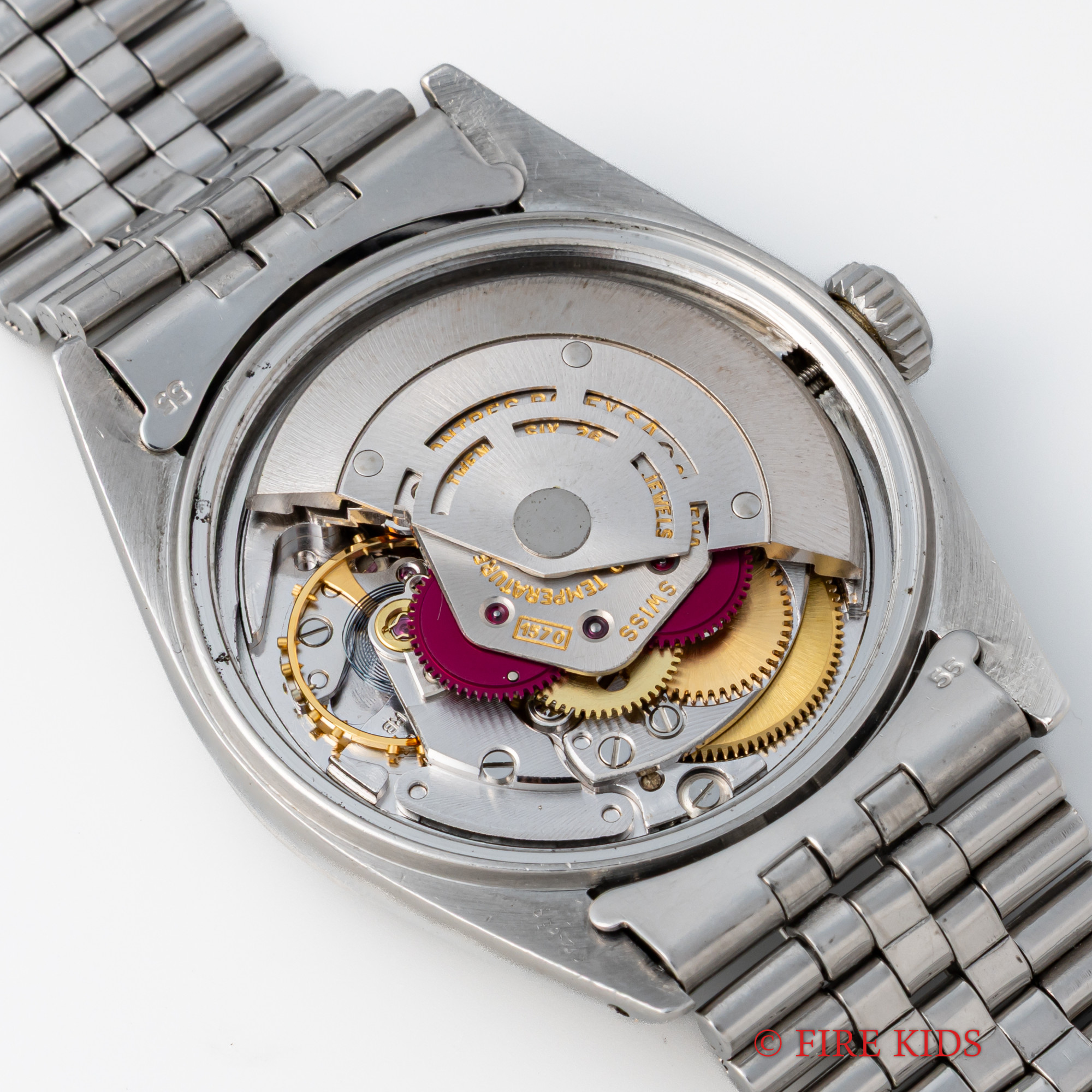 - ヴィンテージ時計の特性上、風防・パッキン・リューズ・バネ棒などの消耗部品は後年メンテナンス過程で交換されている場合がございます。オリジナル性を重視しておりますが、必要に応じて適切な部品にて調整されていますので、よりコレクション性重視のお求めのお客様は事前にご確認ください。