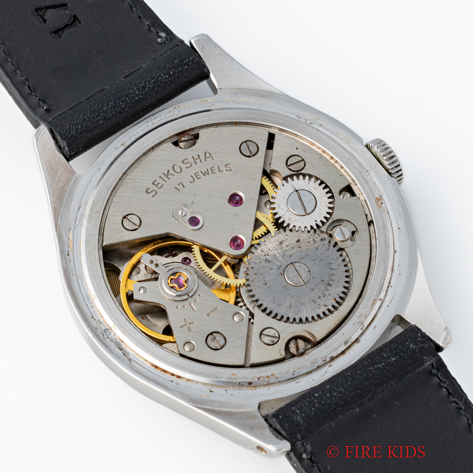 - ヴィンテージ時計の特性上、風防・パッキン・リューズ・バネ棒などの消耗部品は後年メンテナンス過程で交換されている場合がございます。オリジナル性を重視しておりますが、必要に応じて適切な部品にて調整されていますので、よりコレクション性重視のお求めのお客様は事前にご確認ください。