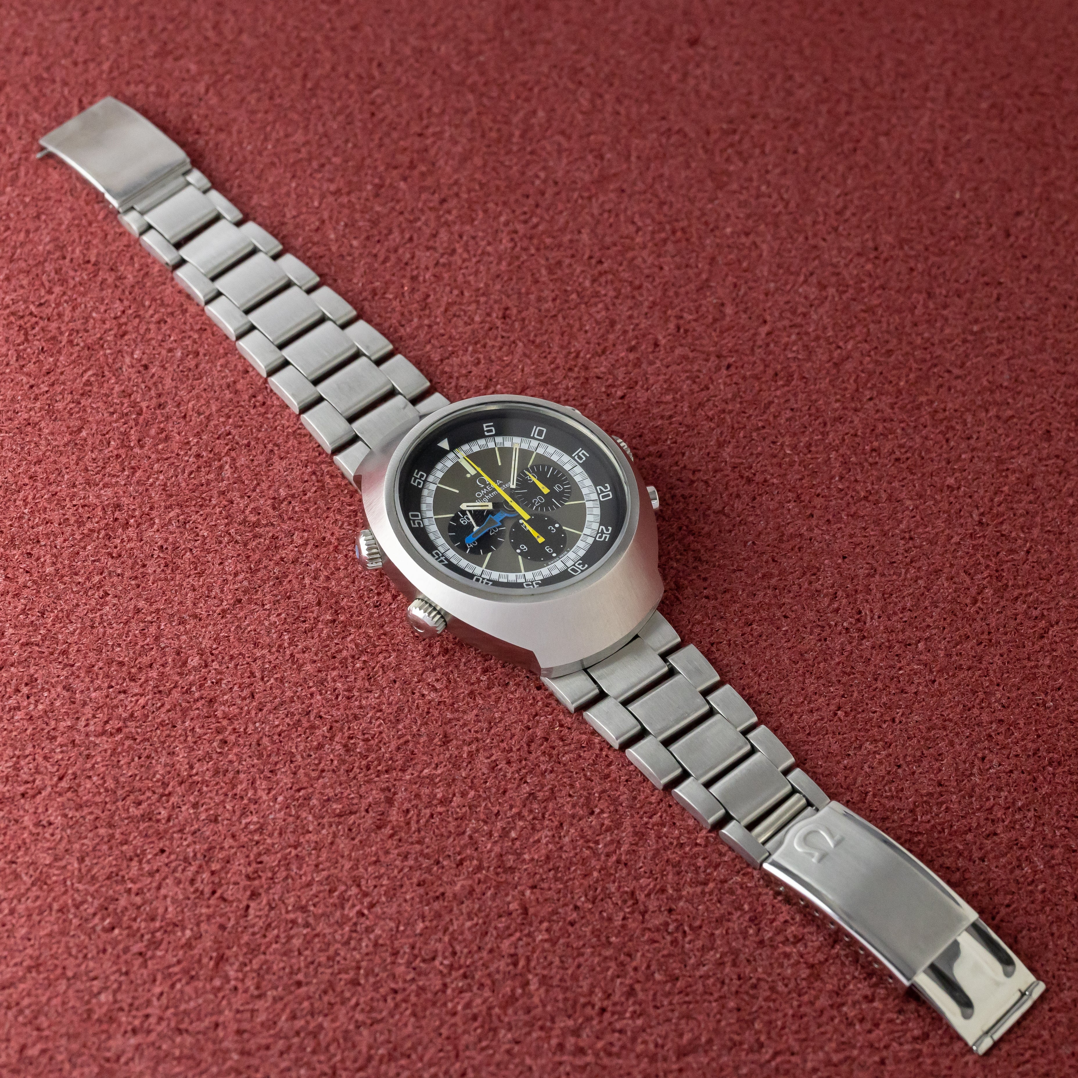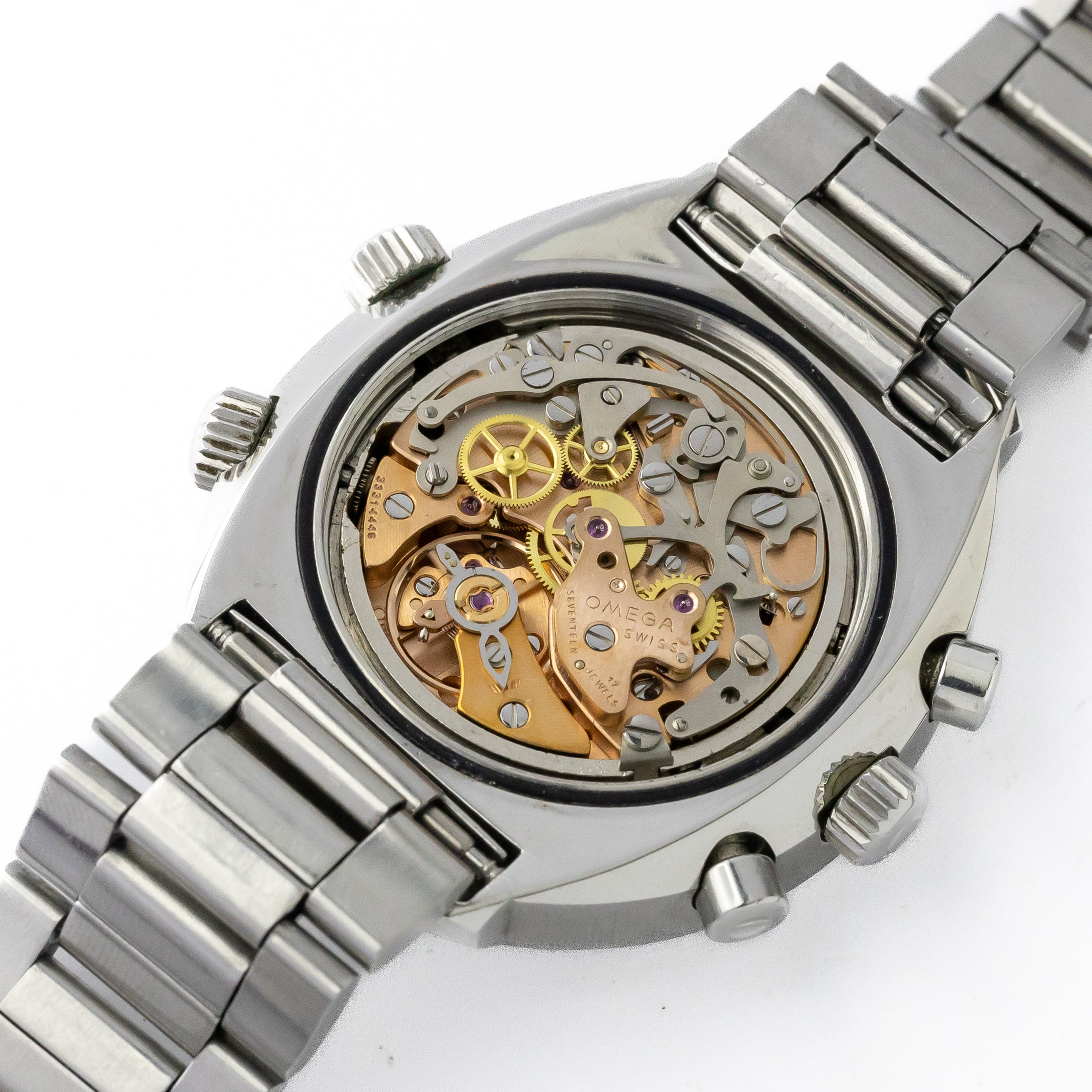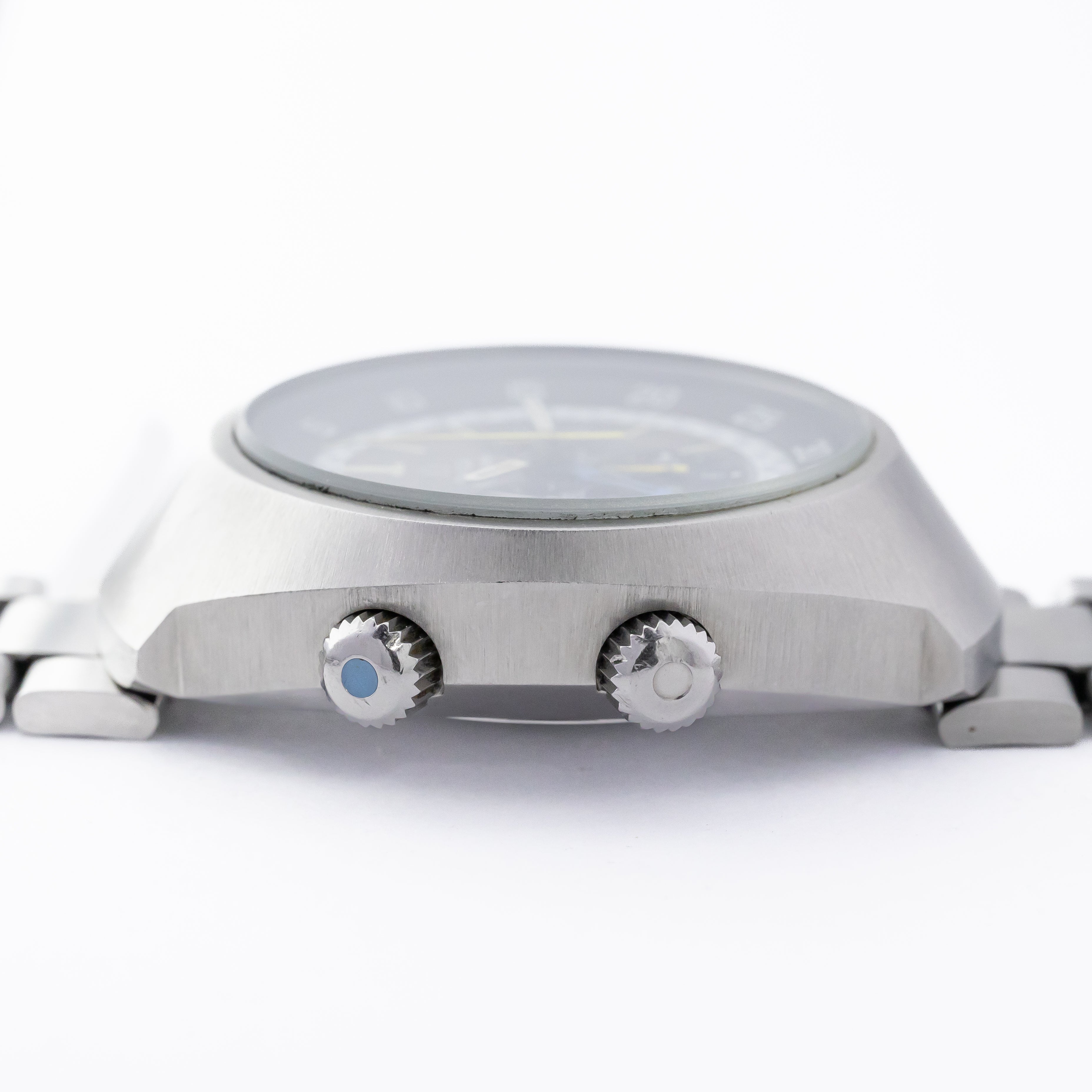 - ヴィンテージ時計の特性上、風防・パッキン・リューズ・バネ棒などの消耗部品は後年メンテナンス過程で交換されている場合がございます。オリジナル性を重視しておりますが、必要に応じて適切な部品にて調整されていますので、よりコレクション性重視のお求めのお客様は事前にご確認ください。