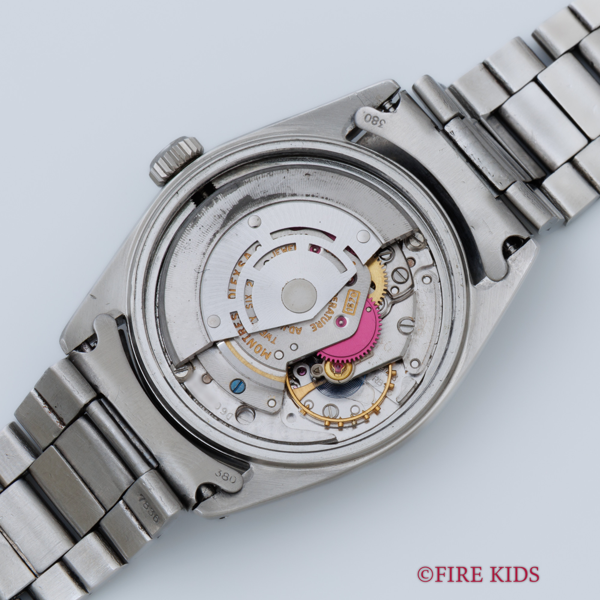 - ヴィンテージ時計の特性上、風防・パッキン・リューズ・バネ棒などの消耗部品は後年メンテナンス過程で交換されている場合がございます。オリジナル性を重視しておりますが、必要に応じて適切な部品にて調整されていますので、よりコレクション性重視のお求めのお客様は事前にご確認ください。