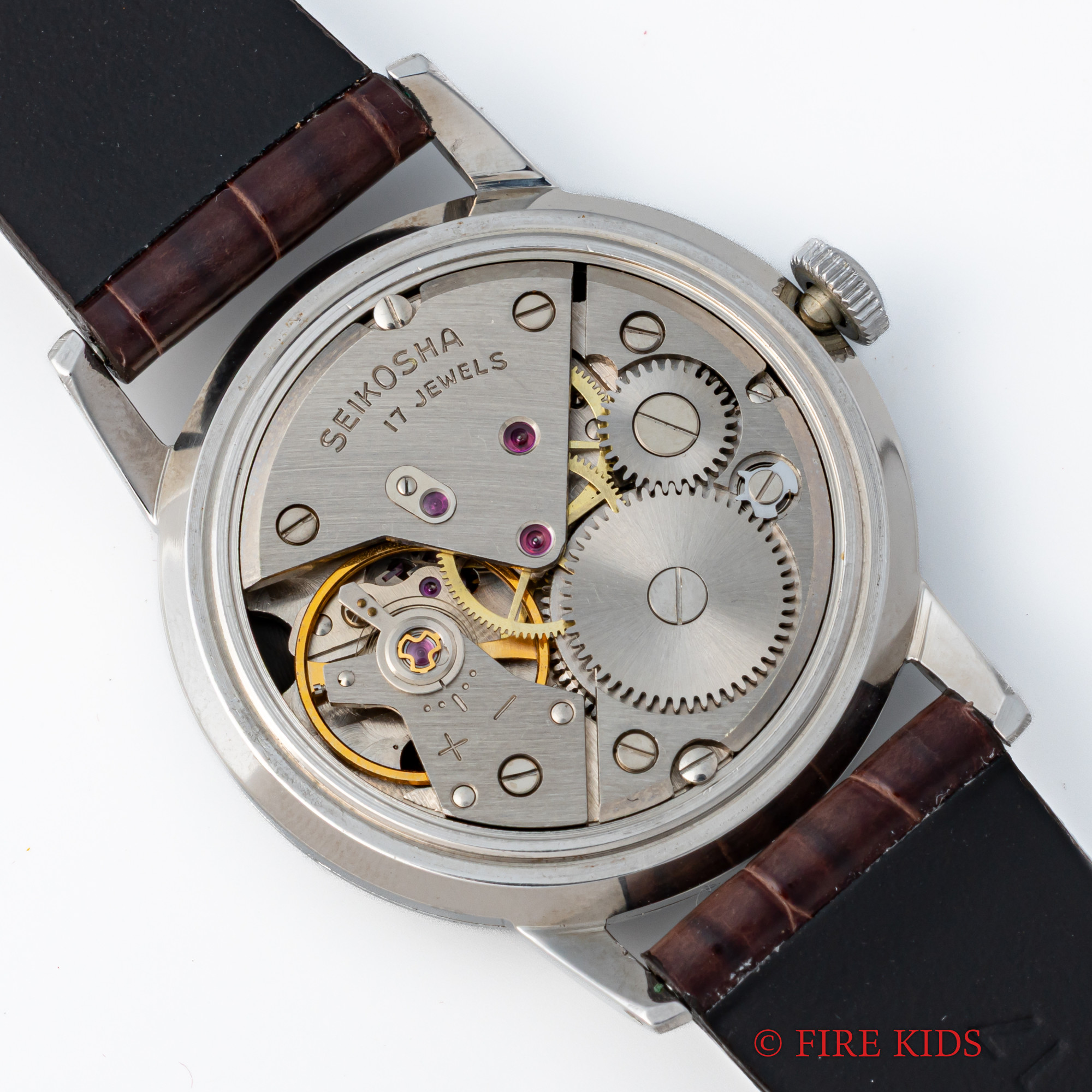 - ヴィンテージ時計の特性上、風防・パッキン・リューズ・バネ棒などの消耗部品は後年メンテナンス過程で交換されている場合がございます。オリジナル性を重視しておりますが、必要に応じて適切な部品にて調整されていますので、よりコレクション性重視のお求めのお客様は事前にご確認ください。