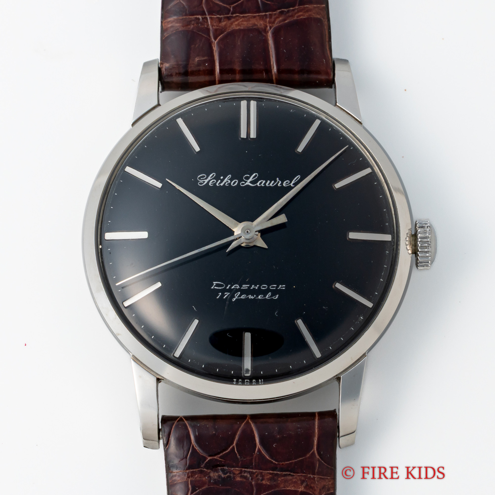 セイコー 1959年製 未使用美品ローレル ブラックダイヤル 17石手巻 オリジナル革ベルト尾錠