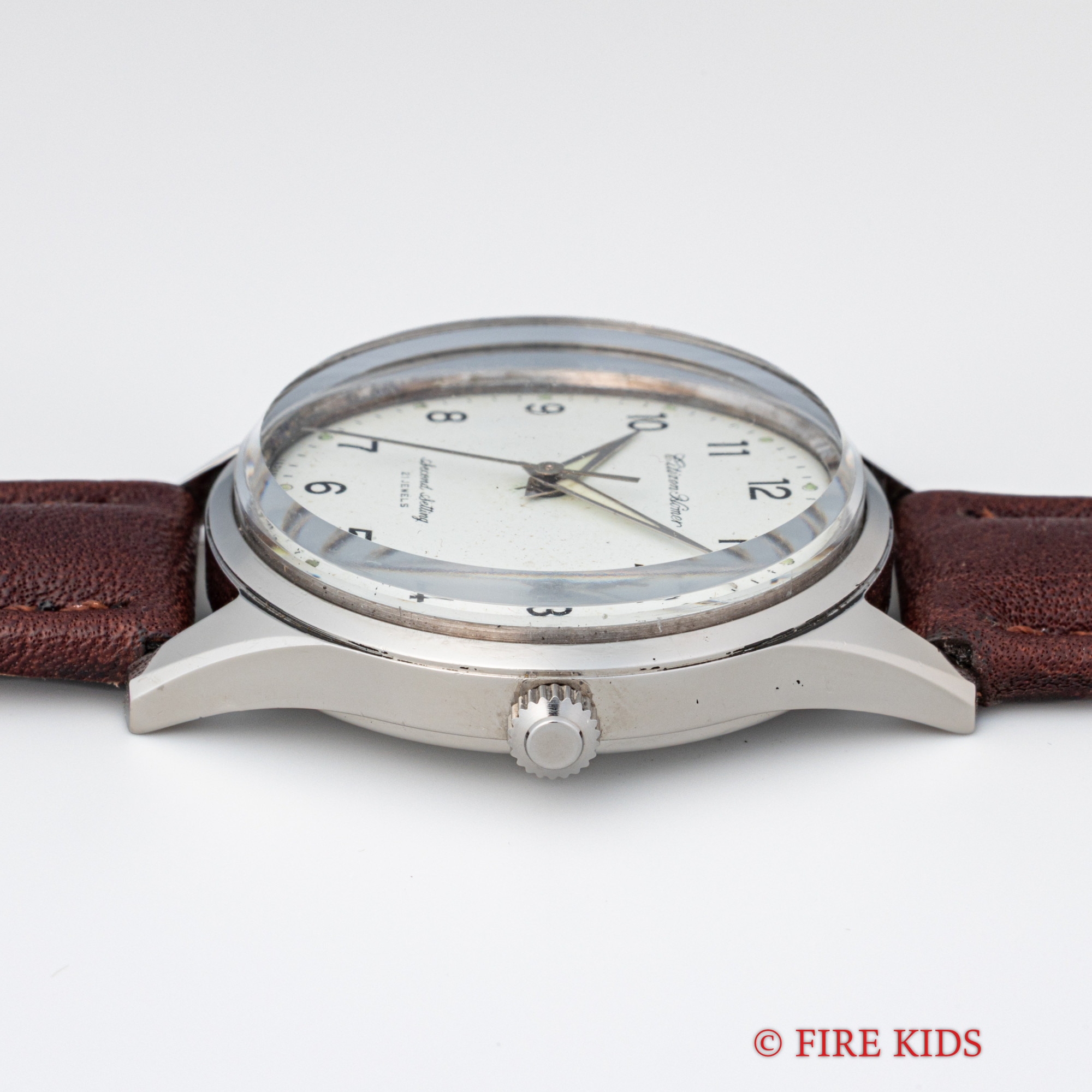 - ヴィンテージ時計の特性上、風防・パッキン・リューズ・バネ棒などの消耗部品は後年メンテナンス過程で交換されている場合がございます。オリジナル性を重視しておりますが、必要に応じて適切な部品にて調整されていますので、よりコレクション性重視のお求めのお客様は事前にご確認ください。