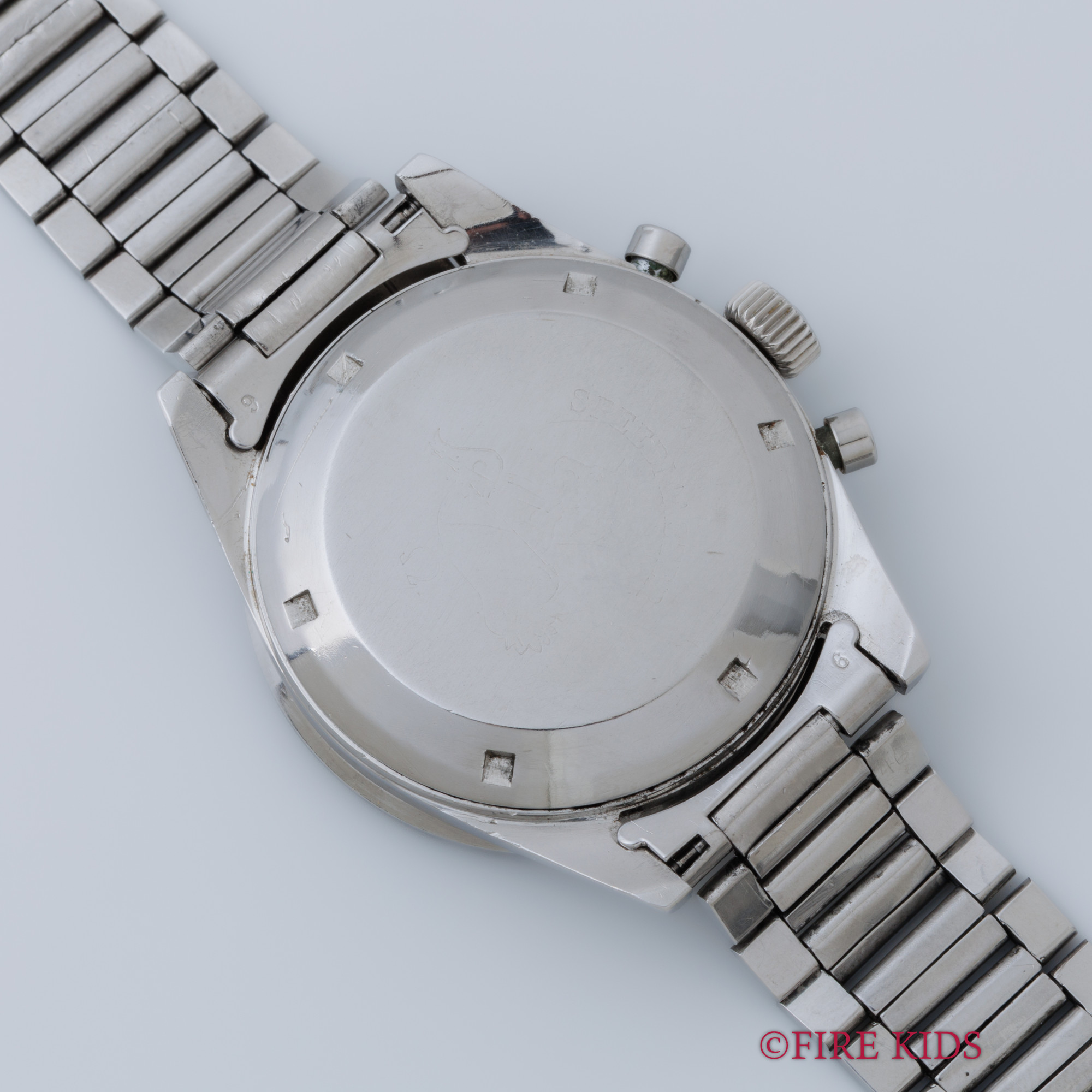- ヴィンテージ時計の特性上、風防・パッキン・リューズ・バネ棒などの消耗部品は後年メンテナンス過程で交換されている場合がございます。オリジナル性を重視しておりますが、必要に応じて適切な部品にて調整されていますので、よりコレクション性重視のお求めのお客様は事前にご確認ください。