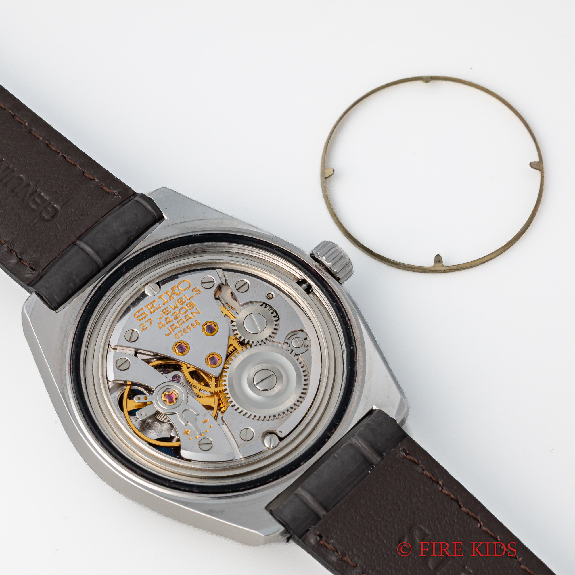 - ヴィンテージ時計の特性上、風防・パッキン・リューズ・バネ棒などの消耗部品は後年メンテナンス過程で交換されている場合がございます。オリジナル性を重視しておりますが、必要に応じて適切な部品にて調整されていますので、よりコレクション性重視のお求めのお客様は事前にご確認ください。