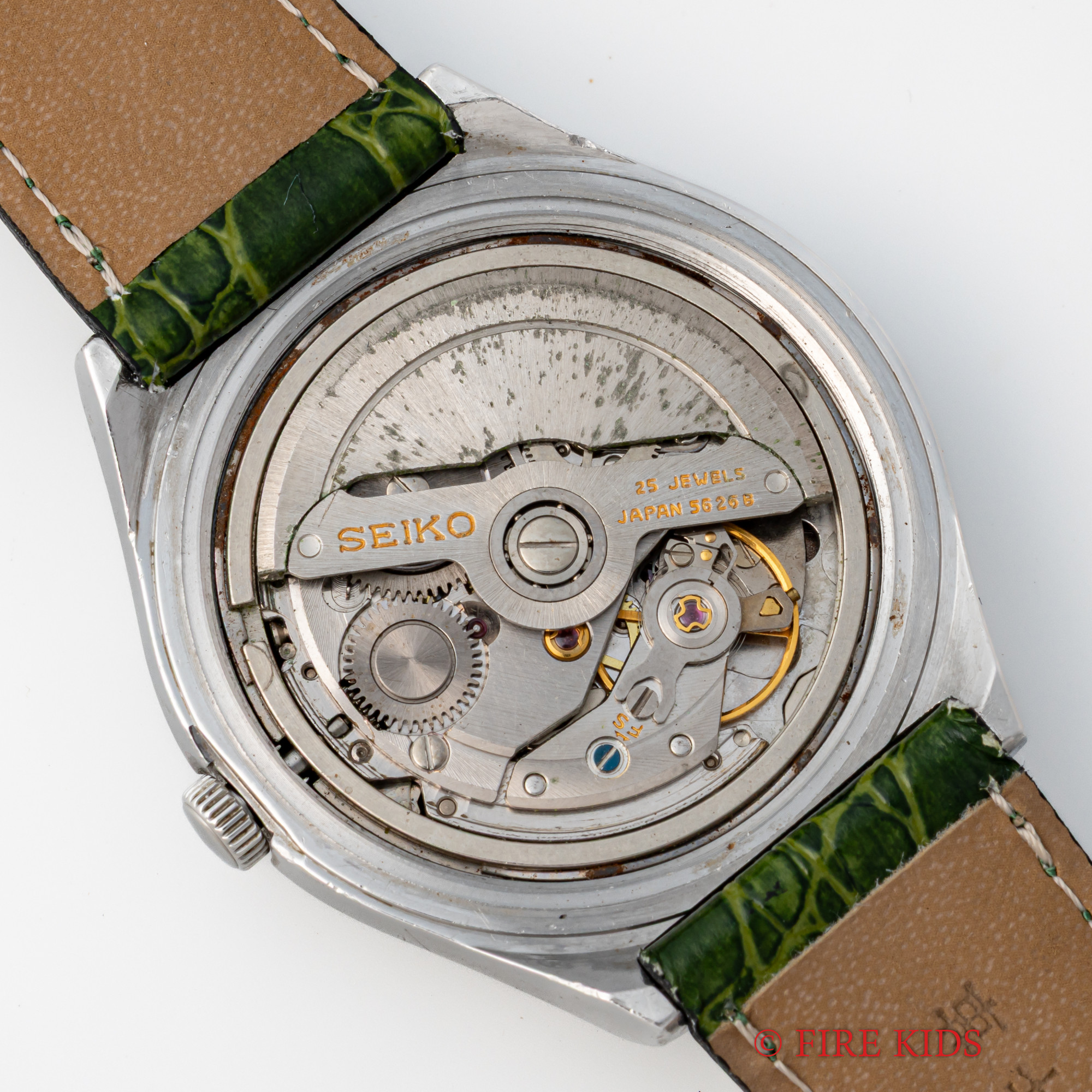 - ヴィンテージ時計の特性上、風防・パッキン・リューズ・バネ棒などの消耗部品は後年メンテナンス過程で交換されている場合がございます。オリジナル性を重視しておりますが、必要に応じて適切な部品にて調整されていますので、よりコレクション性重視のお求めのお客様は事前にご確認ください。
