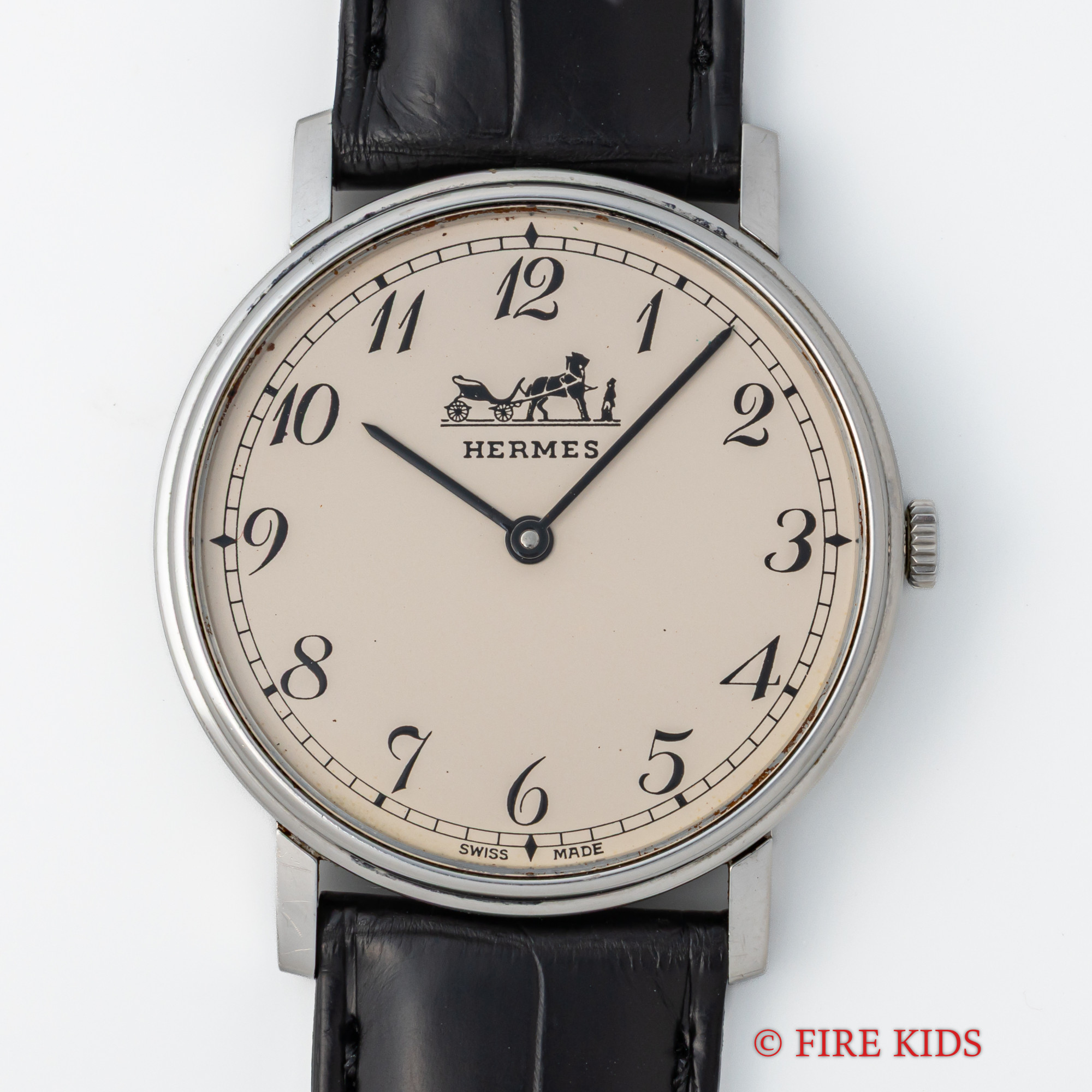 エルメス ラウンドケース アラビアダイヤル アイボリー 1990年代製 手巻き