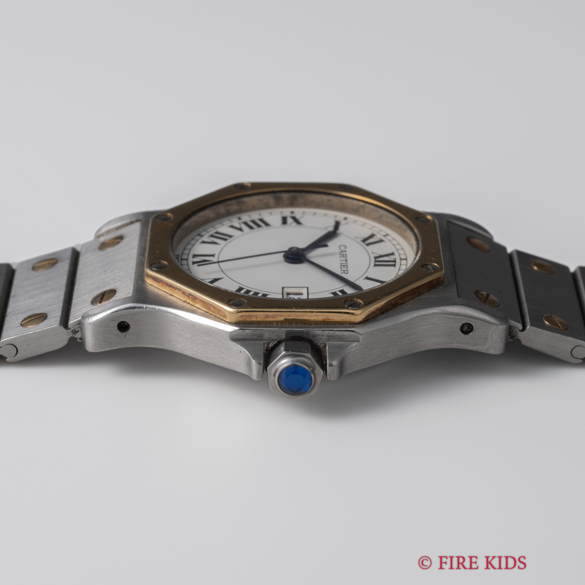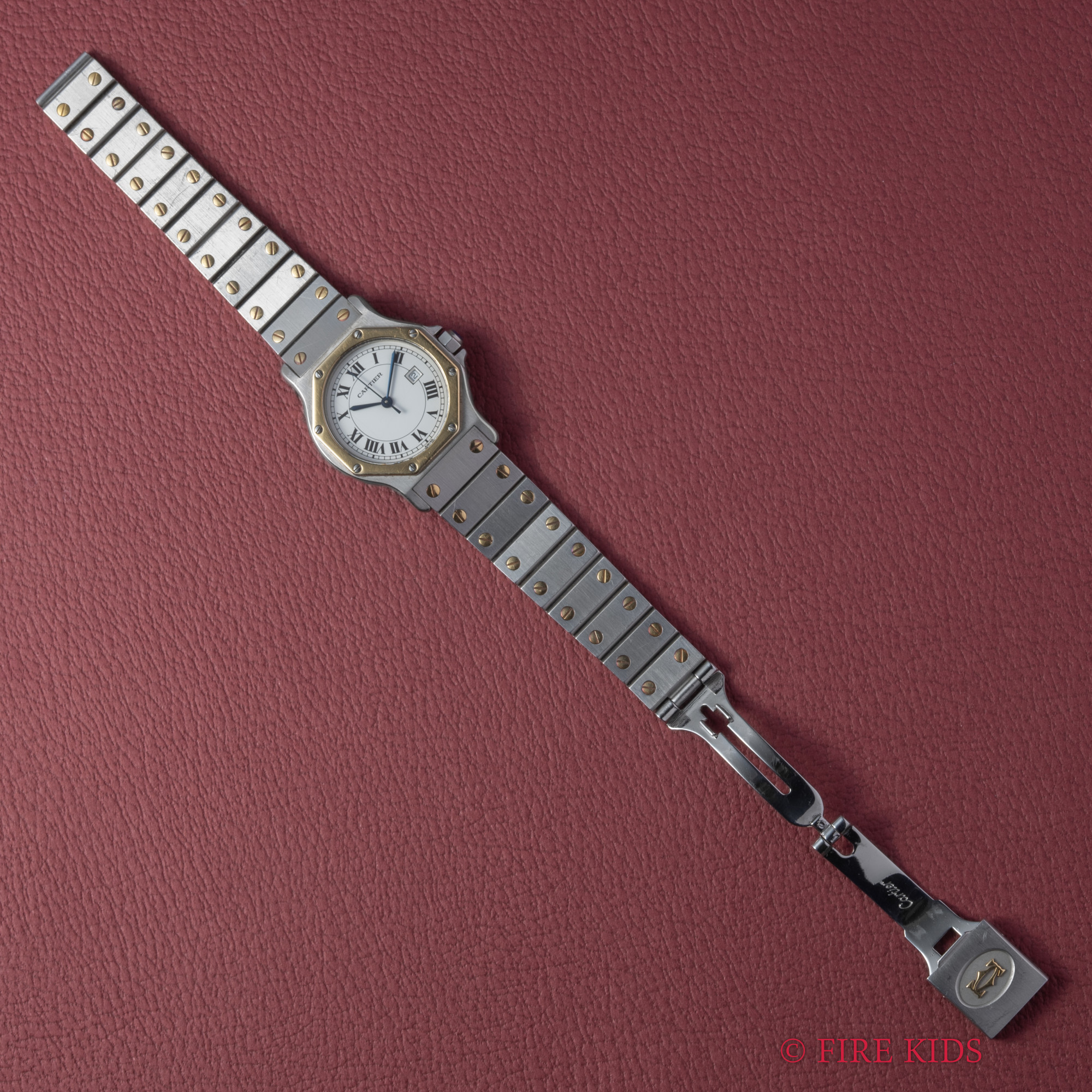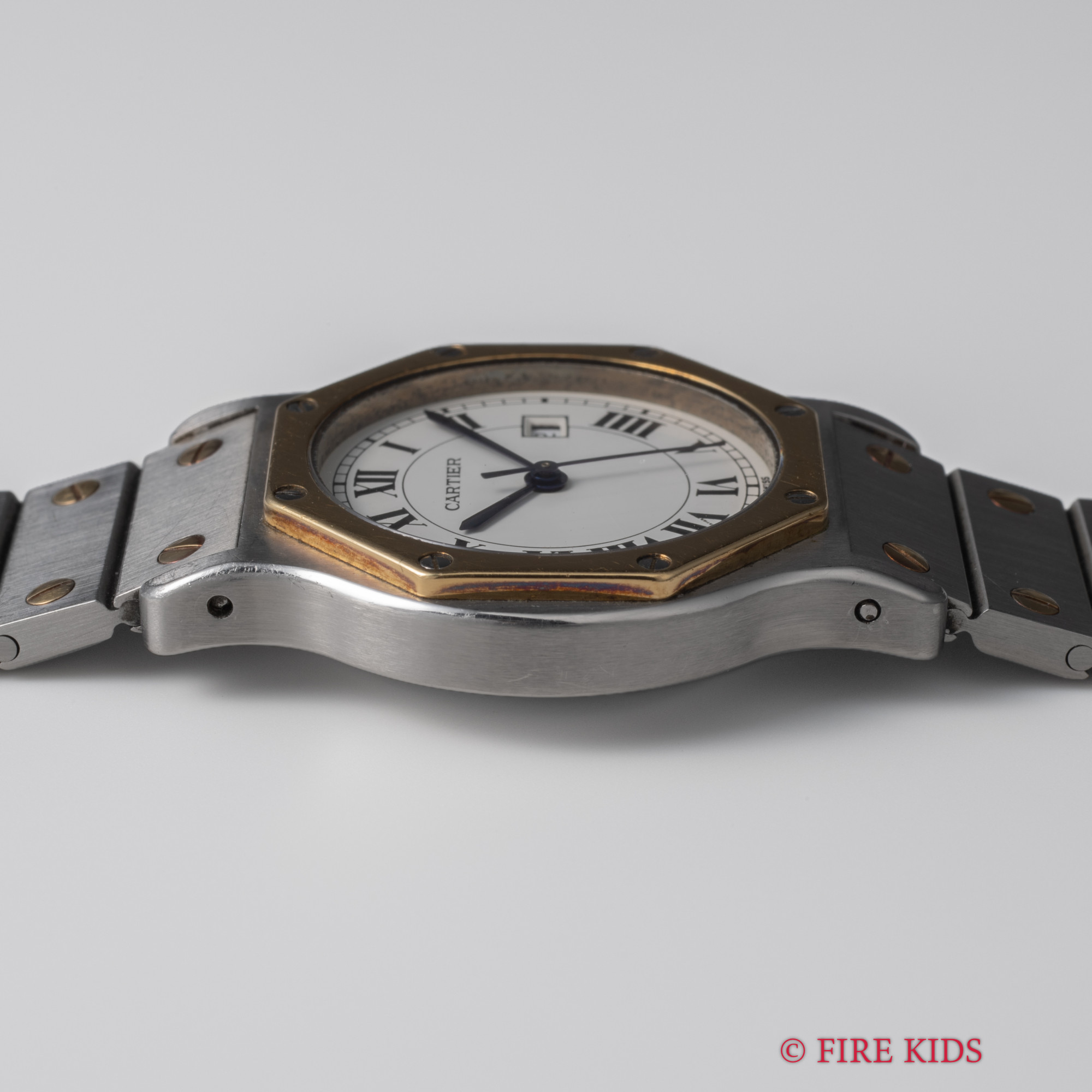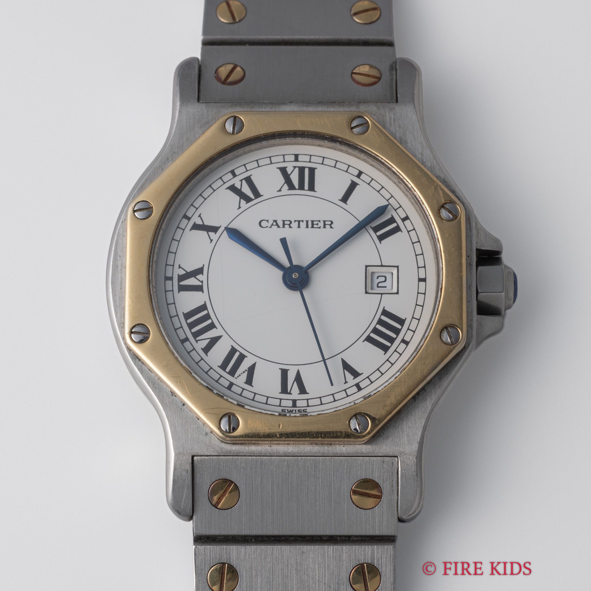 カルティエ サントス オクタゴン コンビ LM 1980年代製 自動巻き ホワイトローマンダイアル 純正コンビブレス付き Ref.2966