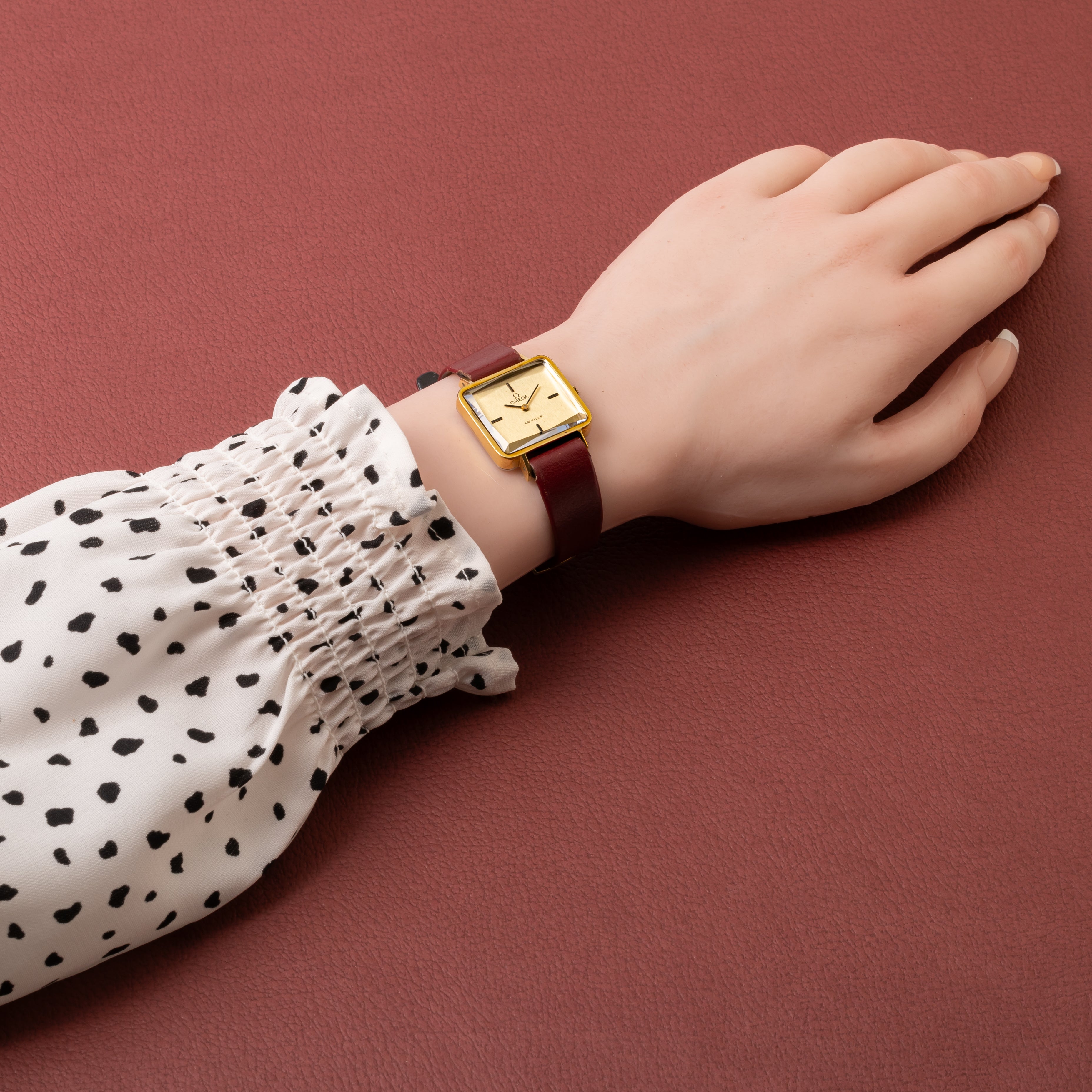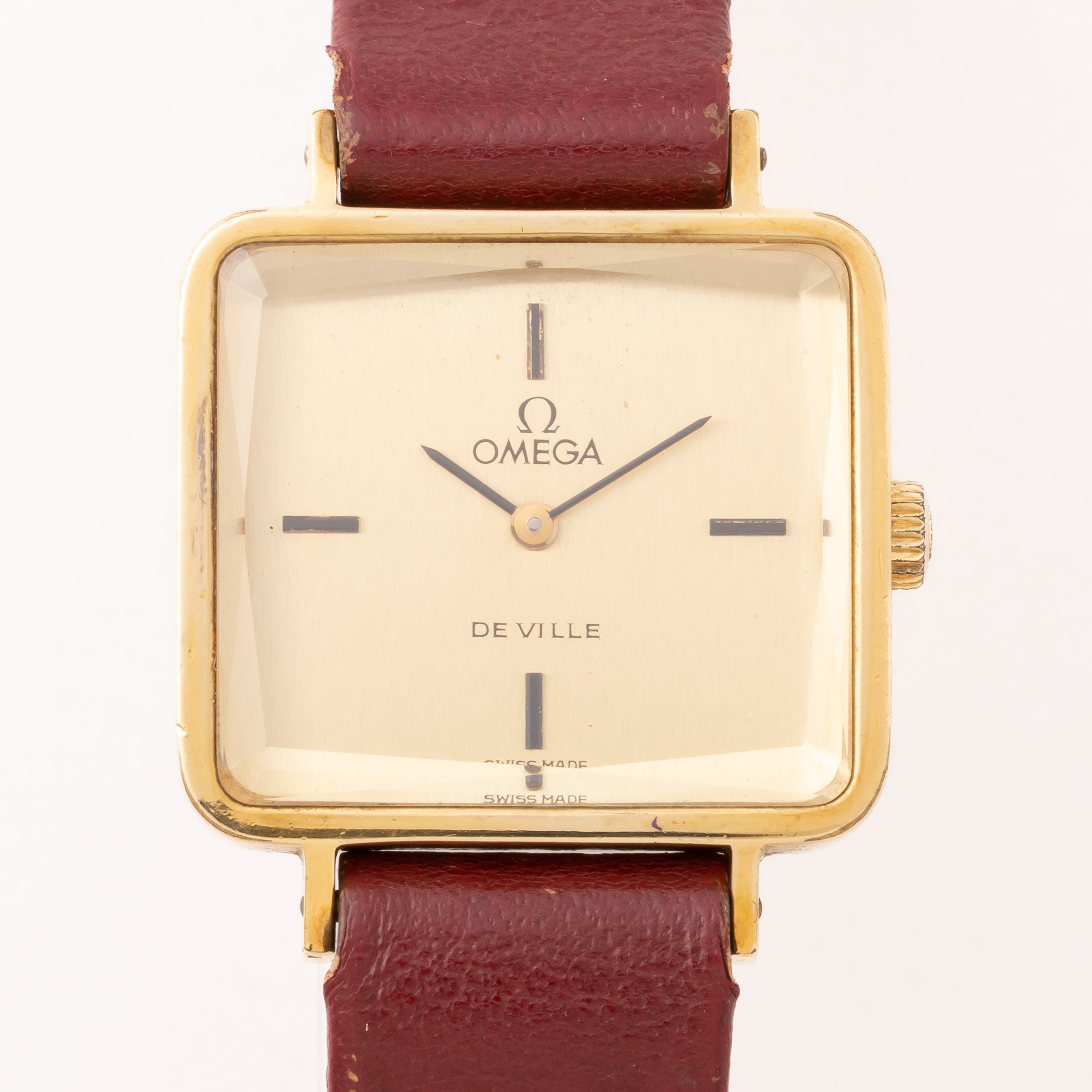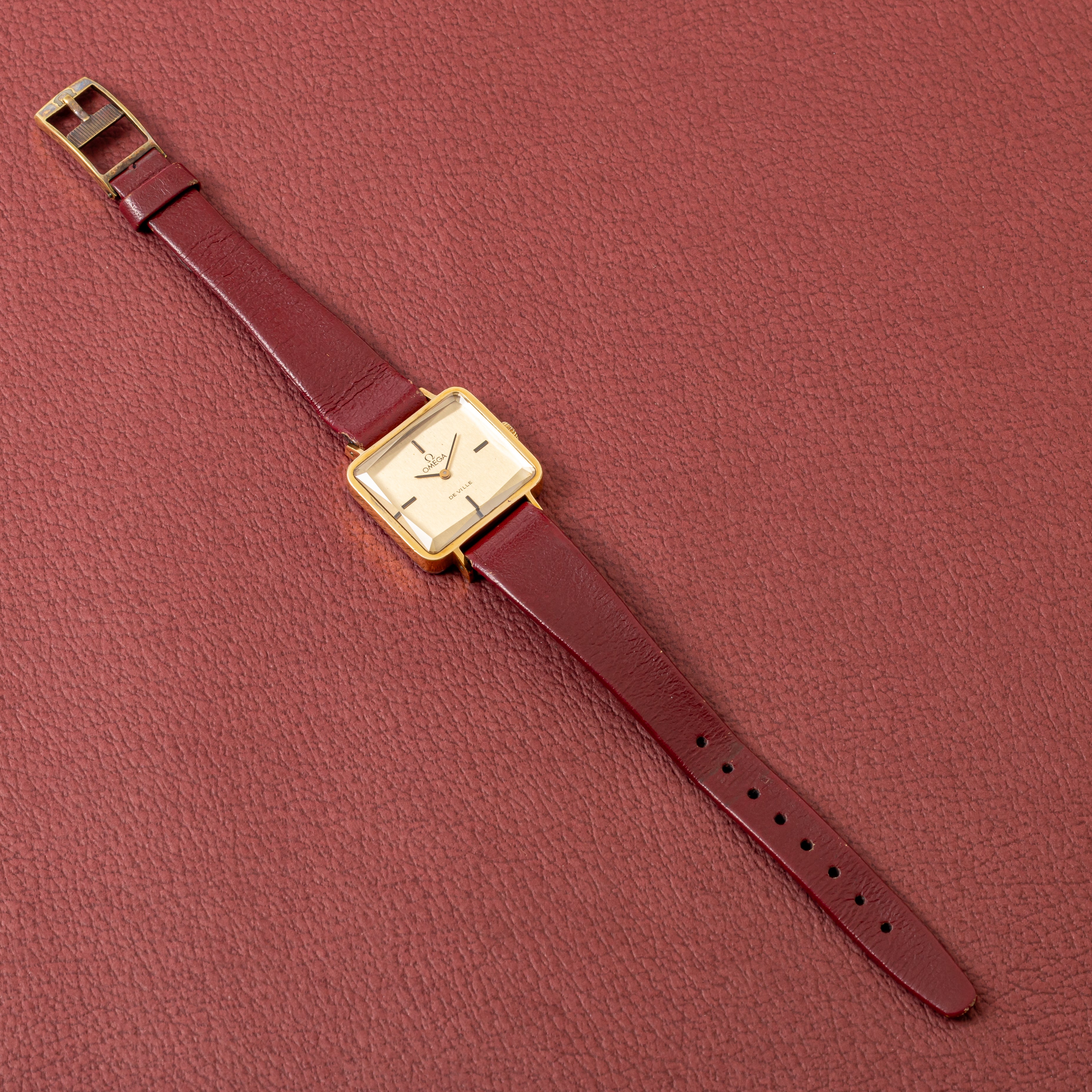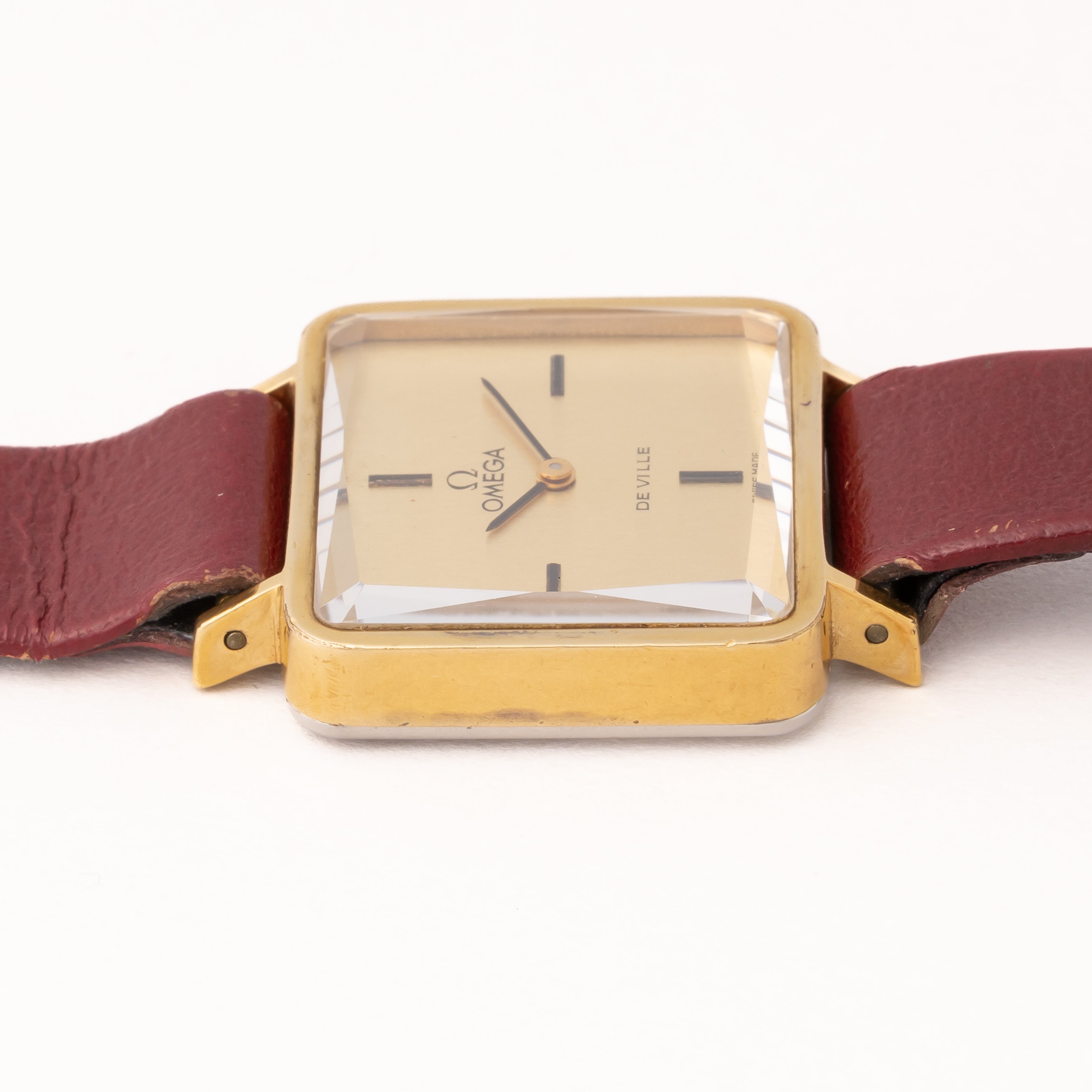 オメガ デ・ヴィル レディース スクエアGFケース 1970年代製 純正革ベルト付き