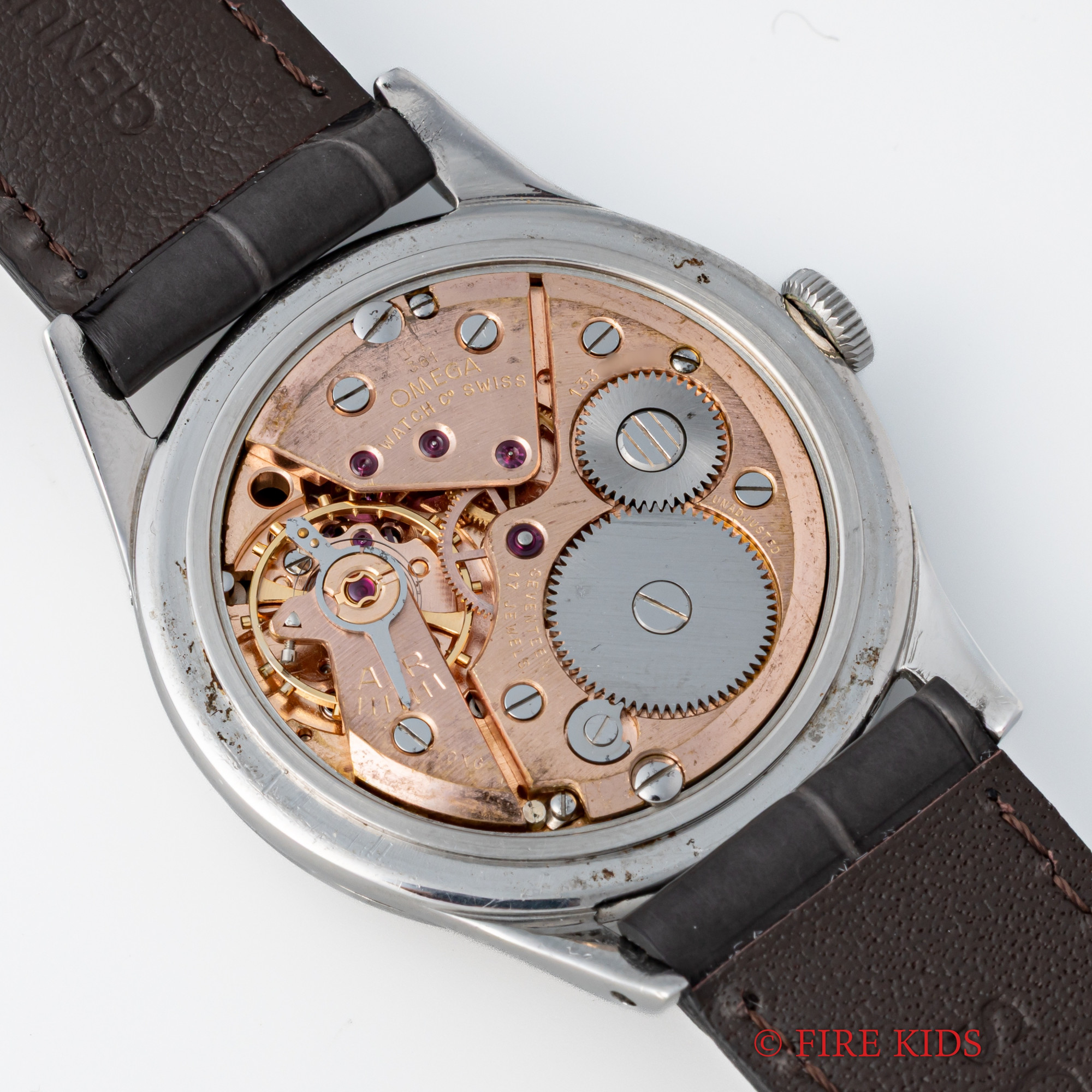 - ヴィンテージ時計の特性上、風防・パッキン・リューズ・バネ棒などの消耗部品は後年メンテナンス過程で交換されている場合がございます。オリジナル性を重視しておりますが、必要に応じて適切な部品にて調整されていますので、よりコレクション性重視のお求めのお客様は事前にご確認ください。