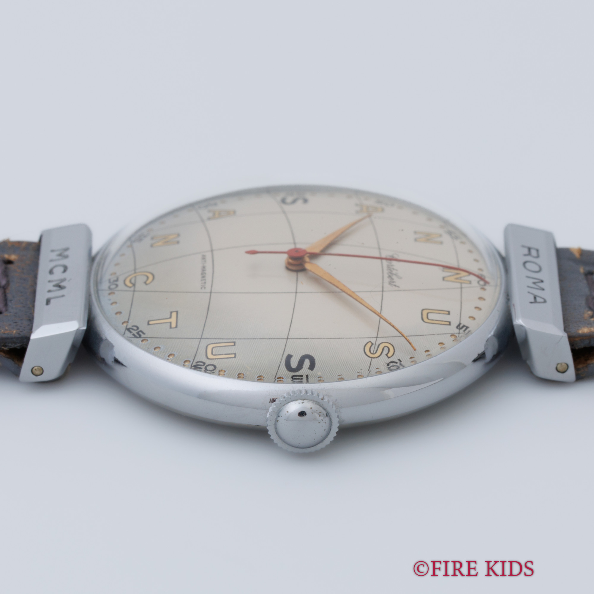 - ヴィンテージ時計の特性上、風防・パッキン・リューズ・バネ棒などの消耗部品は後年メンテナンス過程で交換されている場合がございます。オリジナル性を重視しておりますが、必要に応じて適切な部品にて調整されていますので、よりコレクション性重視のお求めのお客様は事前にご確認ください。