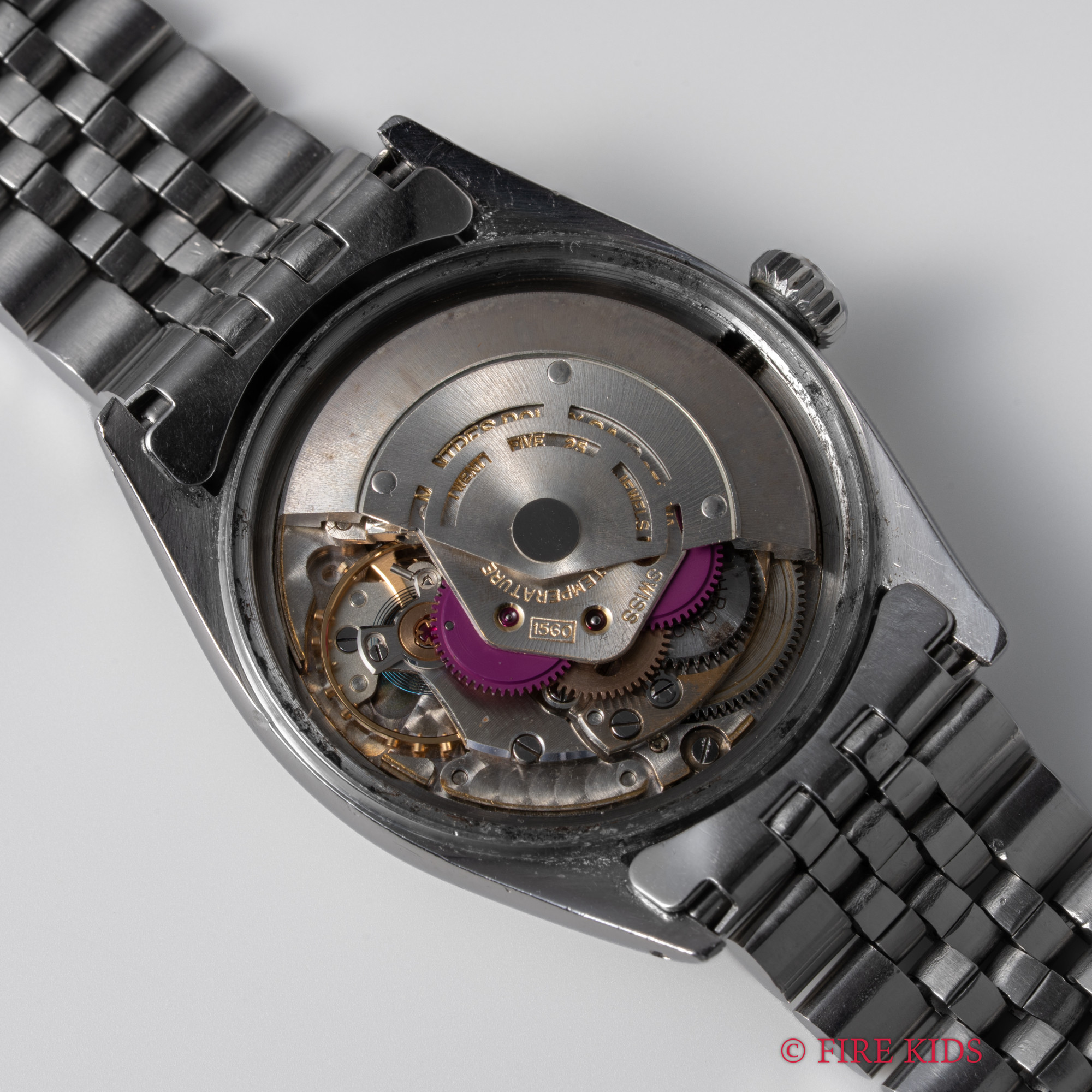 - ヴィンテージ時計の特性上、風防・パッキン・リューズ・バネ棒などの消耗部品は後年メンテナンス過程で交換されている場合がございます。オリジナル性を重視しておりますが、必要に応じて適切な部品にて調整されていますので、よりコレクション性重視のお求めのお客様は事前にご確認ください。