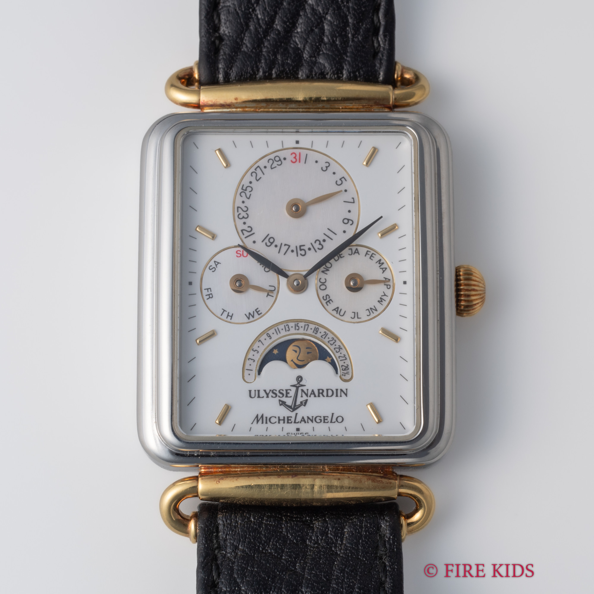 ユリスナルダン ミケランジェロ トリプルカレンダー ムーンフェイズ 1990年代製 Ref.164.44 自動巻 純正尾錠、革ベルト付
