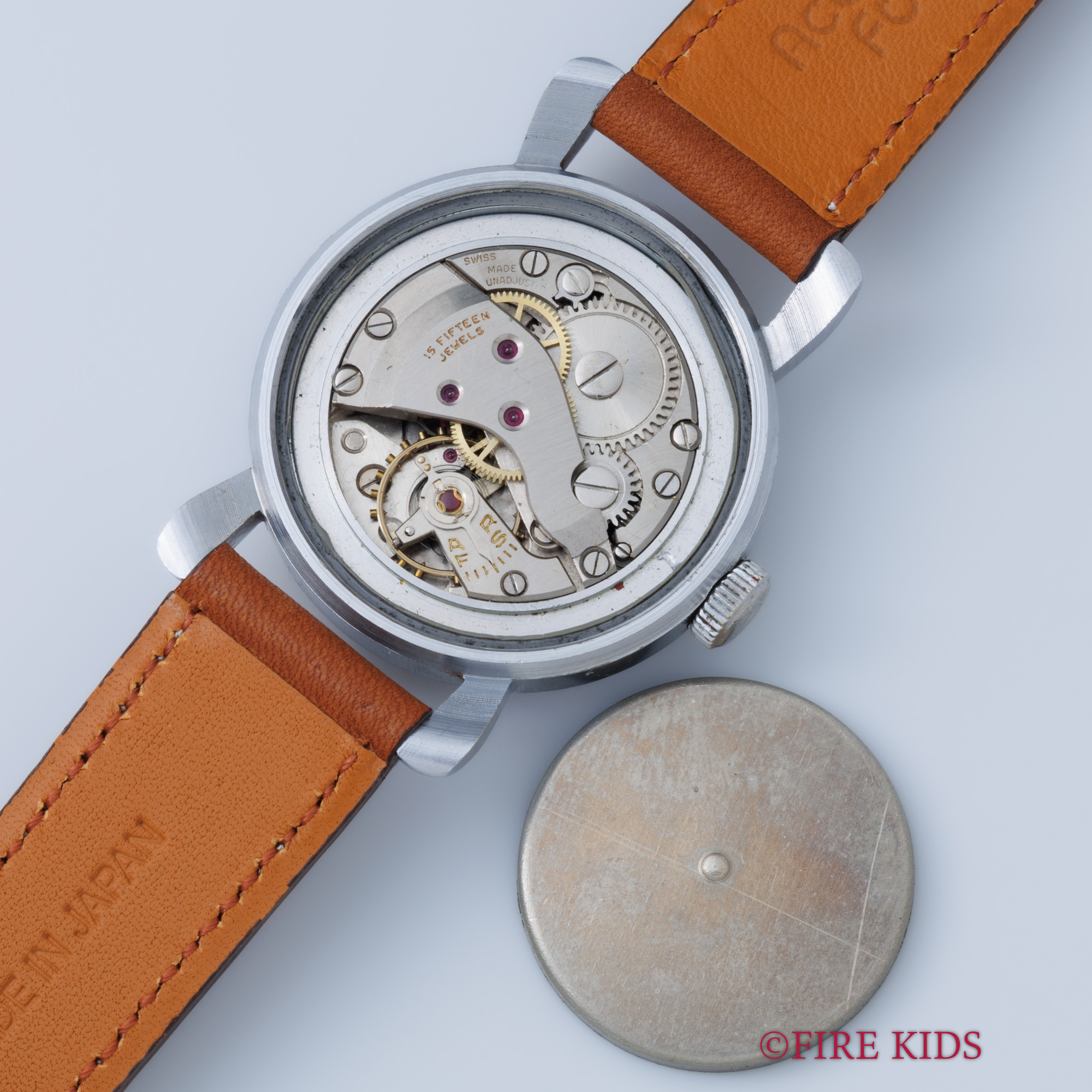 - ヴィンテージ時計の特性上、風防・パッキン・リューズ・バネ棒などの消耗部品は後年メンテナンス過程で交換されている場合がございます。オリジナル性を重視しておりますが、必要に応じて適切な部品にて調整されていますので、よりコレクション性重視のお求めのお客様は事前にご確認ください。