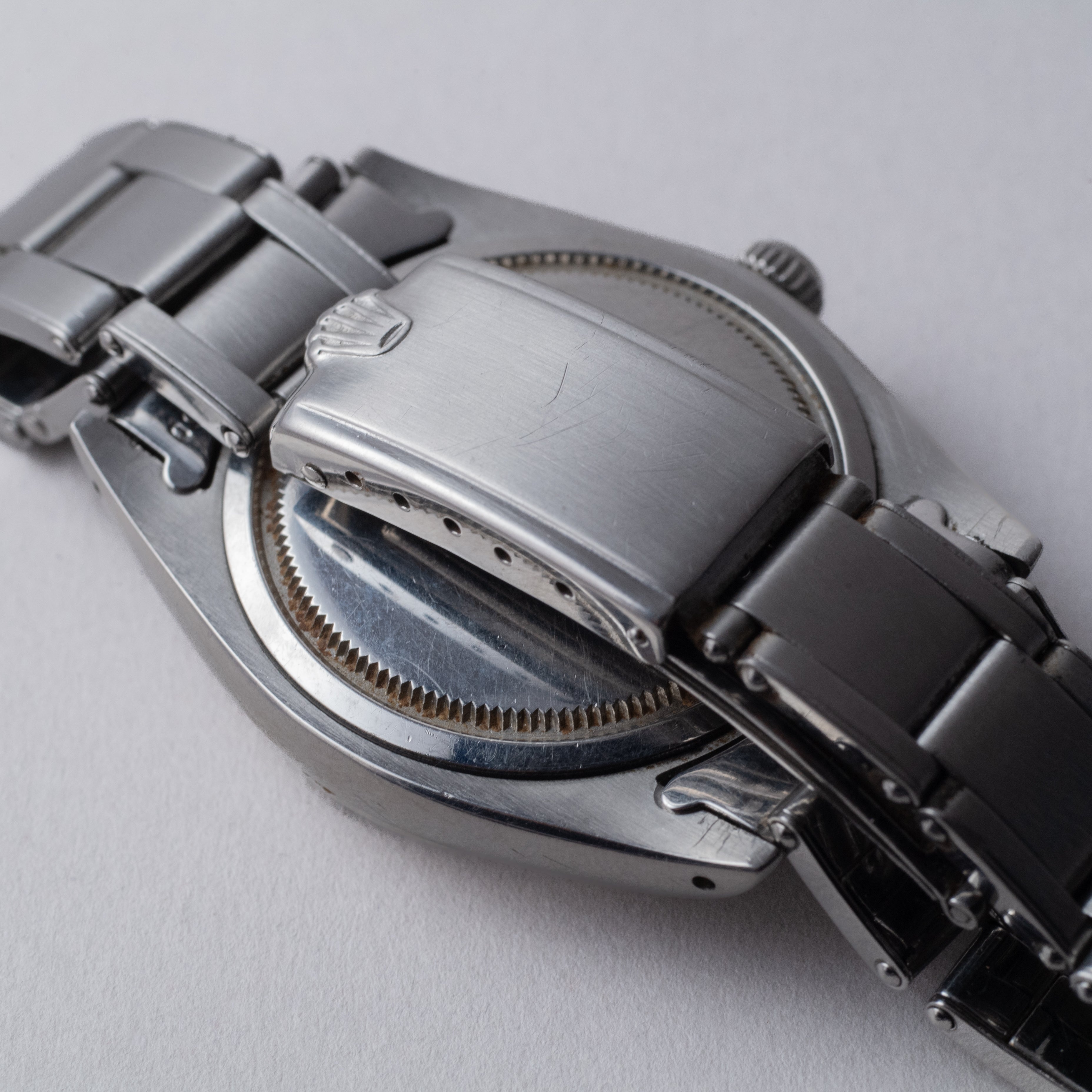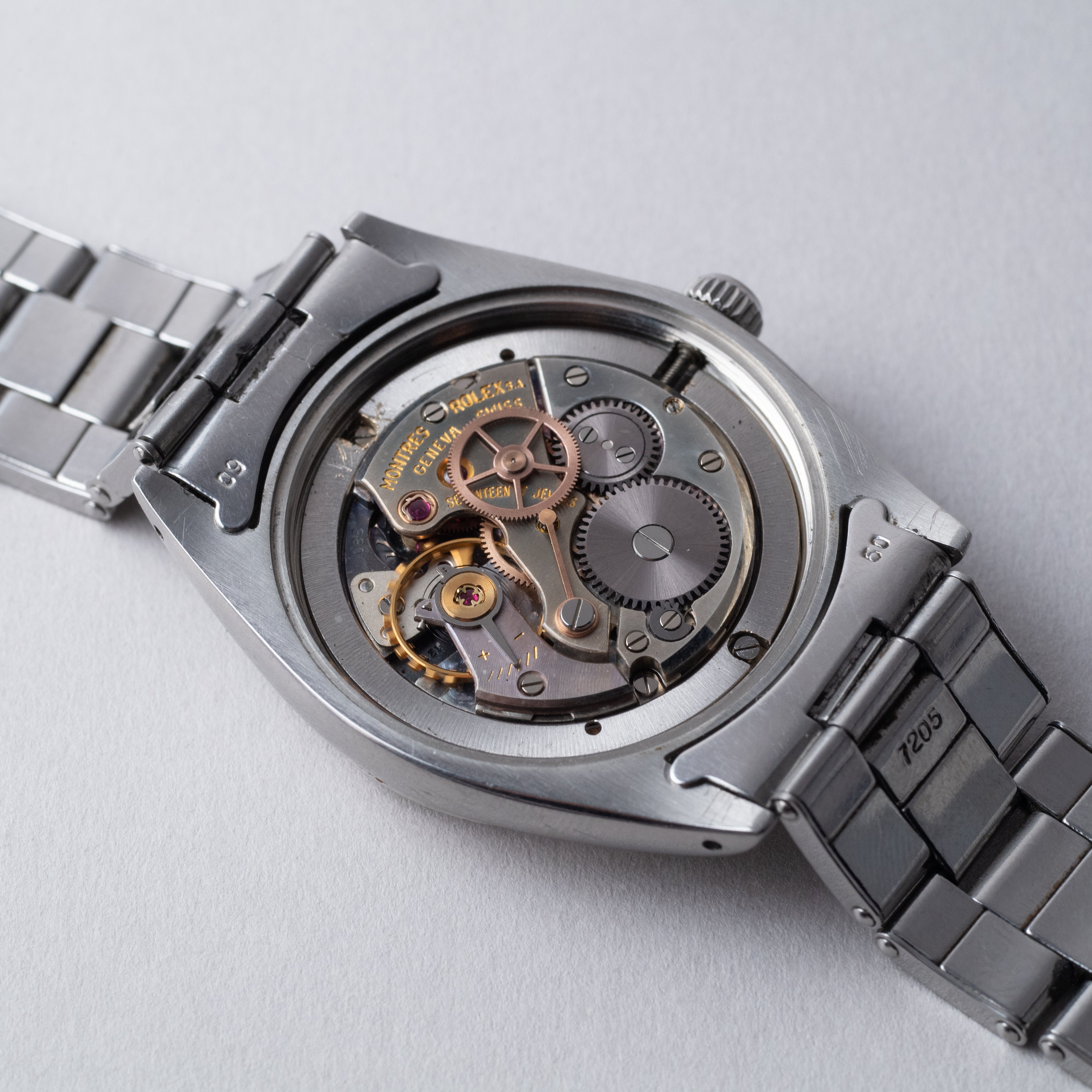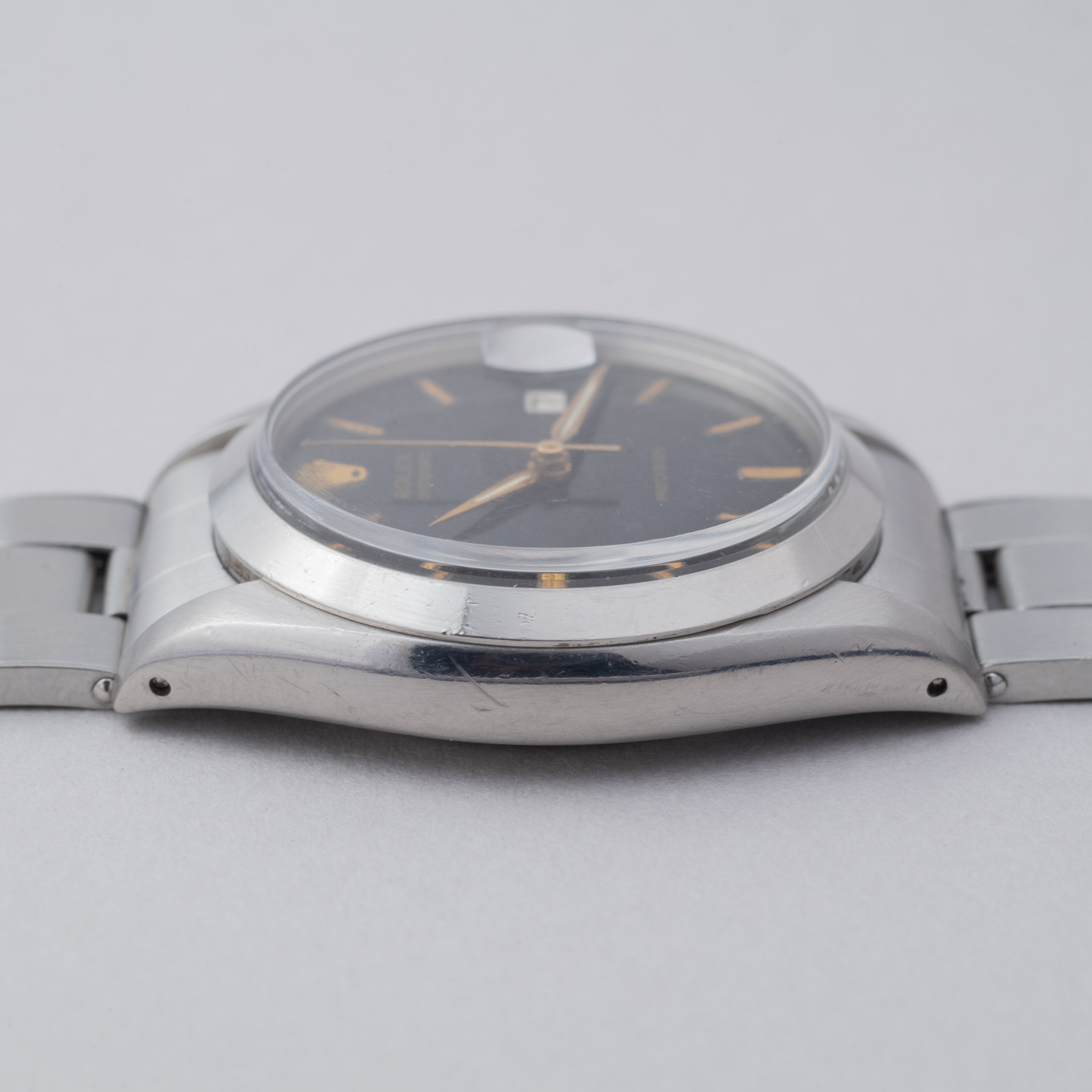 - ヴィンテージ時計の特性上、風防・パッキン・リューズ・バネ棒などの消耗部品は後年メンテナンス過程で交換されている場合がございます。オリジナル性を重視しておりますが、必要に応じて適切な部品にて調整されていますので、よりコレクション性重視のお求めのお客様は事前にご確認ください。