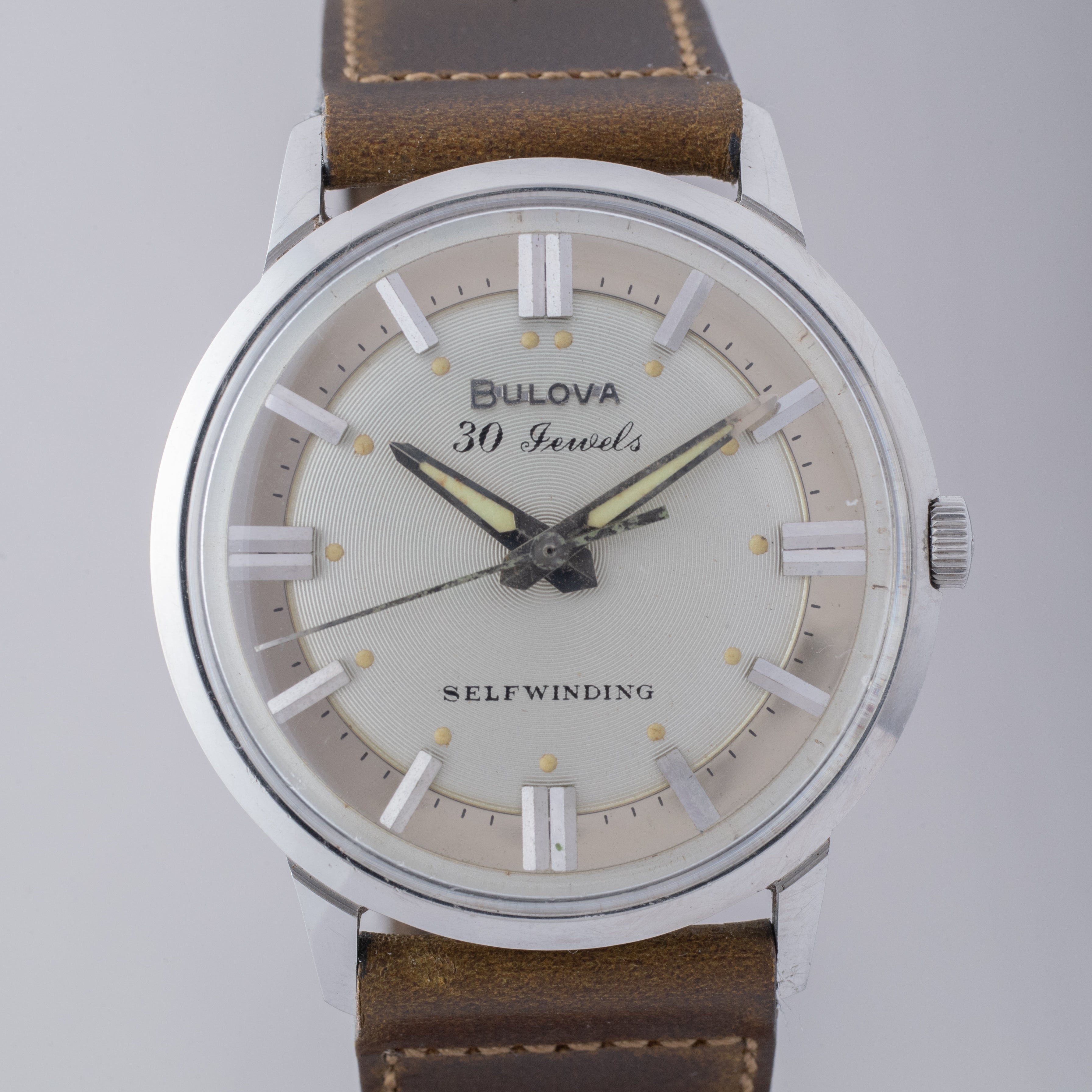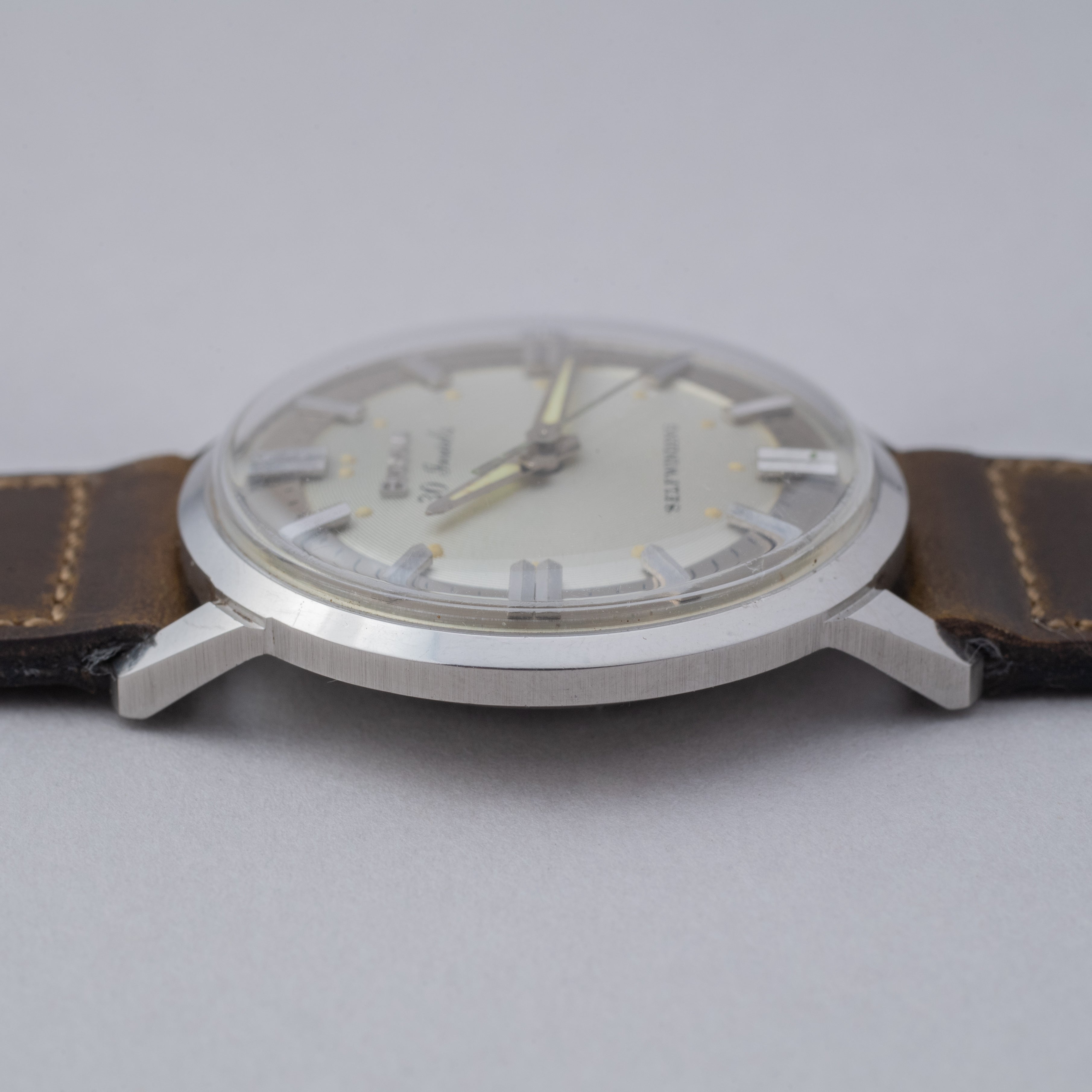- ヴィンテージ時計の特性上、風防・パッキン・リューズ・バネ棒などの消耗部品は後年メンテナンス過程で交換されている場合がございます。オリジナル性を重視しておりますが、必要に応じて適切な部品にて調整されていますので、よりコレクション性重視のお求めのお客様は事前にご確認ください。