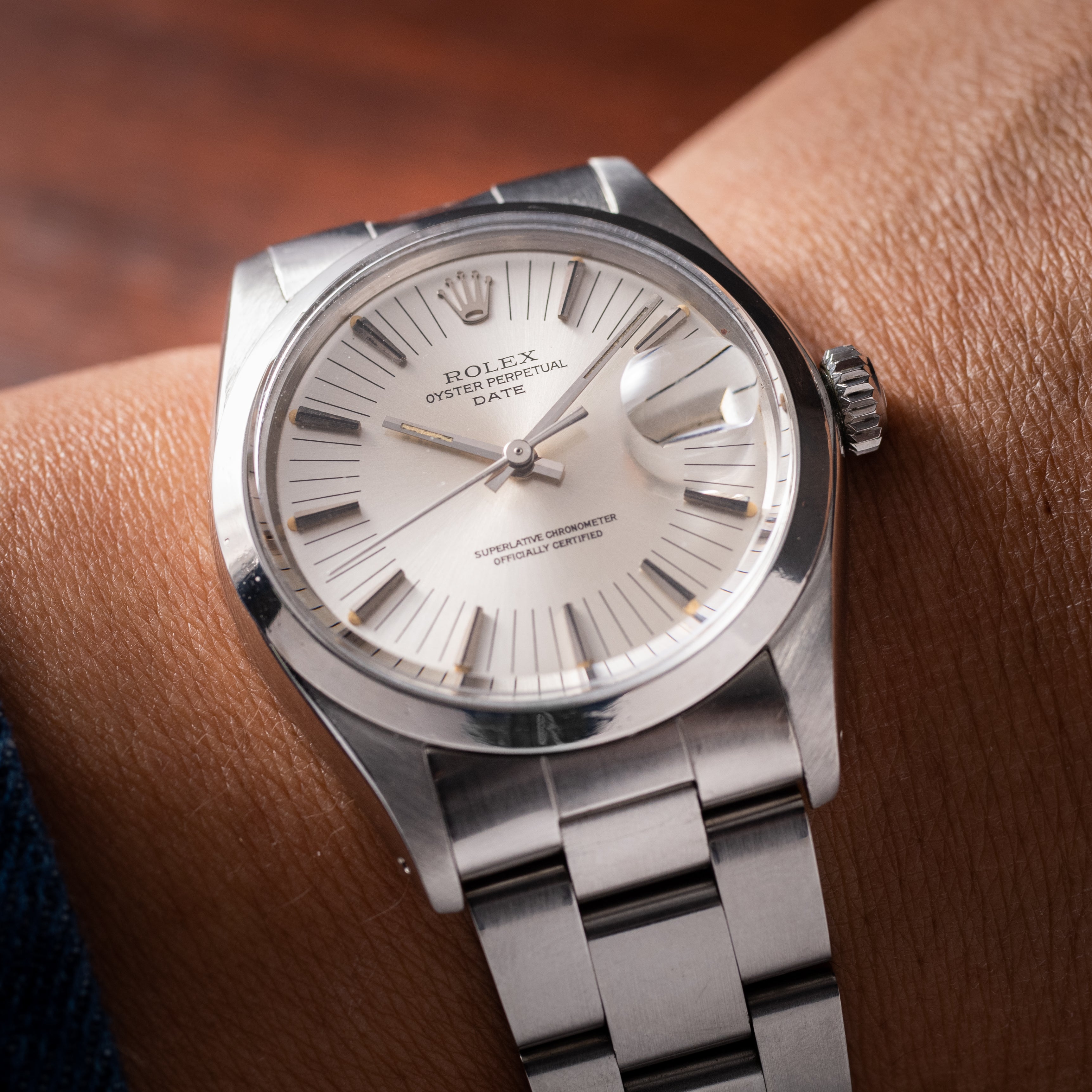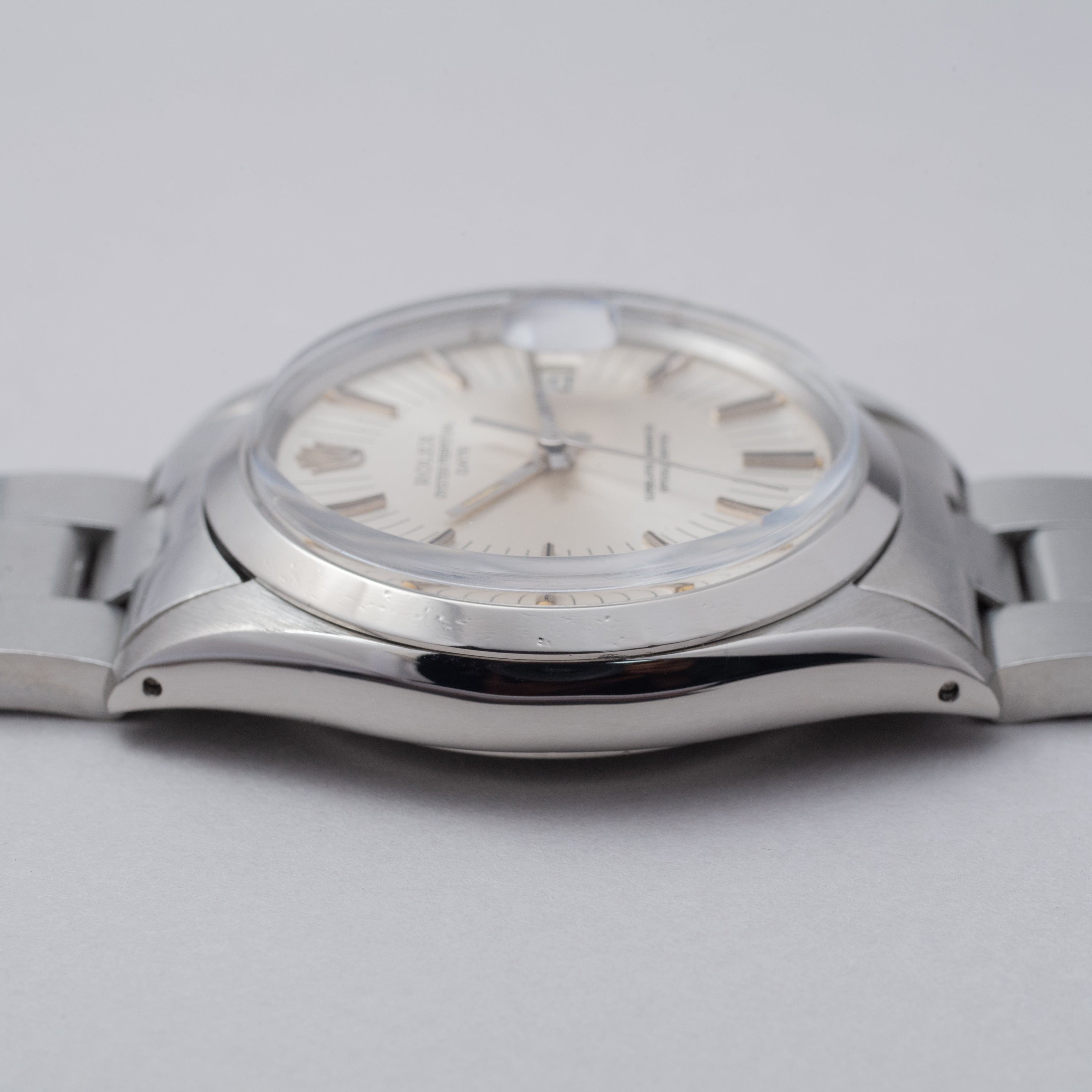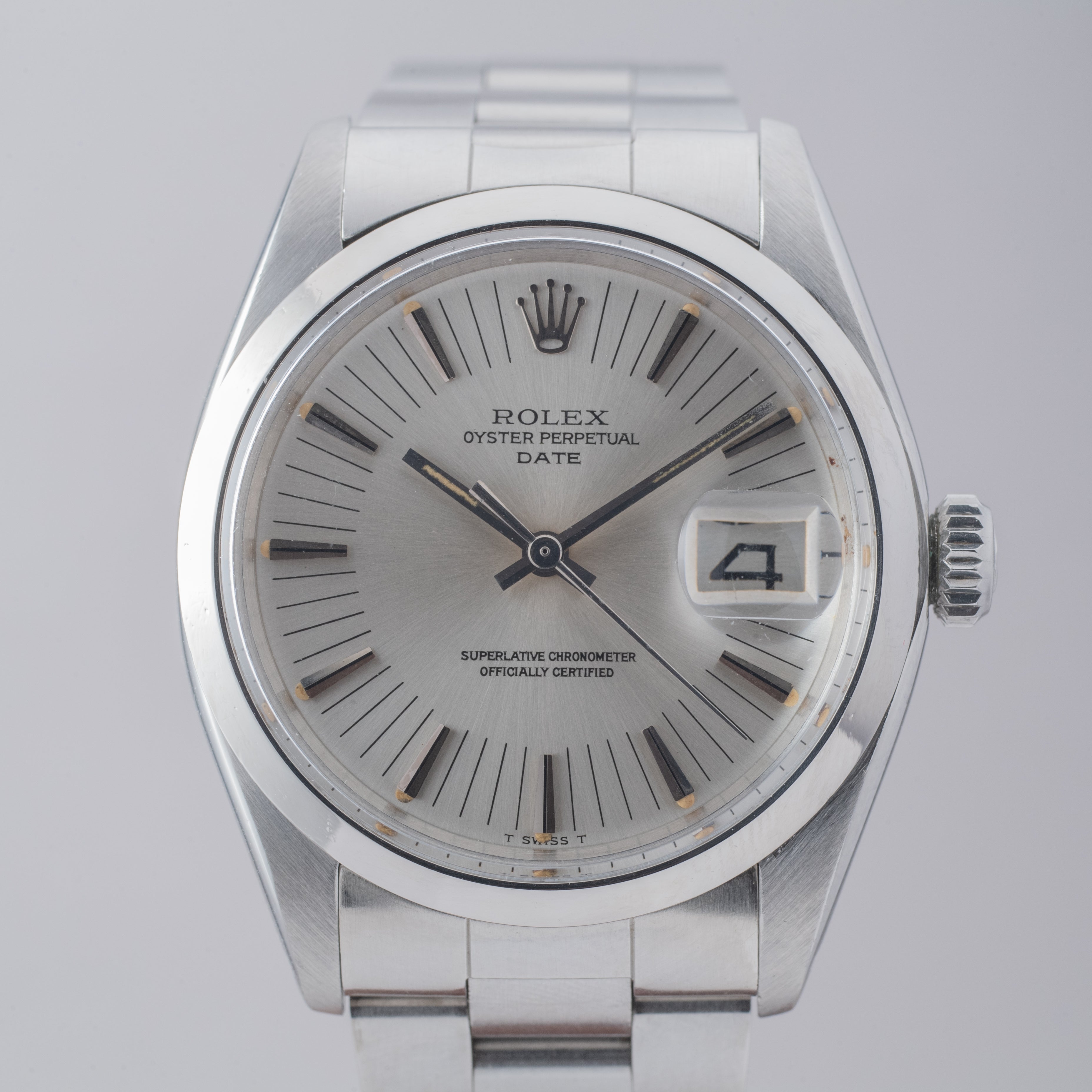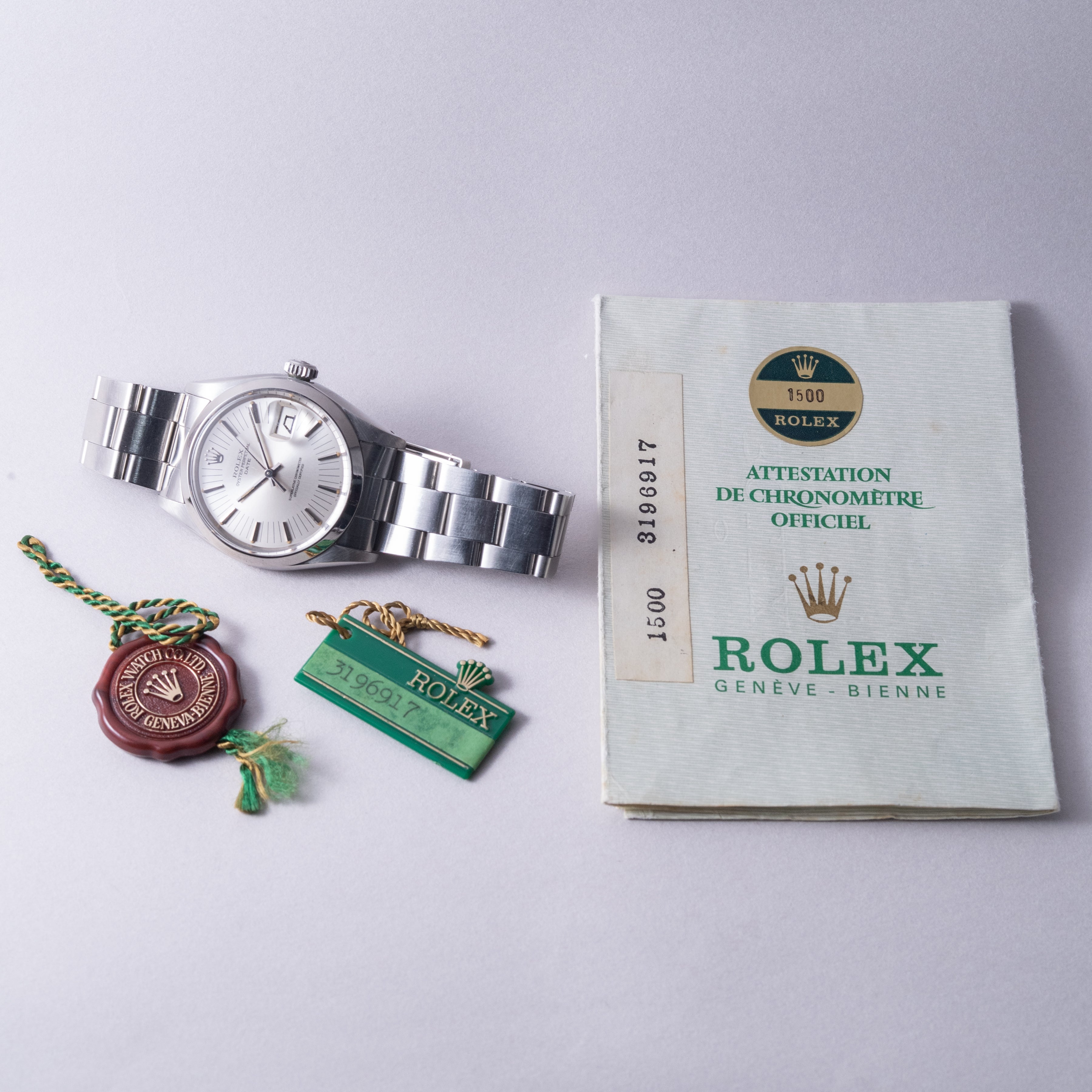 ロレックス 1972年製 オイスターパーペチュアルデイト Ref.1500 シルバーラジアルダイヤル ギャラ、タグ付き