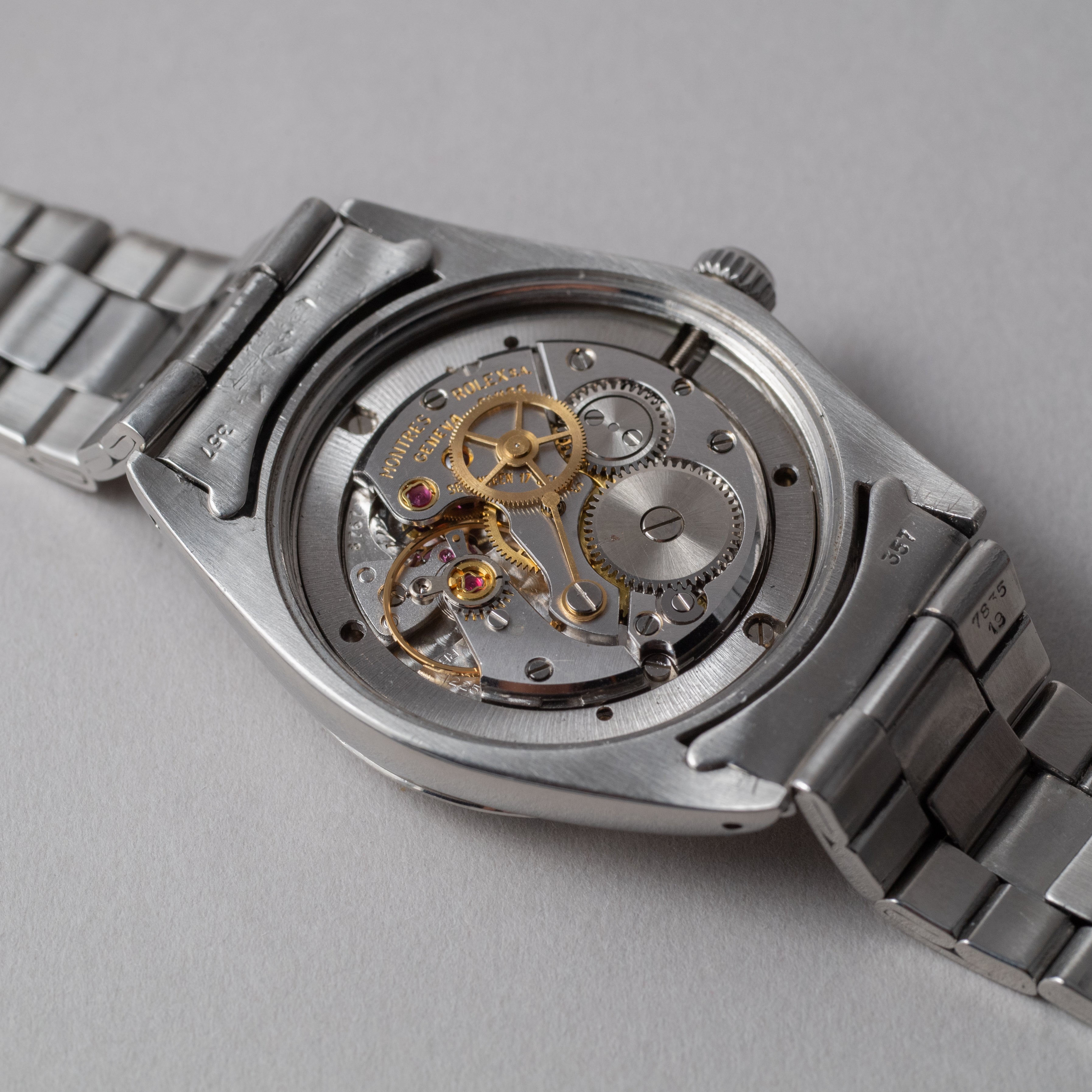 - ヴィンテージ時計の特性上、風防・パッキン・リューズ・バネ棒などの消耗部品は後年メンテナンス過程で交換されている場合がございます。オリジナル性を重視しておりますが、必要に応じて適切な部品にて調整されていますので、よりコレクション性重視のお求めのお客様は事前にご確認ください。