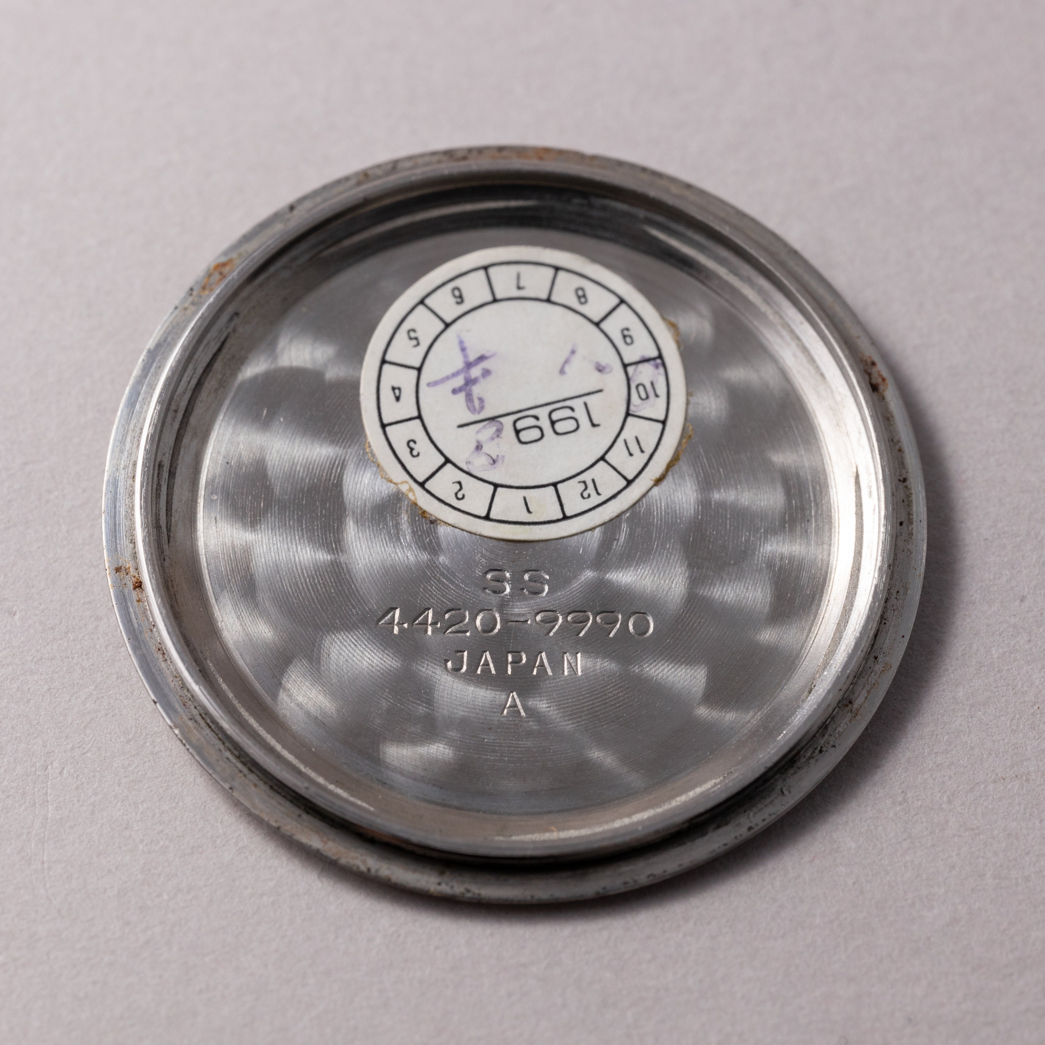 - ヴィンテージ時計の特性上、風防・パッキン・リューズ・バネ棒などの消耗部品は後年メンテナンス過程で交換されている場合がございます。オリジナル性を重視しておりますが、必要に応じて適切な部品にて調整されていますので、よりコレクション性重視のお求めのお客様は事前にご確認ください。