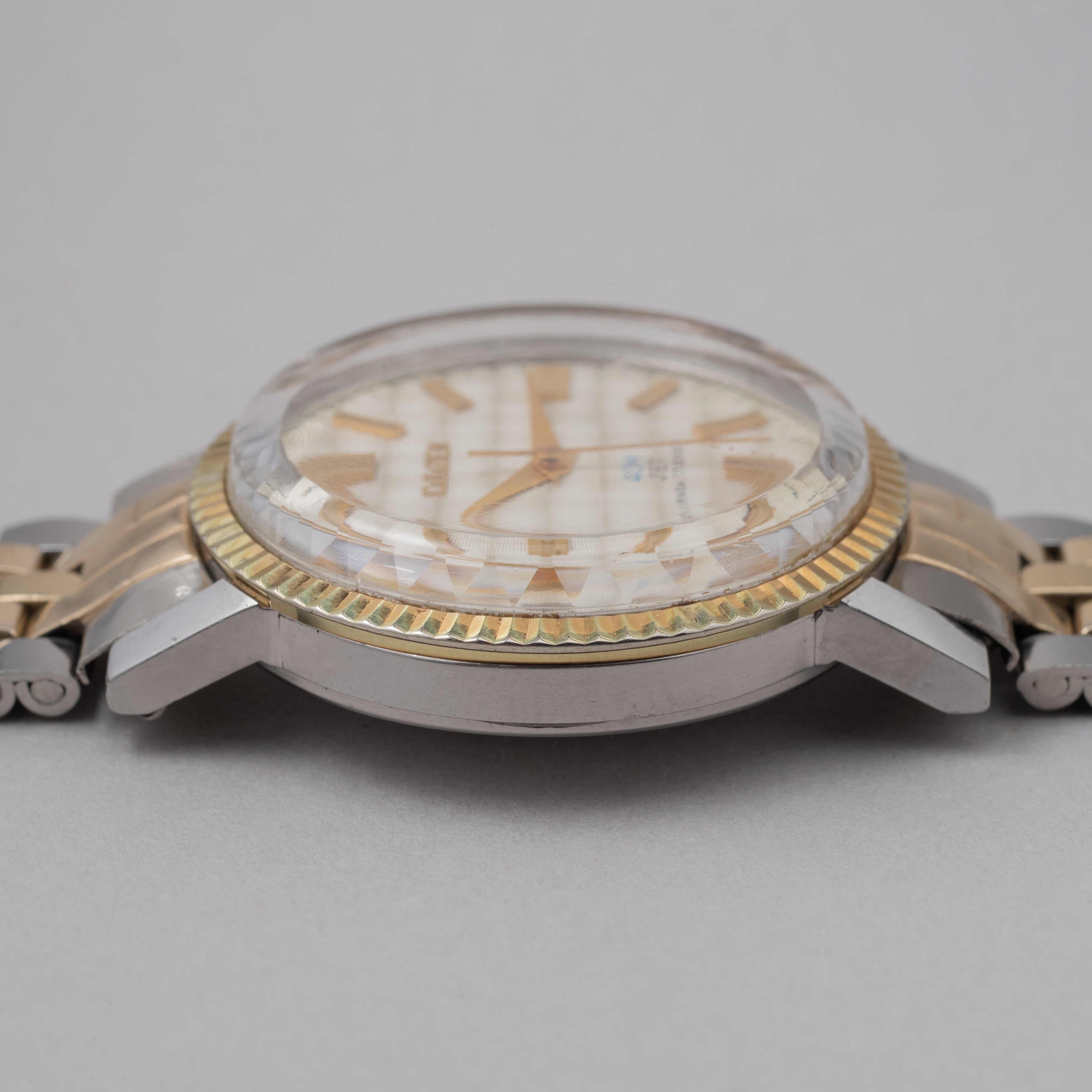 - ヴィンテージ時計の特性上、風防・パッキン・リューズ・バネ棒などの消耗部品は後年メンテナンス過程で交換されている場合がございます。オリジナル性を重視しておりますが、必要に応じて適切な部品にて調整されていますので、よりコレクション性重視のお求めのお客様は事前にご確認ください。