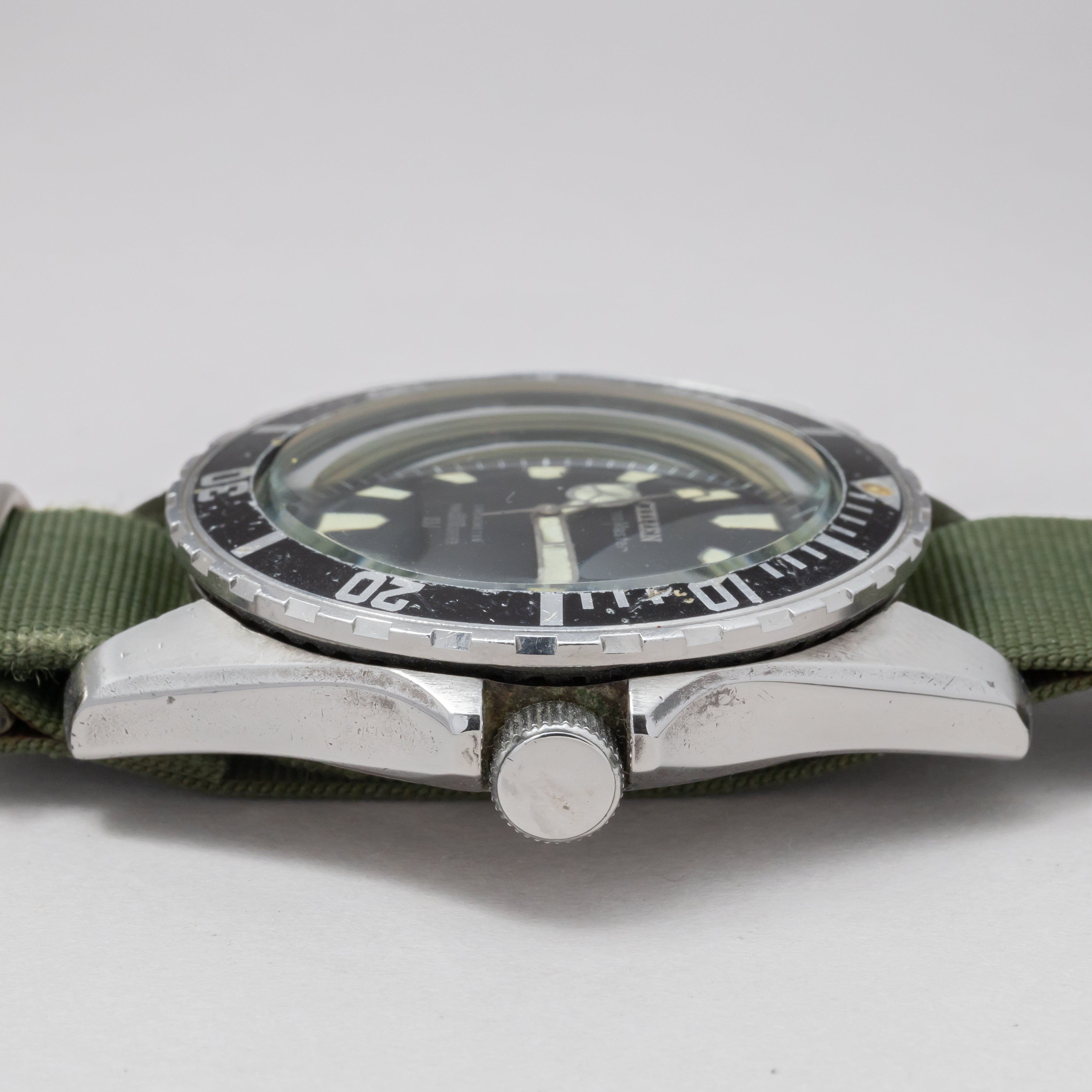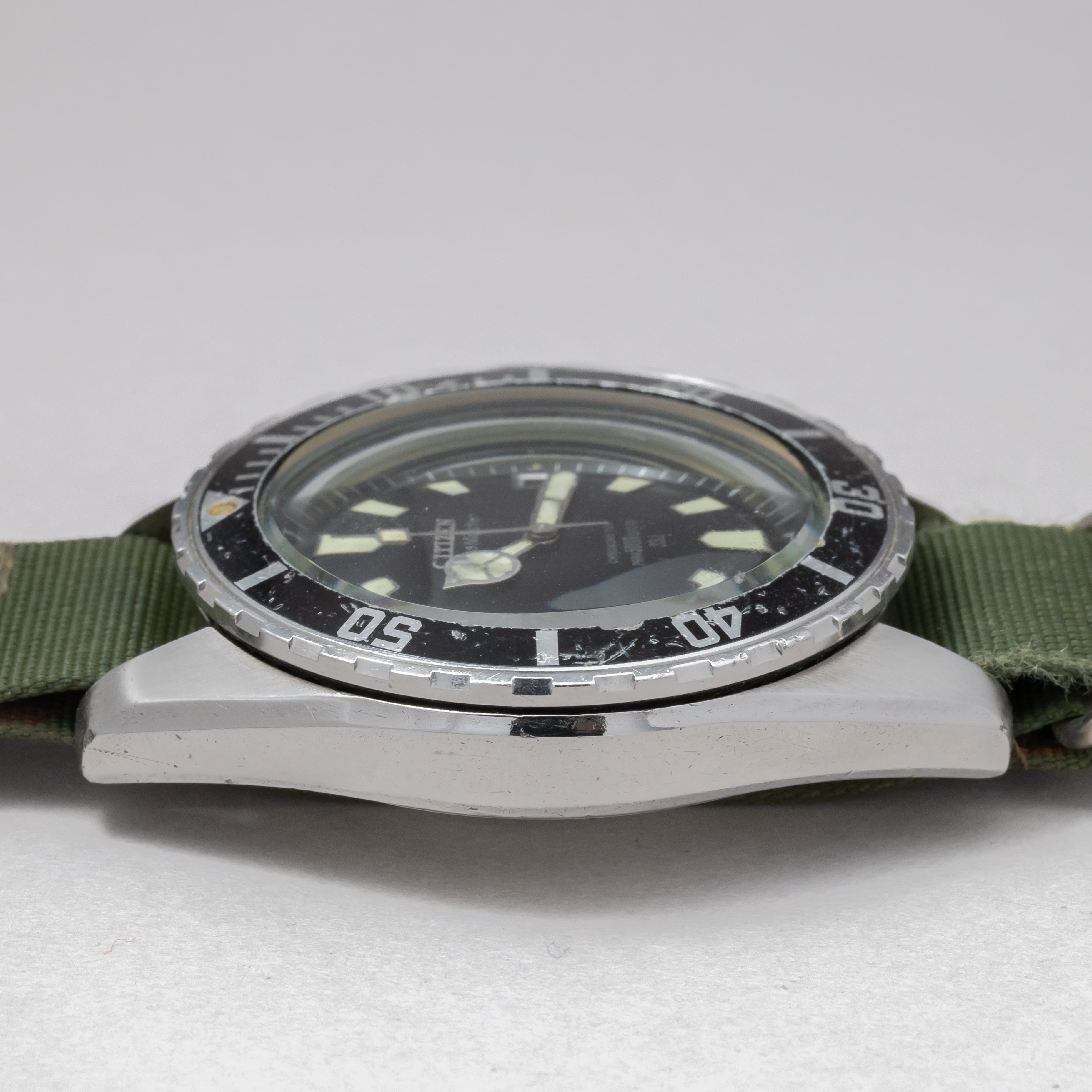 - ヴィンテージ時計の特性上、風防・パッキン・リューズ・バネ棒などの消耗部品は後年メンテナンス過程で交換されている場合がございます。オリジナル性を重視しておりますが、必要に応じて適切な部品にて調整されていますので、よりコレクション性重視のお求めのお客様は事前にご確認ください。