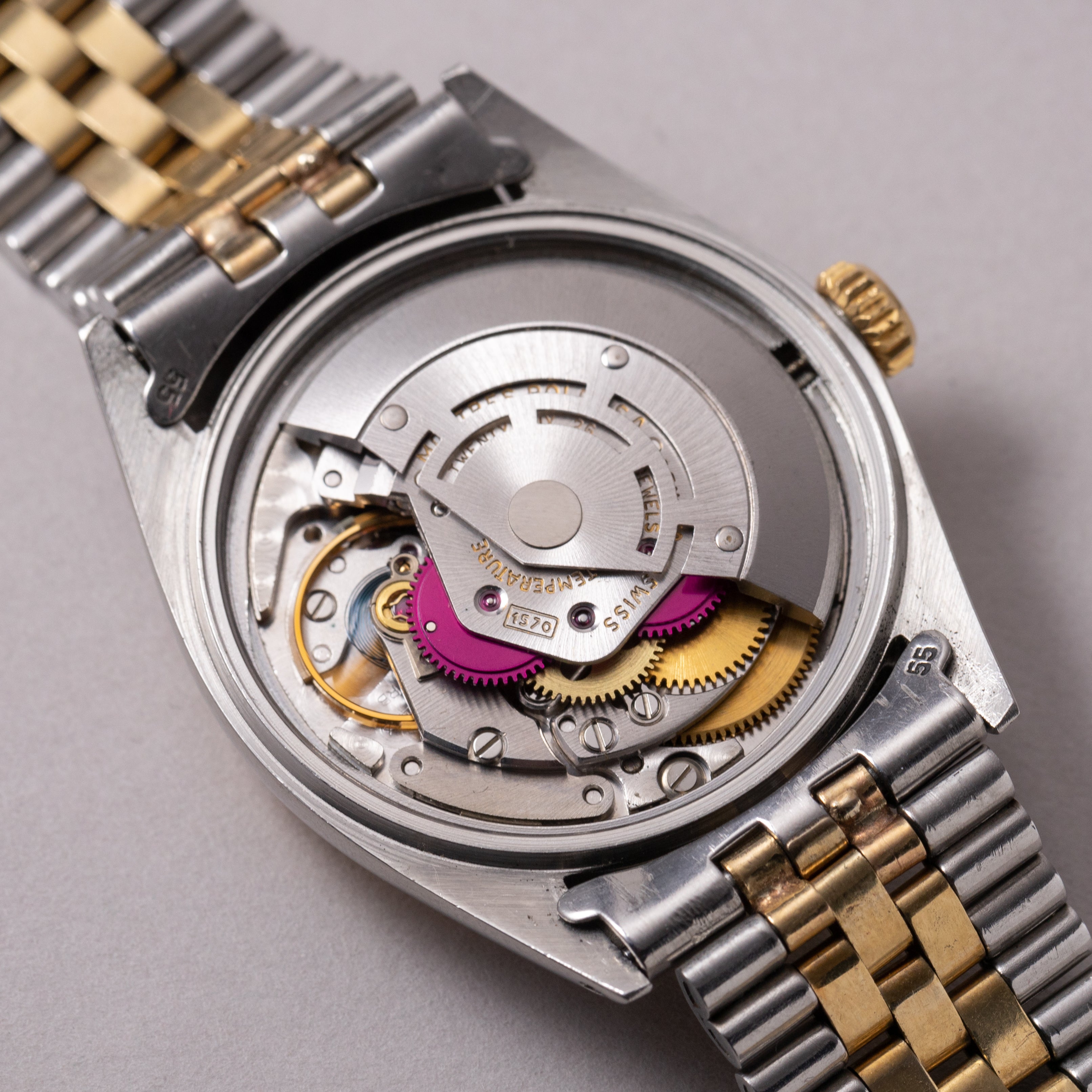 - ヴィンテージ時計の特性上、風防・パッキン・リューズ・バネ棒などの消耗部品は後年メンテナンス過程で交換されている場合がございます。オリジナル性を重視しておりますが、必要に応じて適切な部品にて調整されていますので、よりコレクション性重視のお求めのお客様は事前にご確認ください。