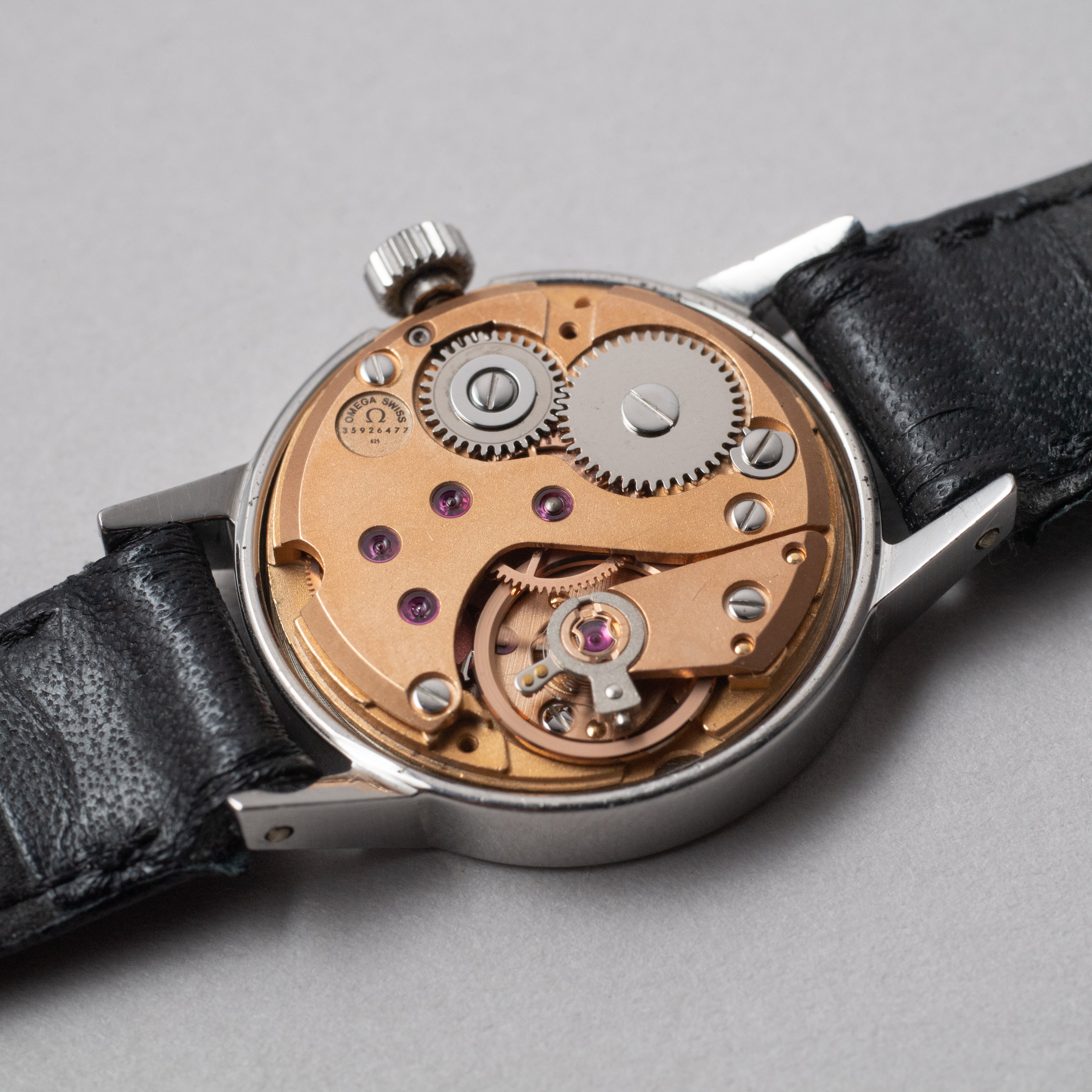 - ヴィンテージ時計の特性上、風防・パッキン・リューズ・バネ棒などの消耗部品は後年メンテナンス過程で交換されている場合がございます。オリジナル性を重視しておりますが、必要に応じて適切な部品にて調整されていますので、よりコレクション性重視のお求めのお客様は事前にご確認ください。