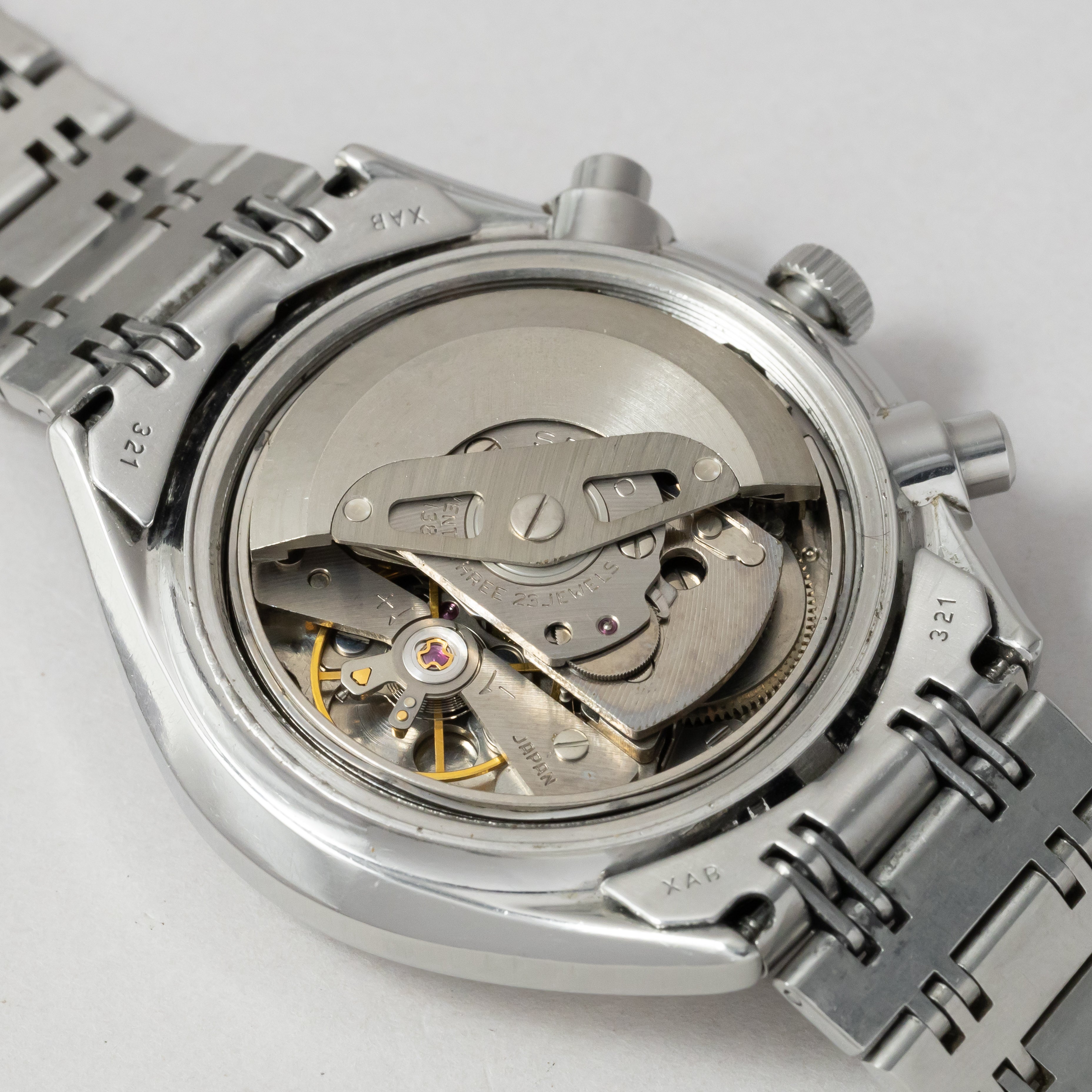 - ヴィンテージ時計の特性上、風防・パッキン・リューズ・バネ棒などの消耗部品は後年メンテナンス過程で交換されている場合がございます。オリジナル性を重視しておりますが、必要に応じて適切な部品にて調整されていますので、よりコレクション性重視のお求めのお客様は事前にご確認ください。