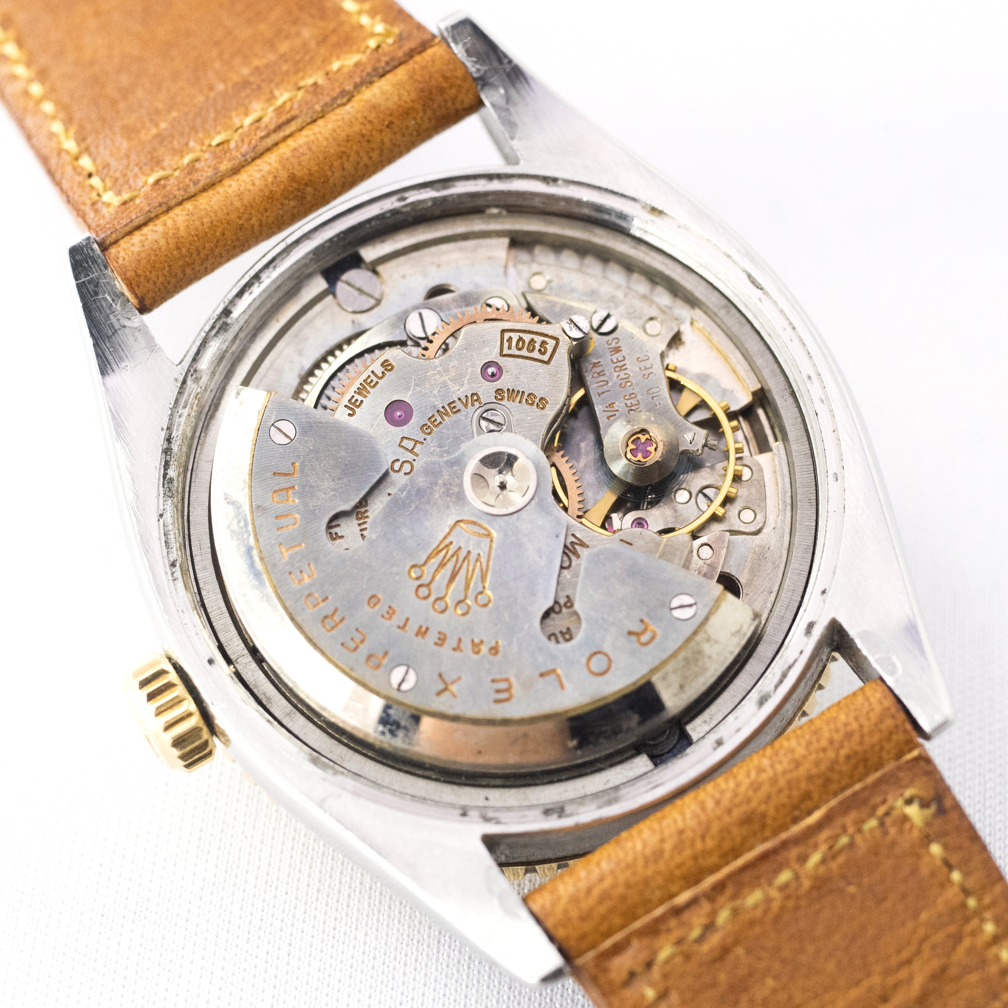 - ヴィンテージ時計の特性上、風防・パッキン・リューズ・バネ棒などの消耗部品は後年メンテナンス過程で交換されている場合がございます。オリジナル性を重視しておりますが、必要に応じて適切な部品にて調整されていますので、よりコレクション性重視のお求めのお客様は事前にご確認ください。