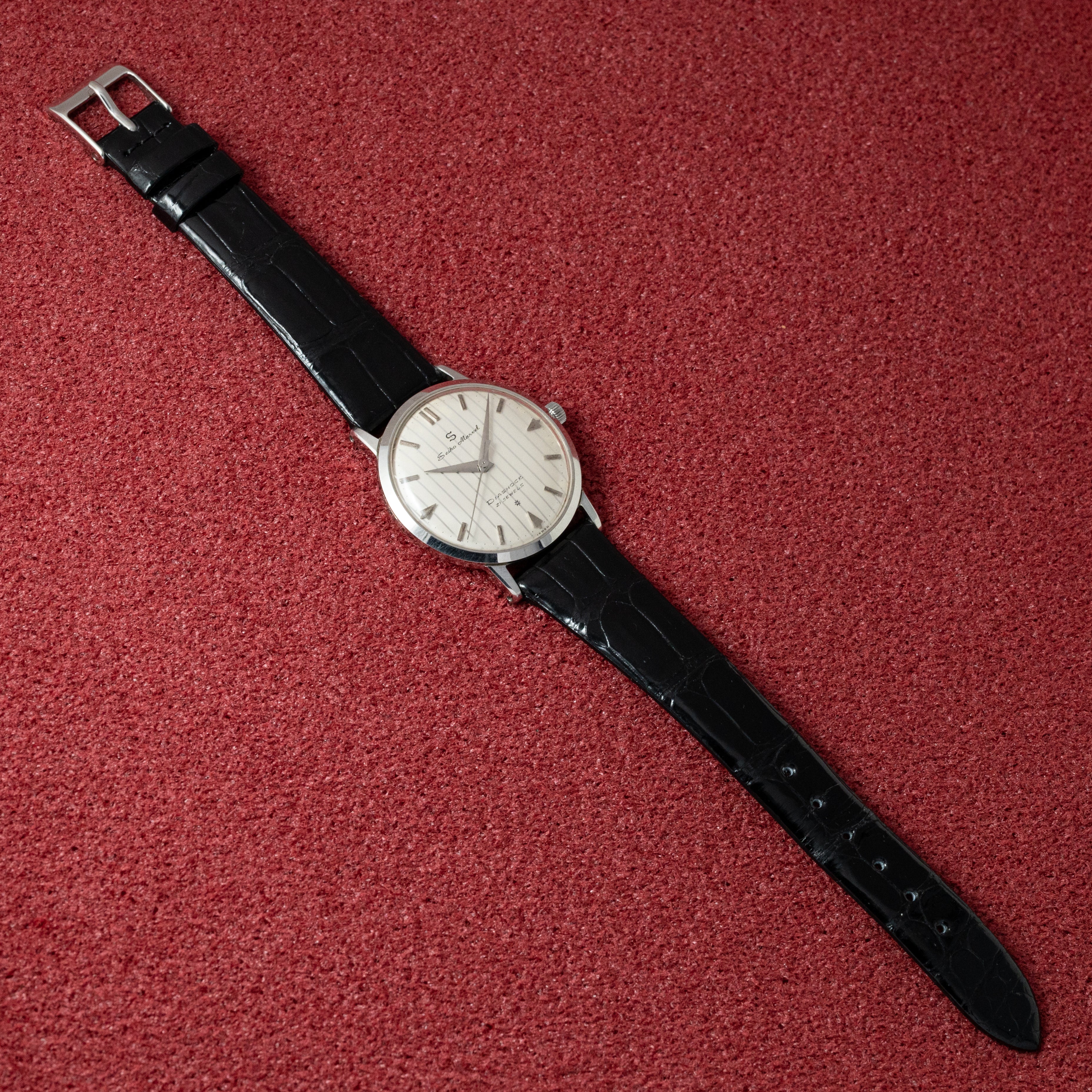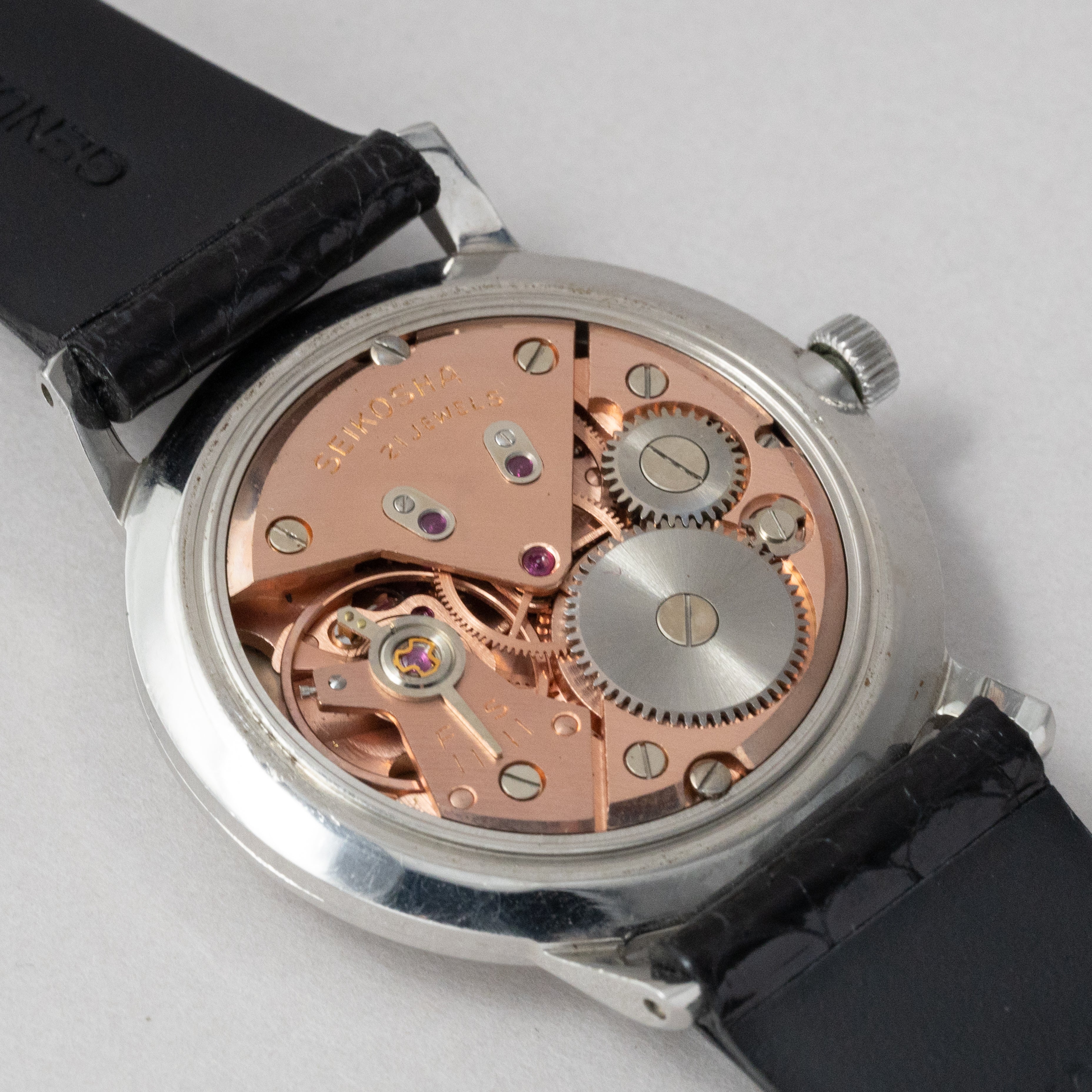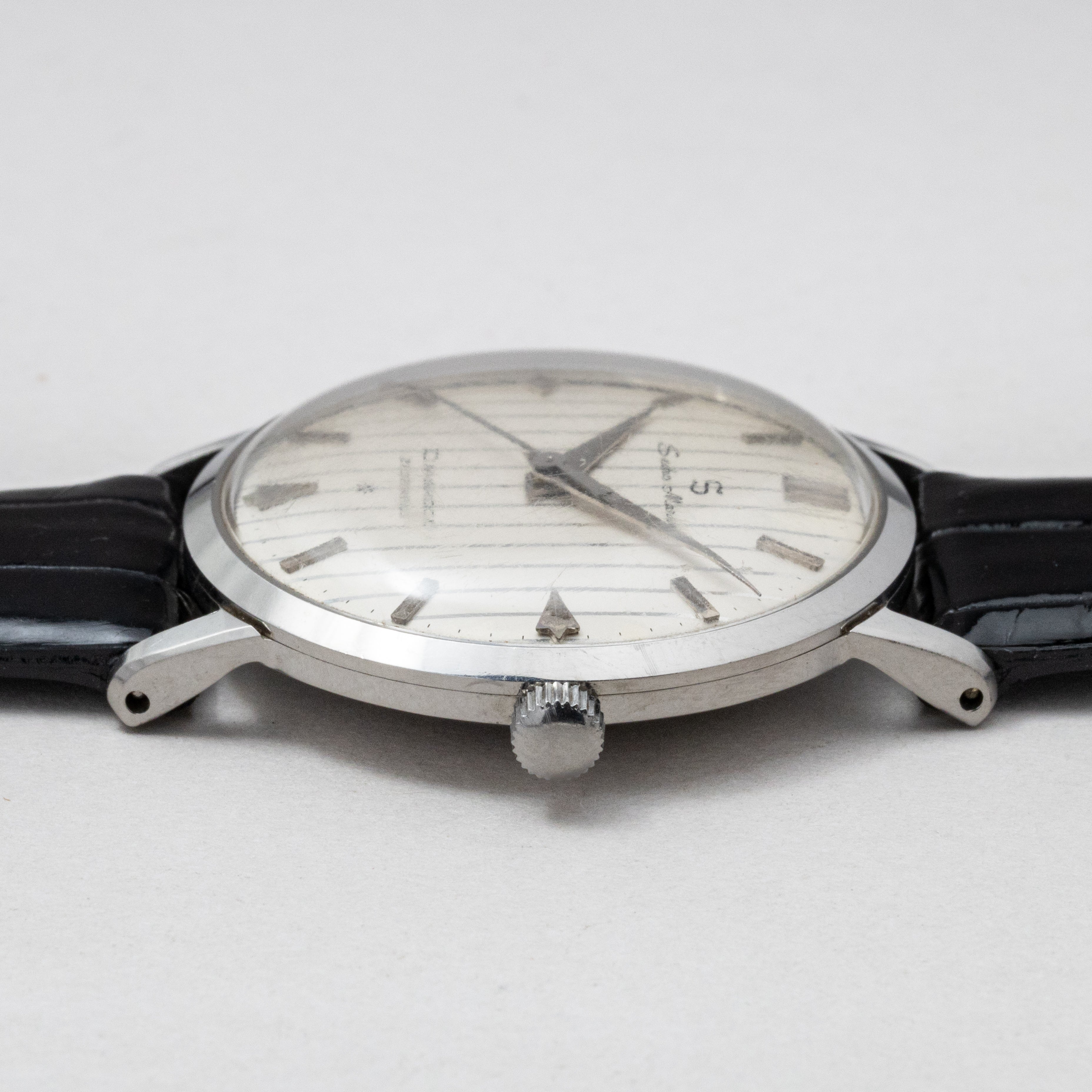 - ヴィンテージ時計の特性上、風防・パッキン・リューズ・バネ棒などの消耗部品は後年メンテナンス過程で交換されている場合がございます。オリジナル性を重視しておりますが、必要に応じて適切な部品にて調整されていますので、よりコレクション性重視のお求めのお客様は事前にご確認ください。