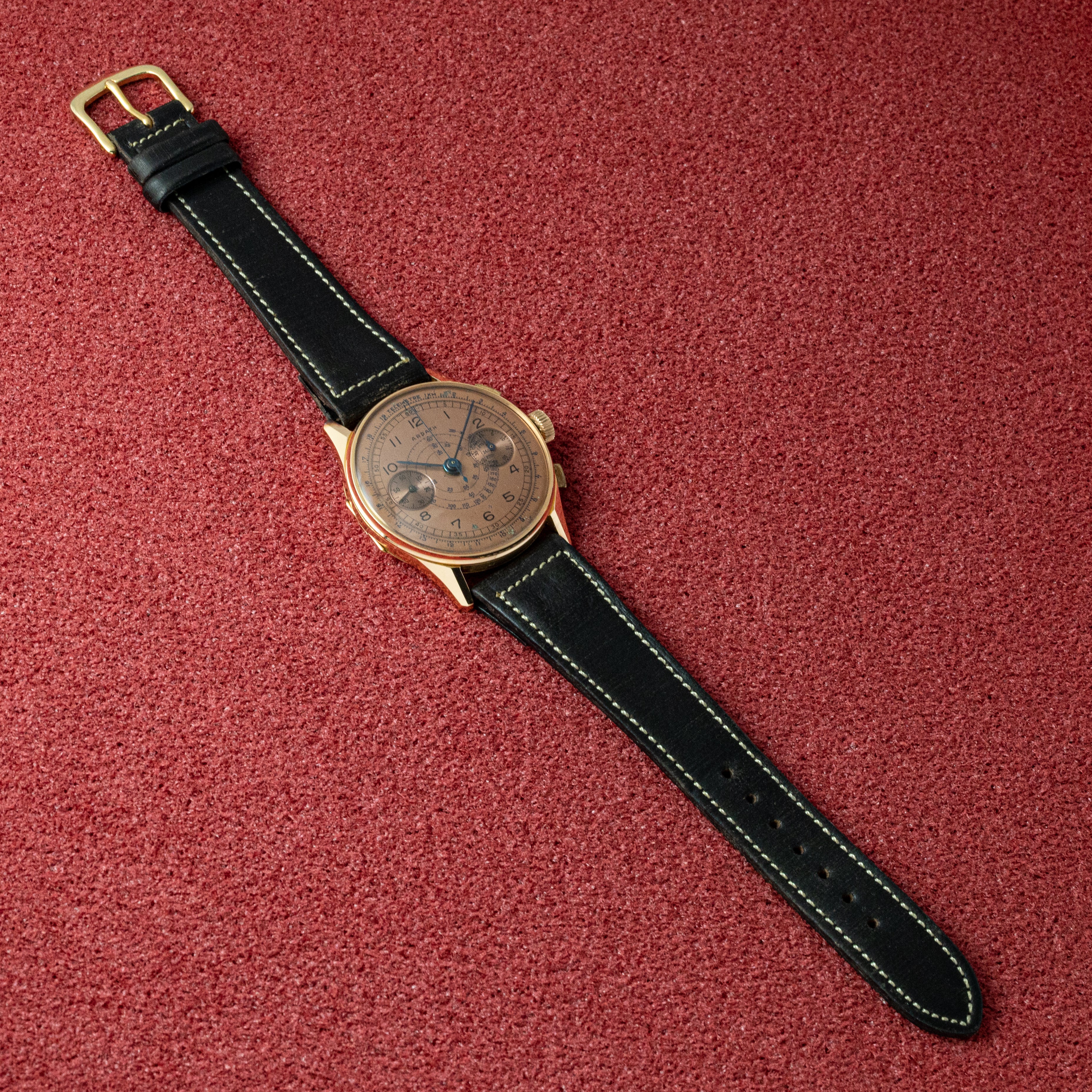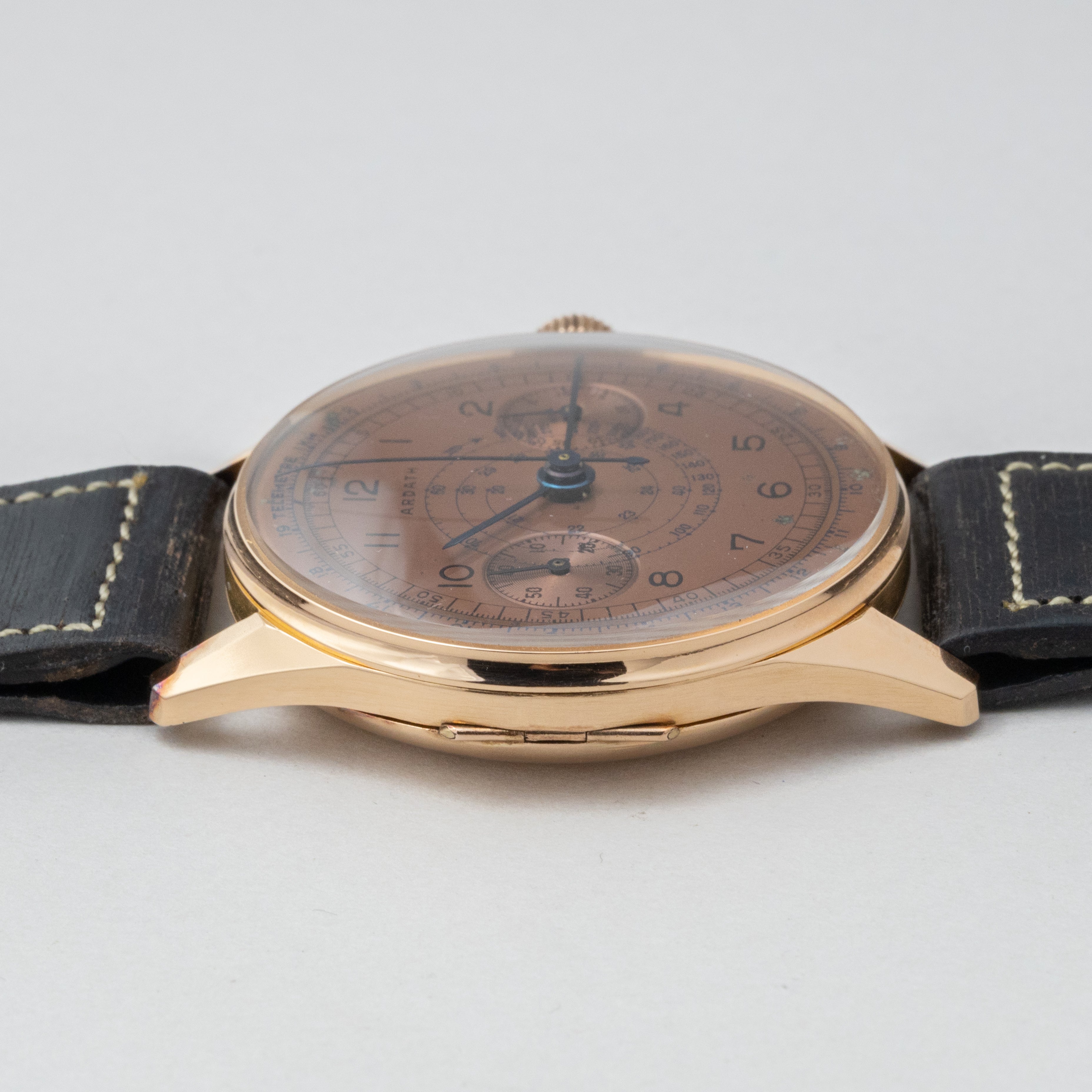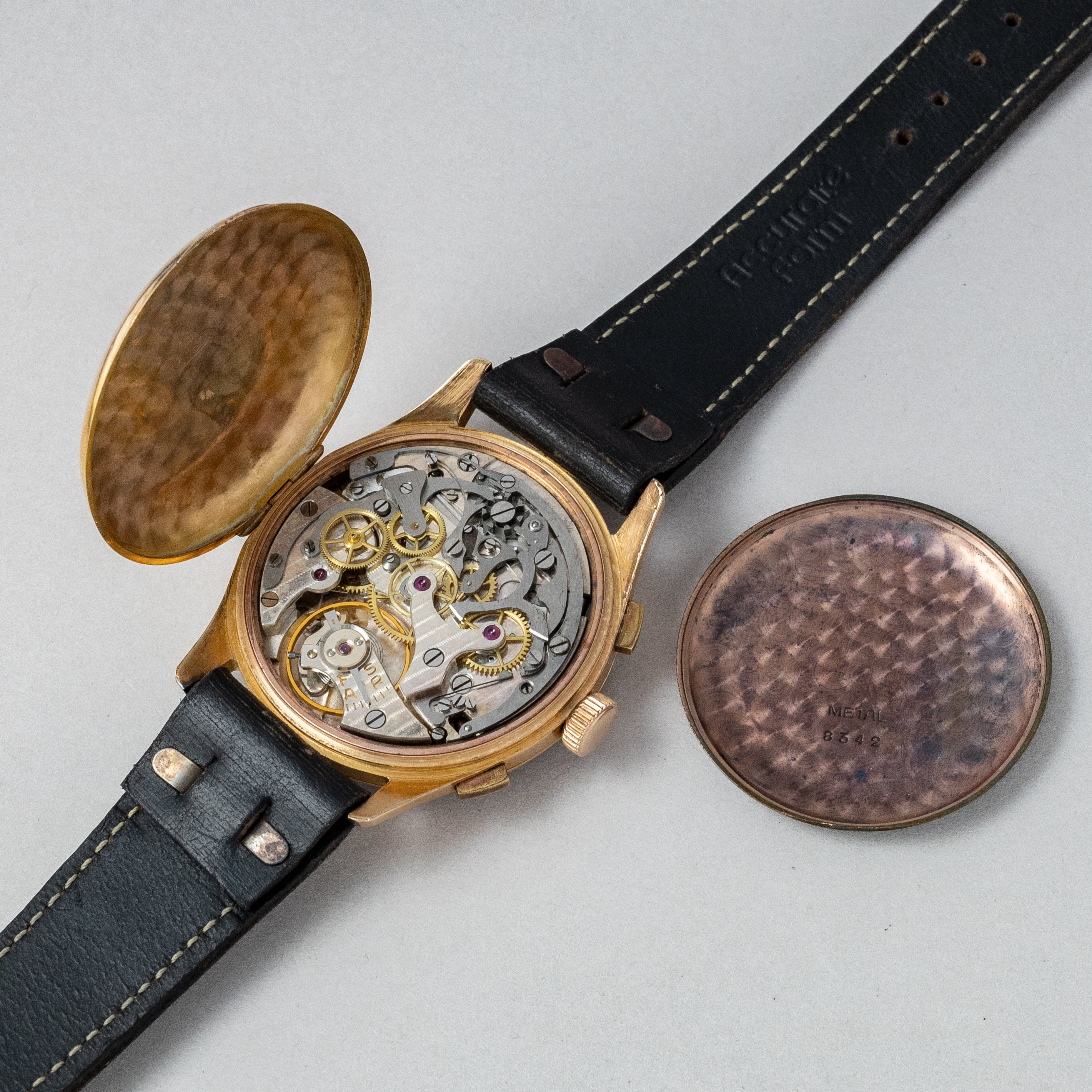 - ヴィンテージ時計の特性上、風防・パッキン・リューズ・バネ棒などの消耗部品は後年メンテナンス過程で交換されている場合がございます。オリジナル性を重視しておりますが、必要に応じて適切な部品にて調整されていますので、よりコレクション性重視のお求めのお客様は事前にご確認ください。
